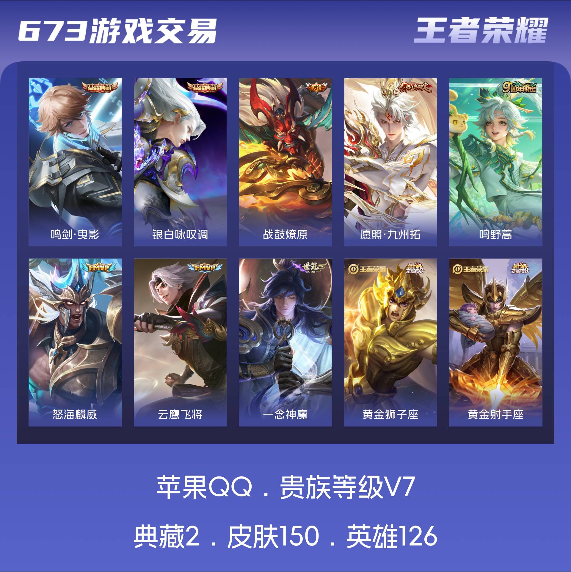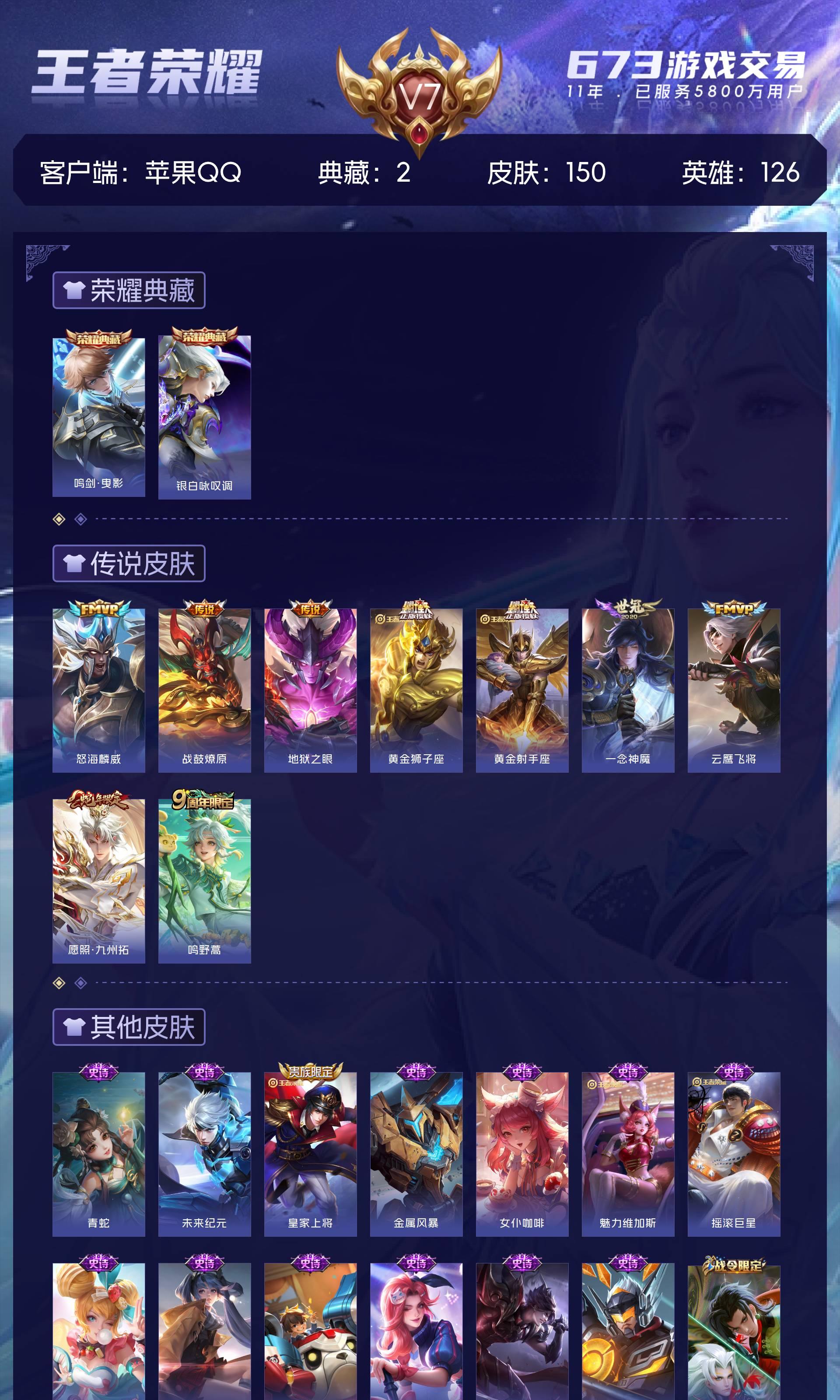 皮肤150 英雄126 绝世王者 荣耀典藏2 传说9 其他皮肤50-【金标猴子 金标李白2典藏9传说1星元V7】苹果Q-150