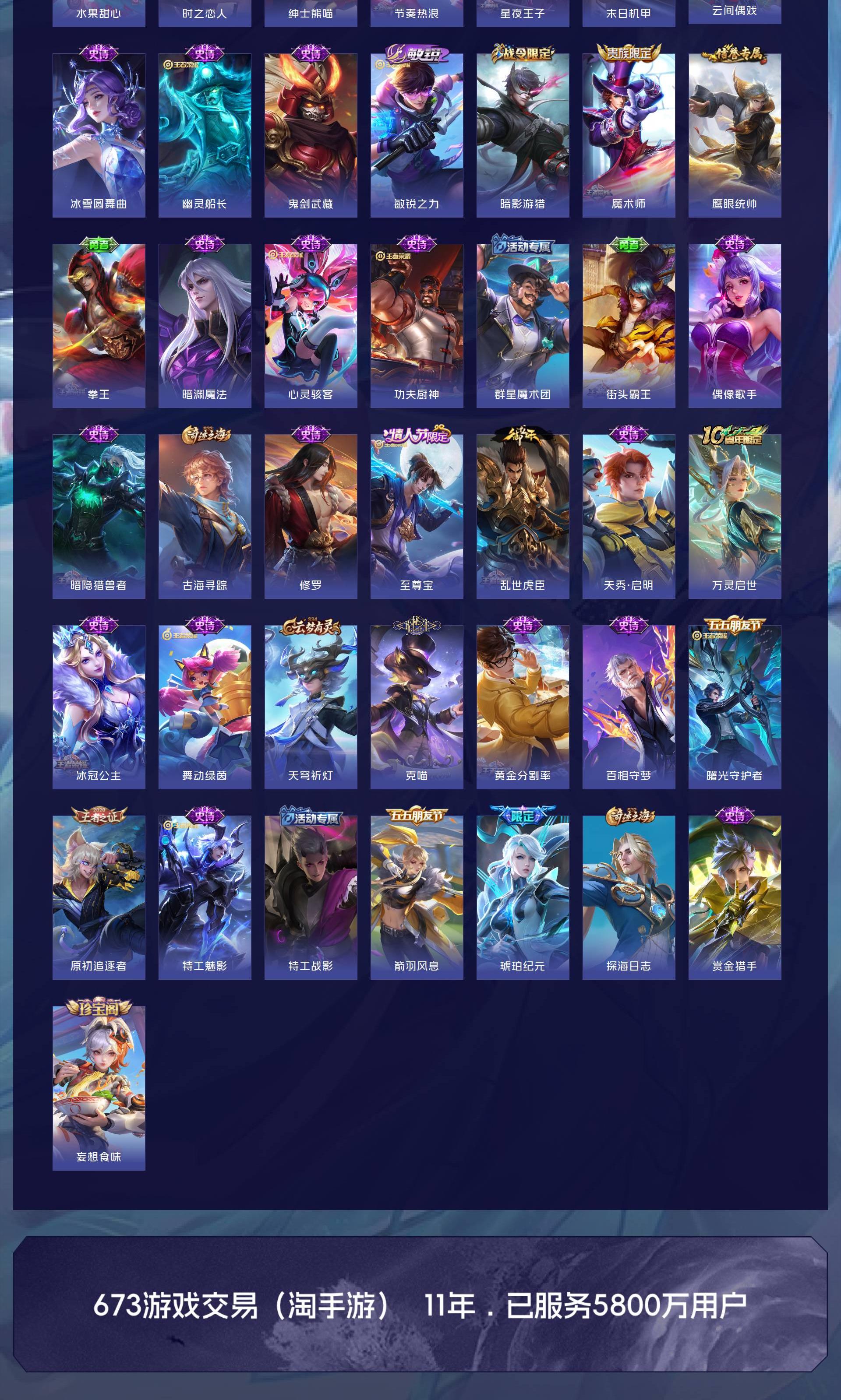 【史诗皮肤】 克喵 龙之律动 百相守梦 破空之剑 茶境仙 光弋星穹 星界战将 百相守梦 踏浪烽翎 鸭鸭历险记 布