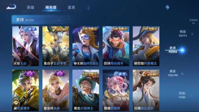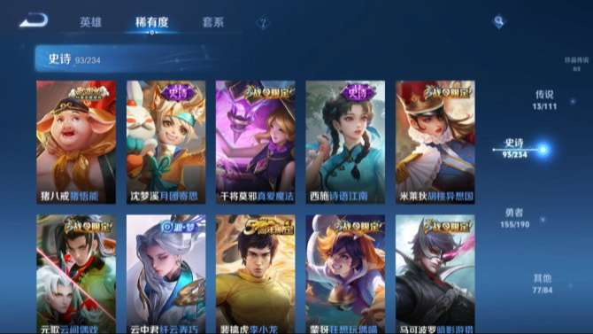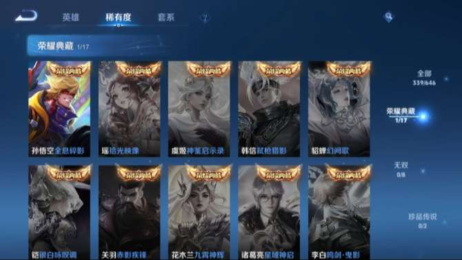 +安卓Q-尊贵铂金III-122英雄-339皮肤-1典藏-13传说-93史诗