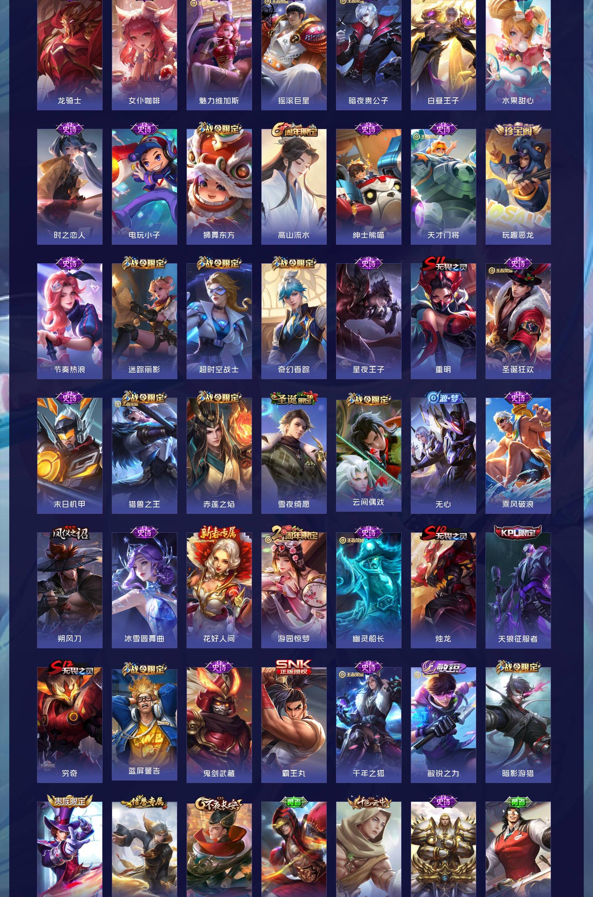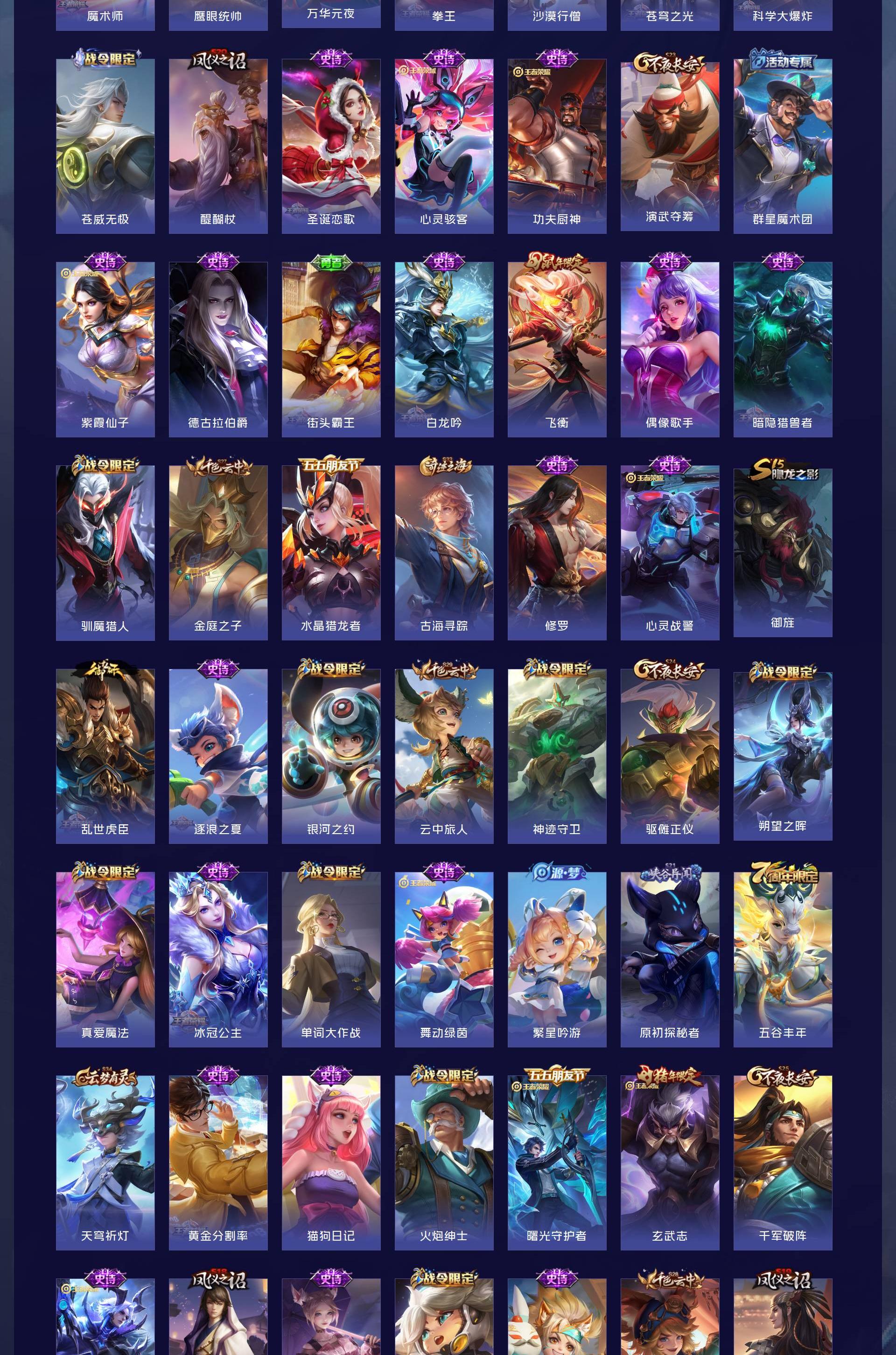【史诗皮肤】 天狼征服者 破空之剑 撼地雄心 飞衡 电玩小子 天狼狩猎者 玄武志 诗语江南 热血海滩 西部游侠 青焰无极