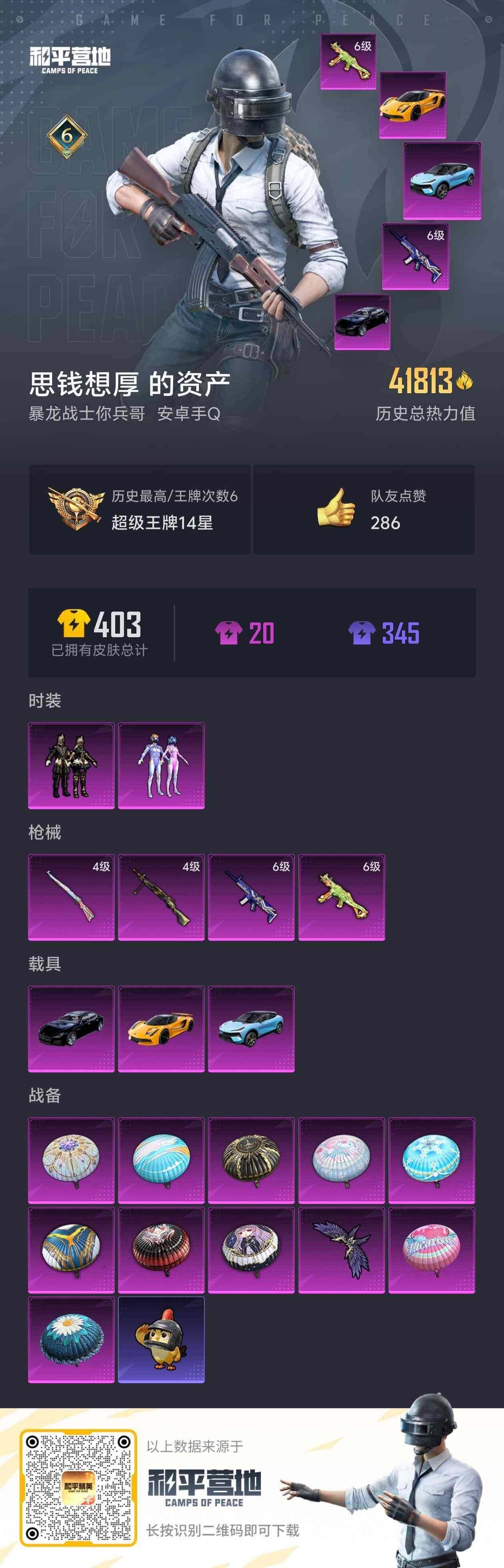 安卓 【载具号 梦幻火箭/SCAR-L-青春物语(六级)/路特斯EVIJA(星际黄)/路特斯ELETRE(冰川蓝)】手Q-2粉装-4特效枪-3载具-1粉色飞行器-42193热力值-6王牌印记-73套装-121枪皮