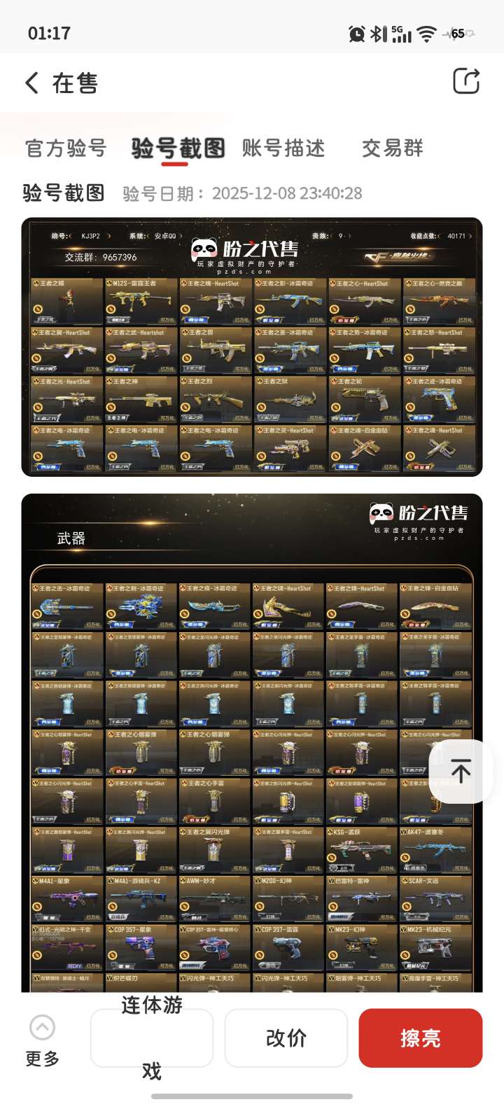 通过App,与卖家商议价格及保险,并向卖家索要账号最新截图,确认后下单购买。