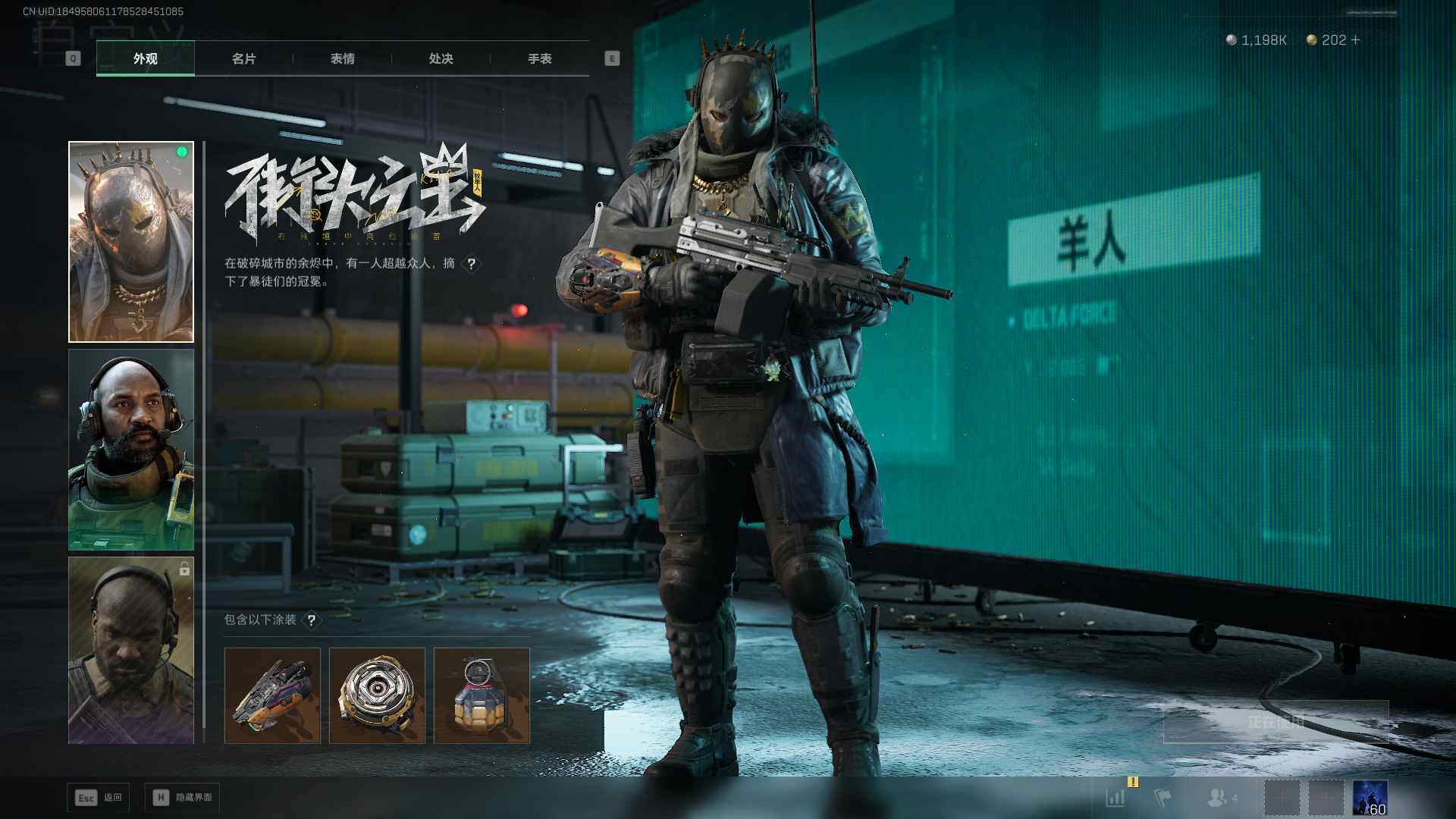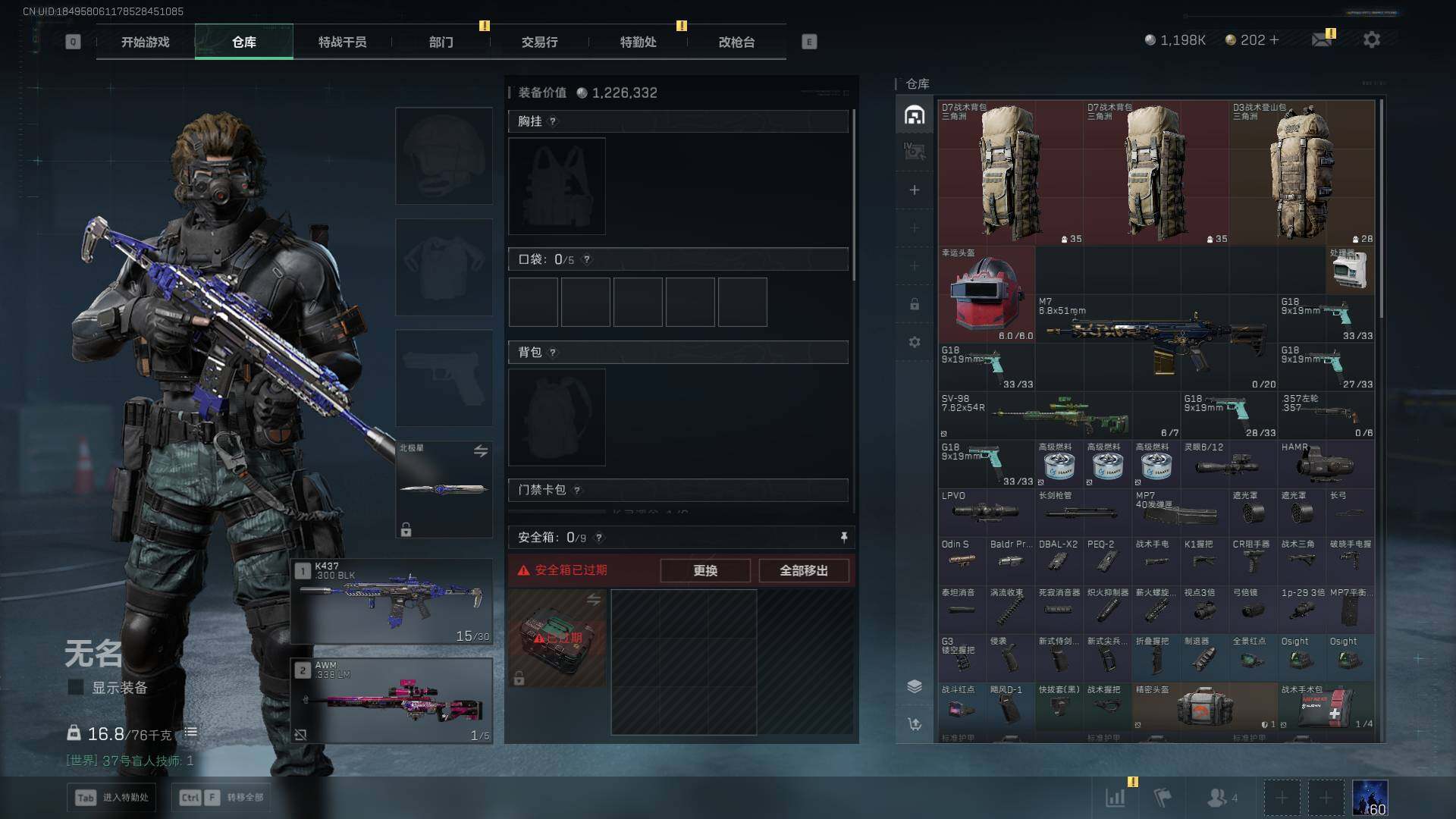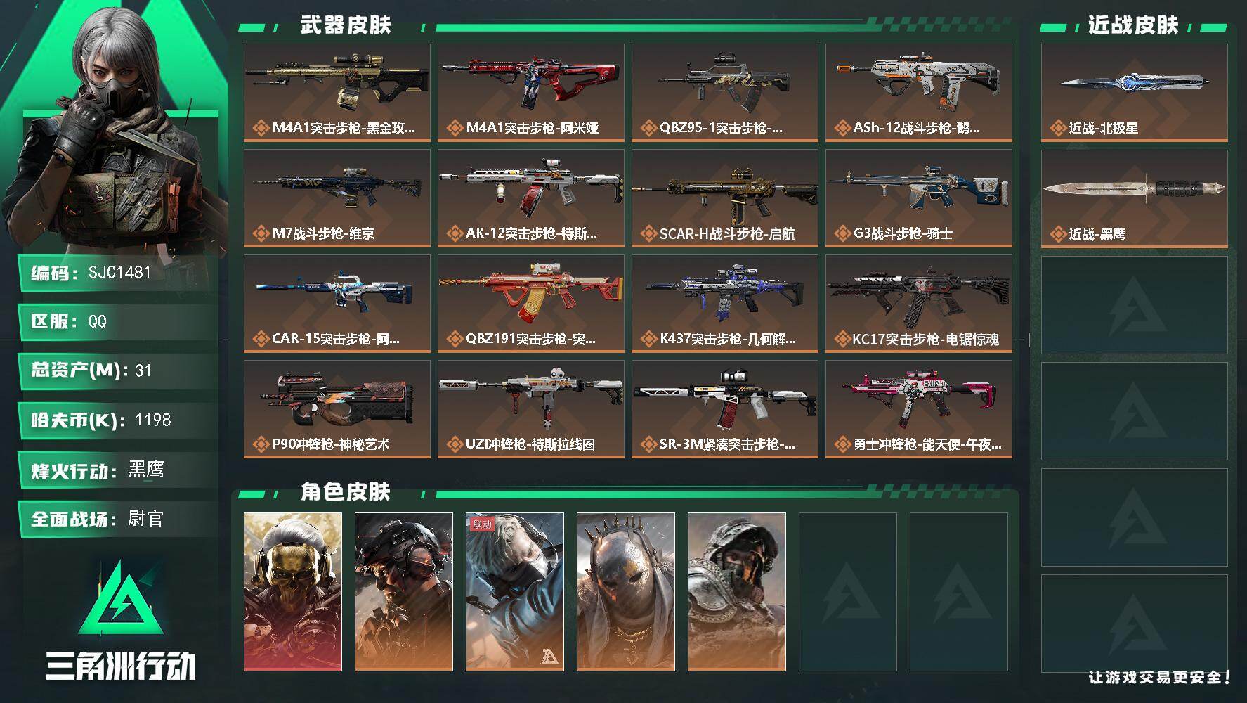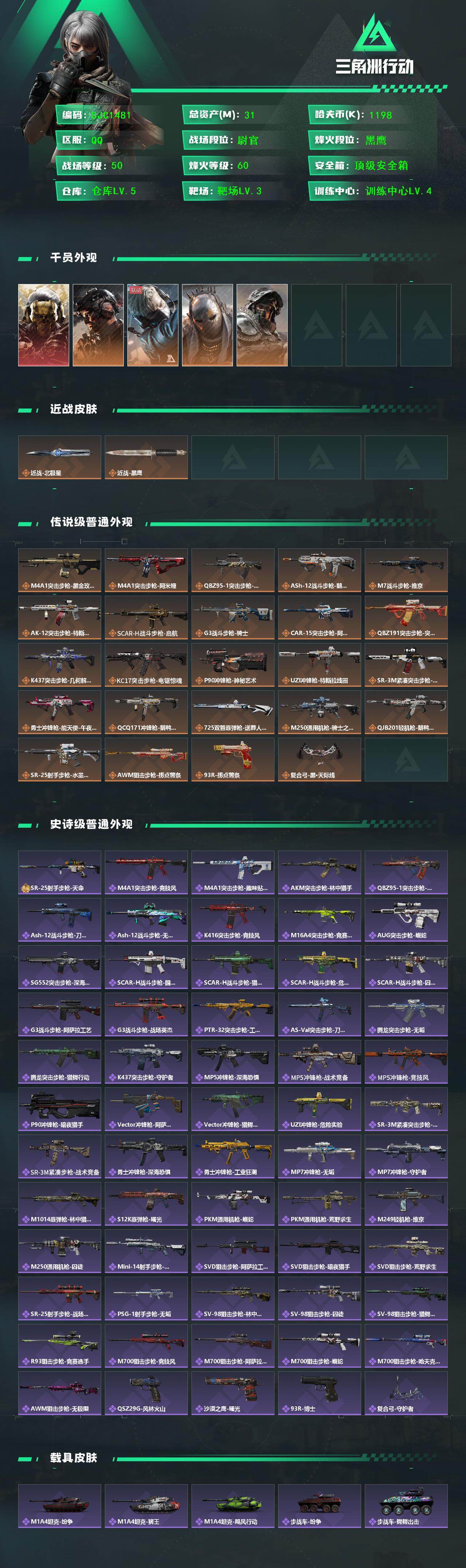 总资产(M):31M/哈夫币(K):1198K/哈夫币(K):1198K/传说枪皮数:24/全面战场