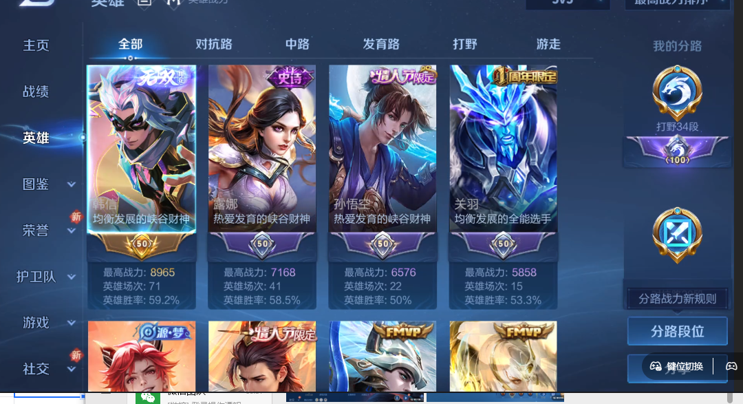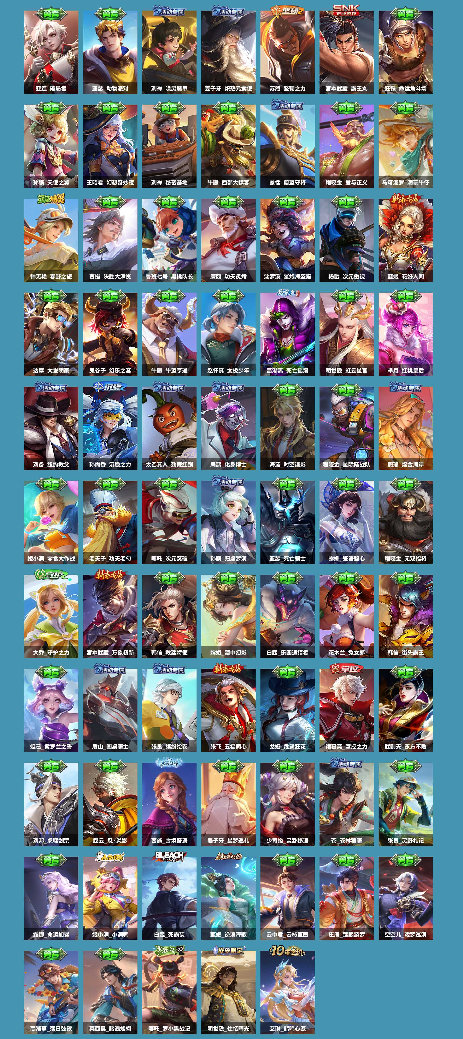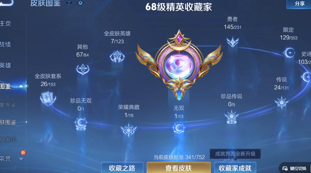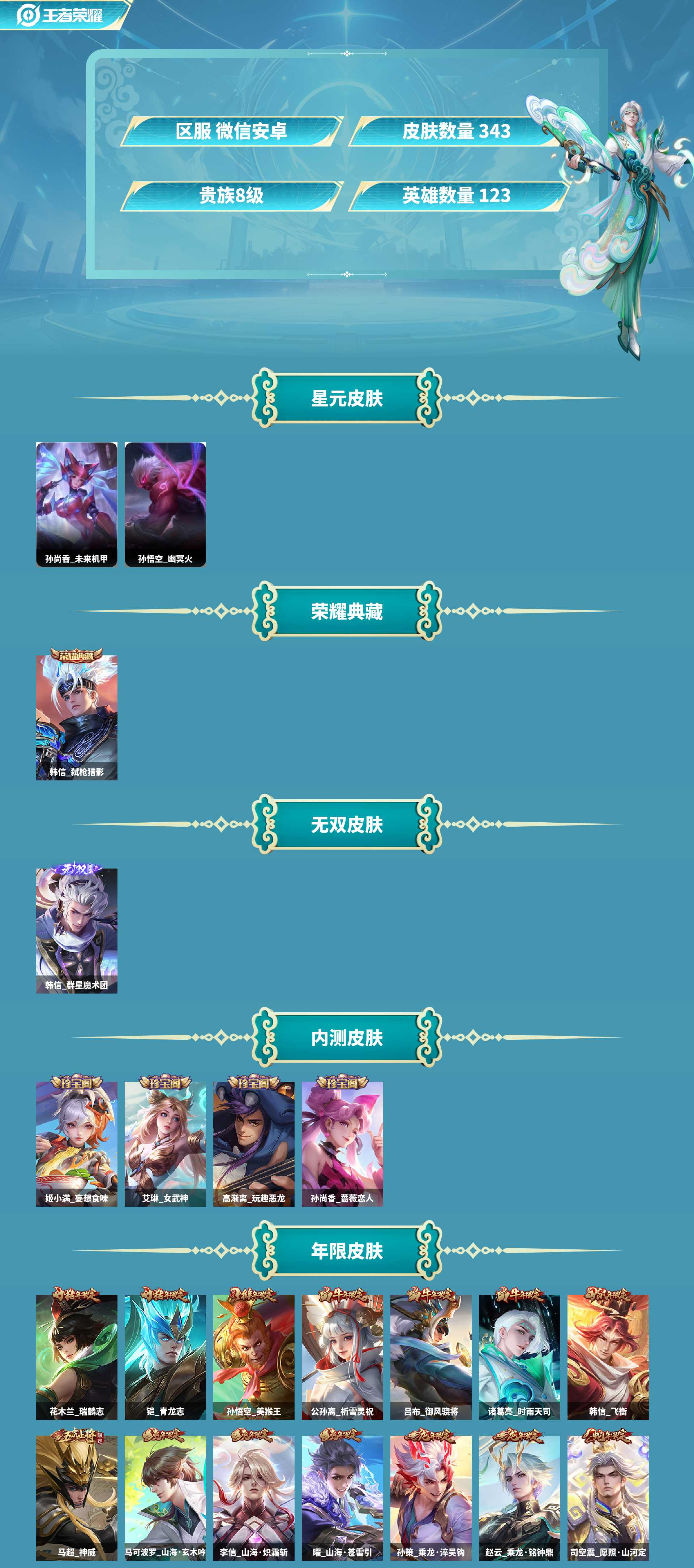 极品野王号省标韩信皮肤数341皮肤价值253030无双皮肤数