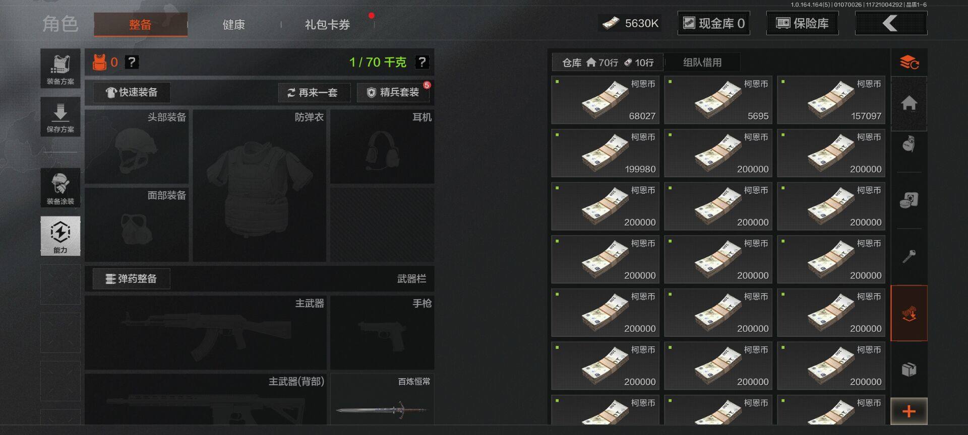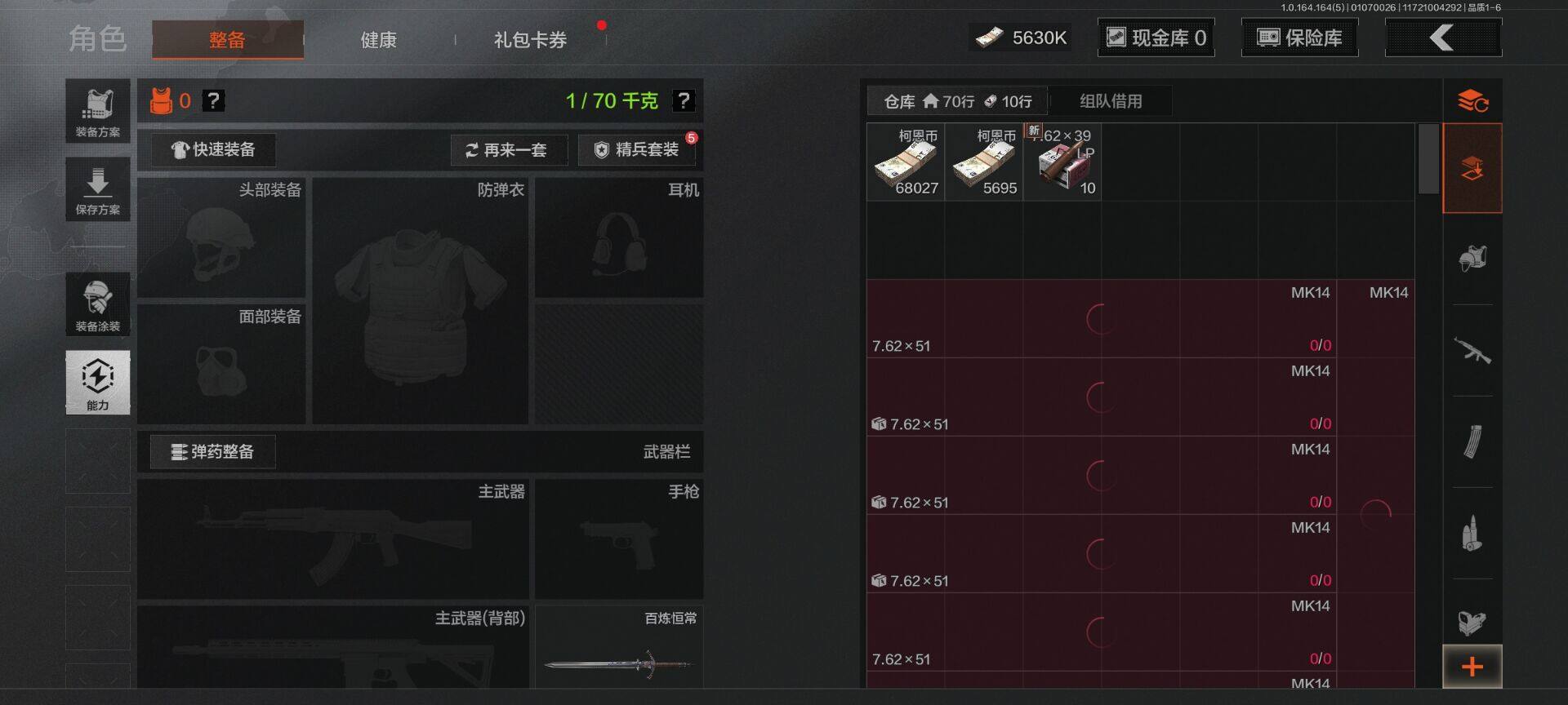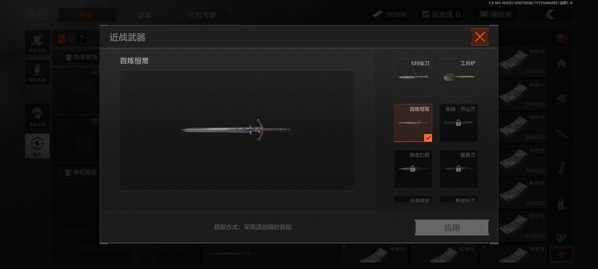等级:30/段位:王牌/仓库价值(百万):14.3/柯恩币:5630000/百炼恒常