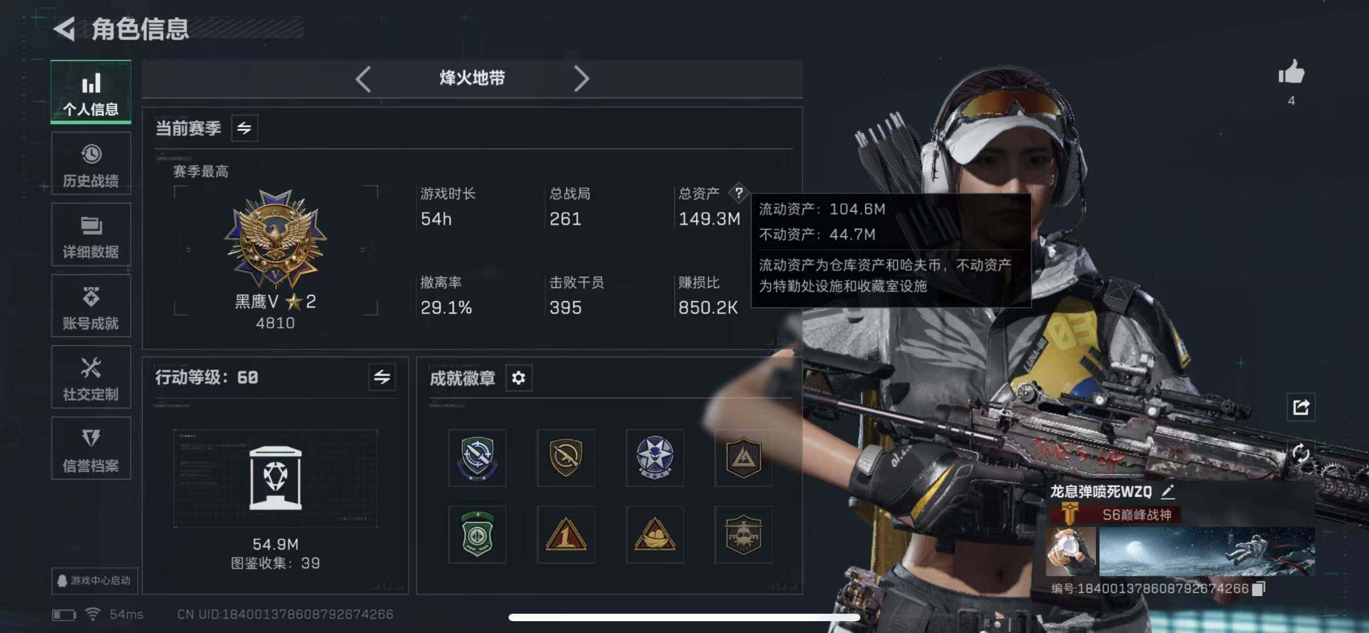 149m总资产-4153k哈伏币-60烽火等级-黑鹰-30战场等级-军士长