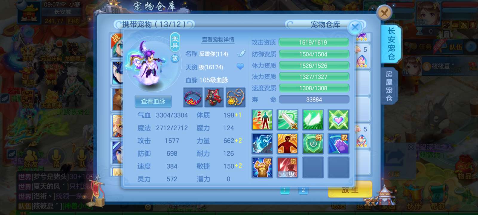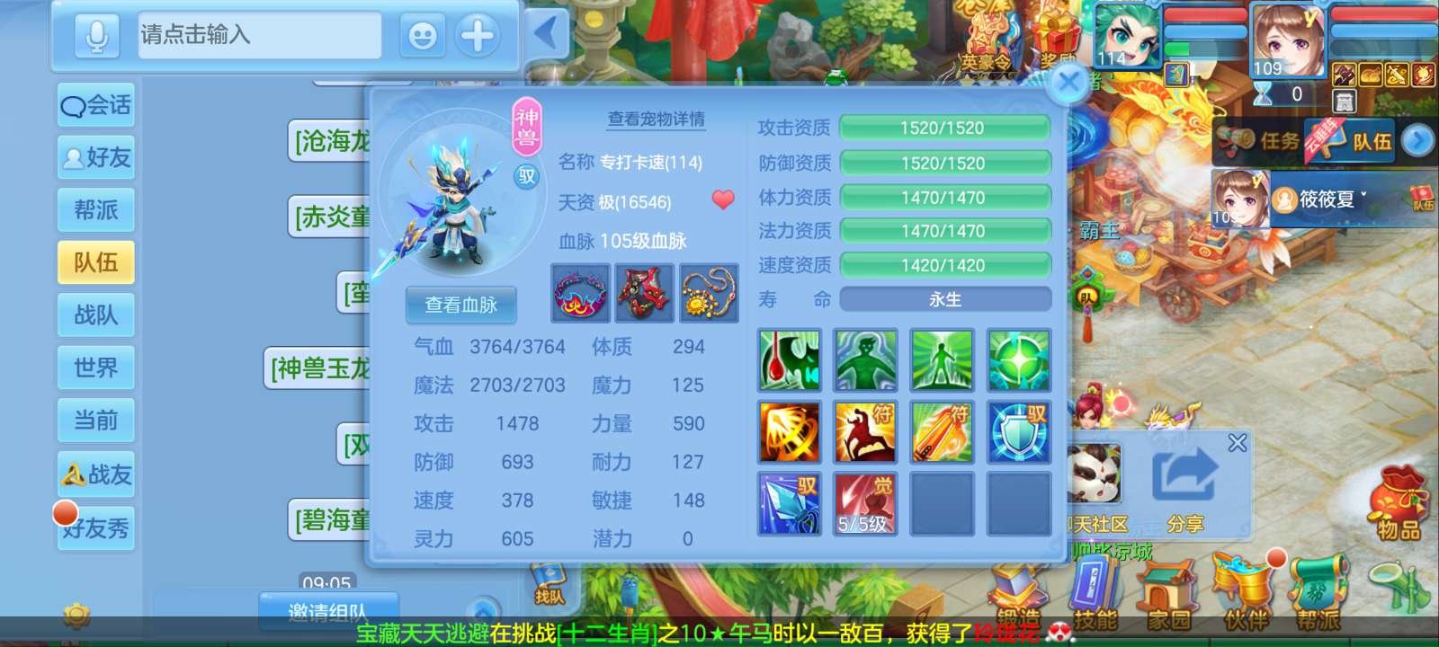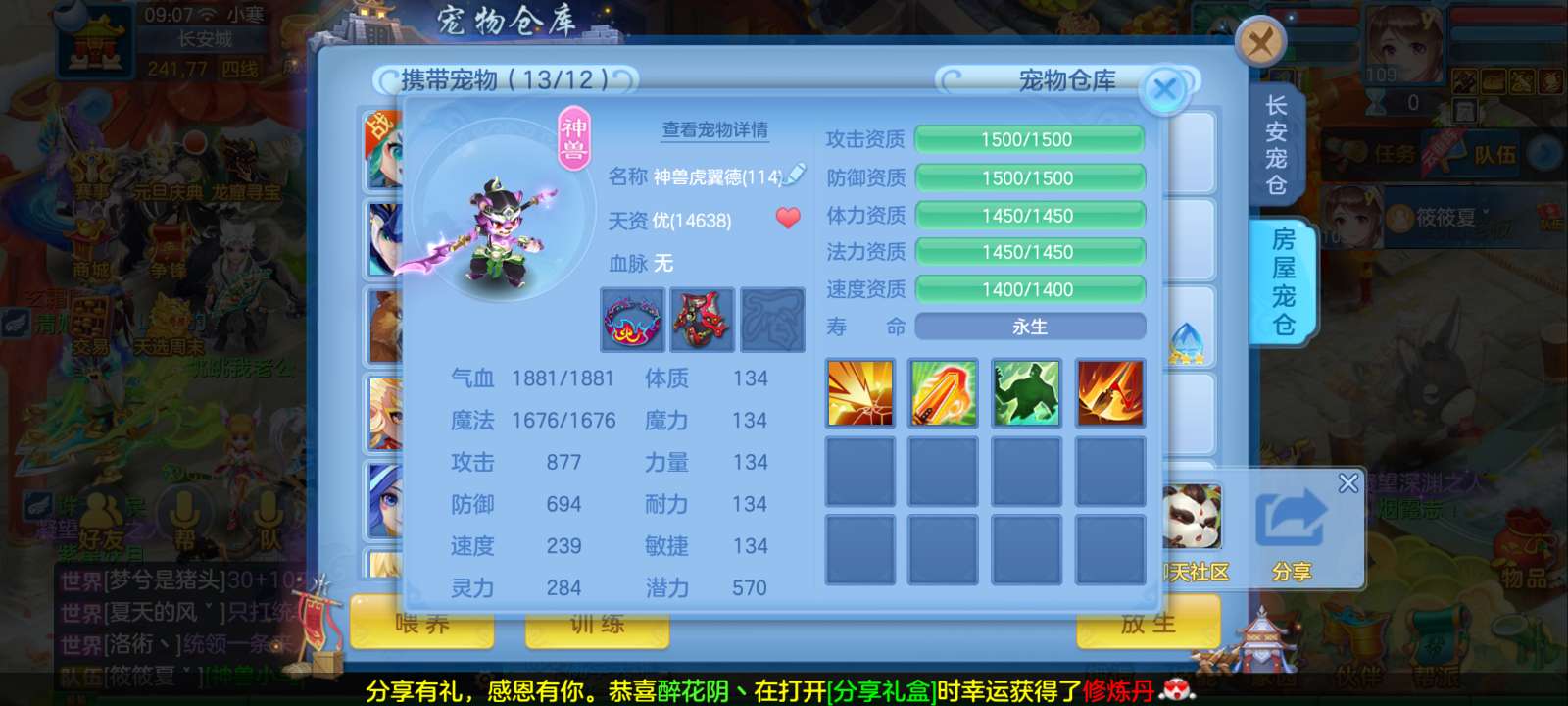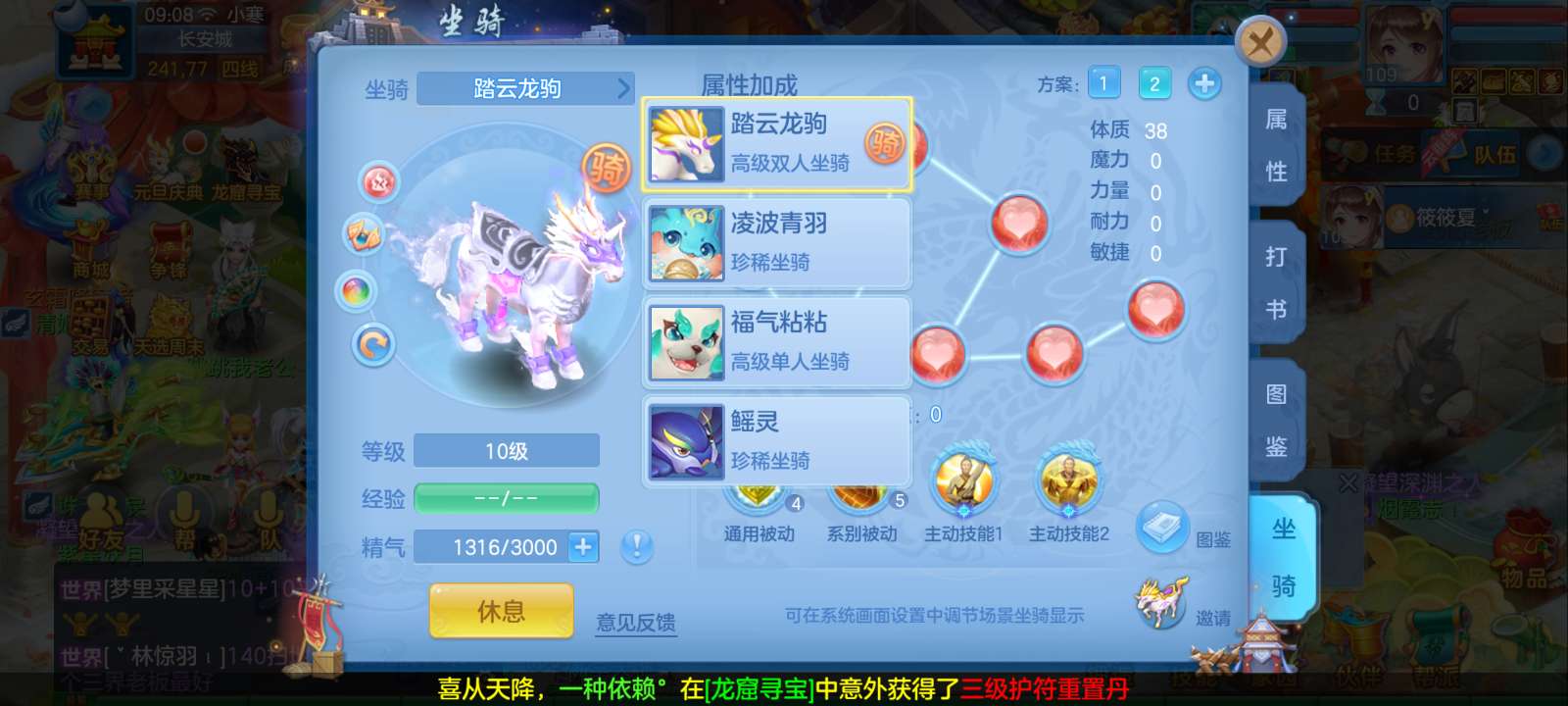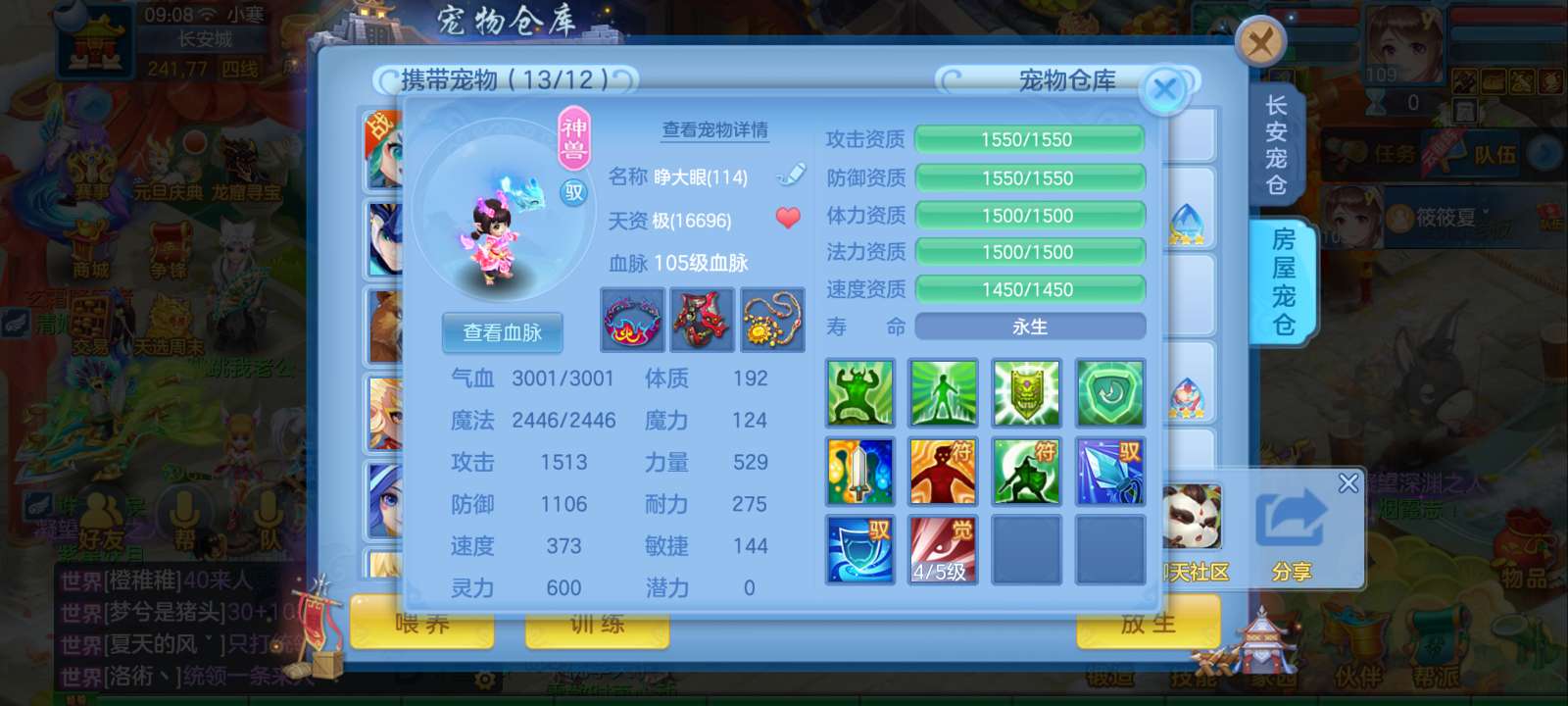 惊涛109齐全无量满配 5神3内丹3珍兽第四个内丹马上出 两个高级坐骑 3740成就海景房3子女