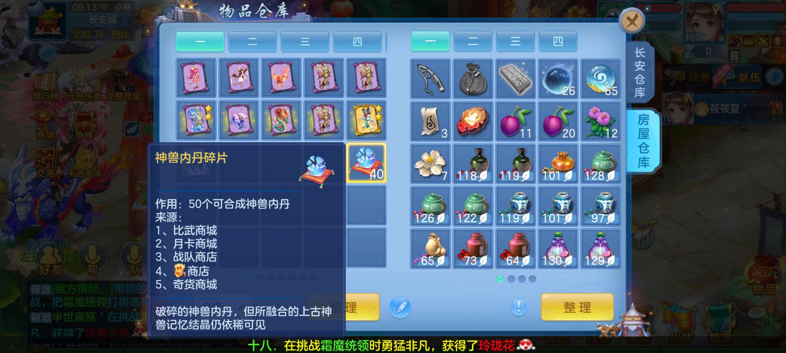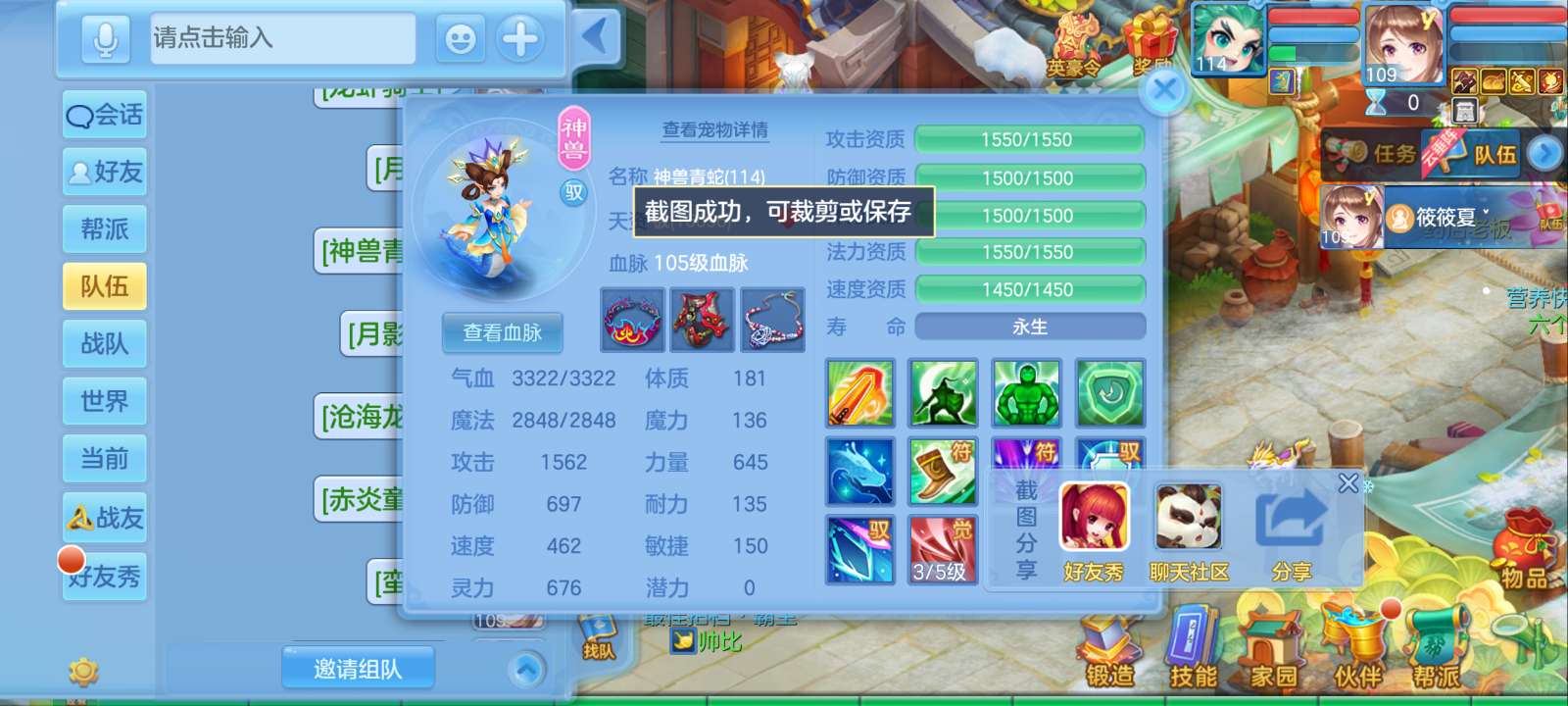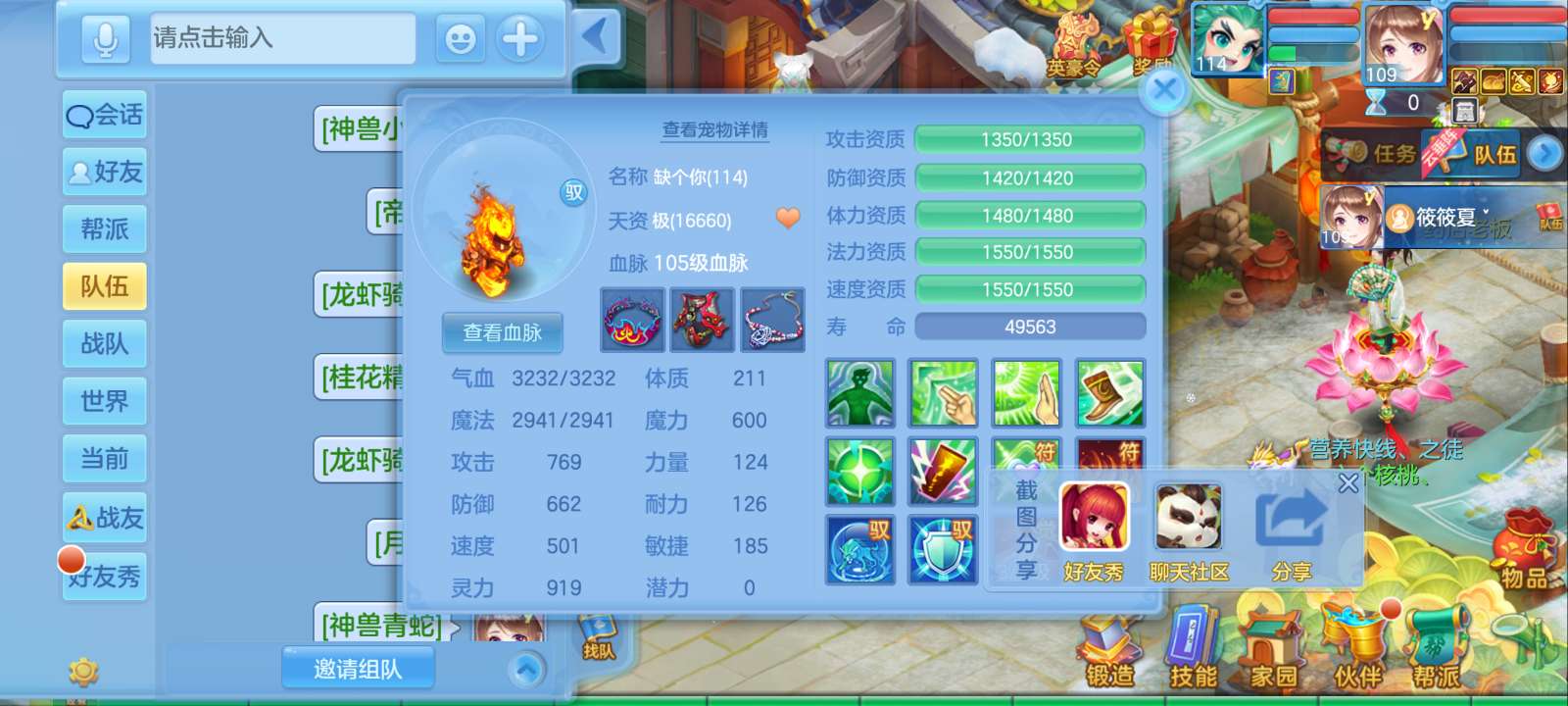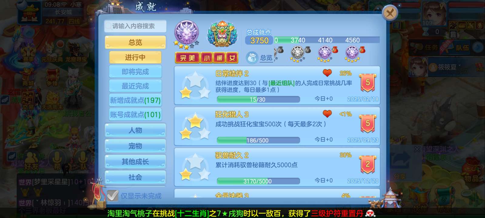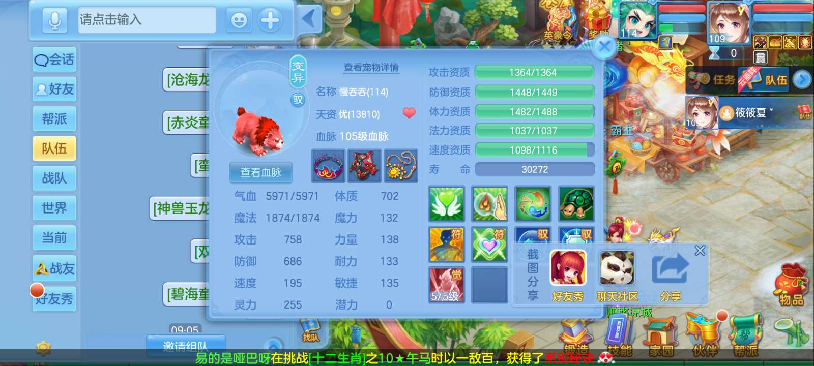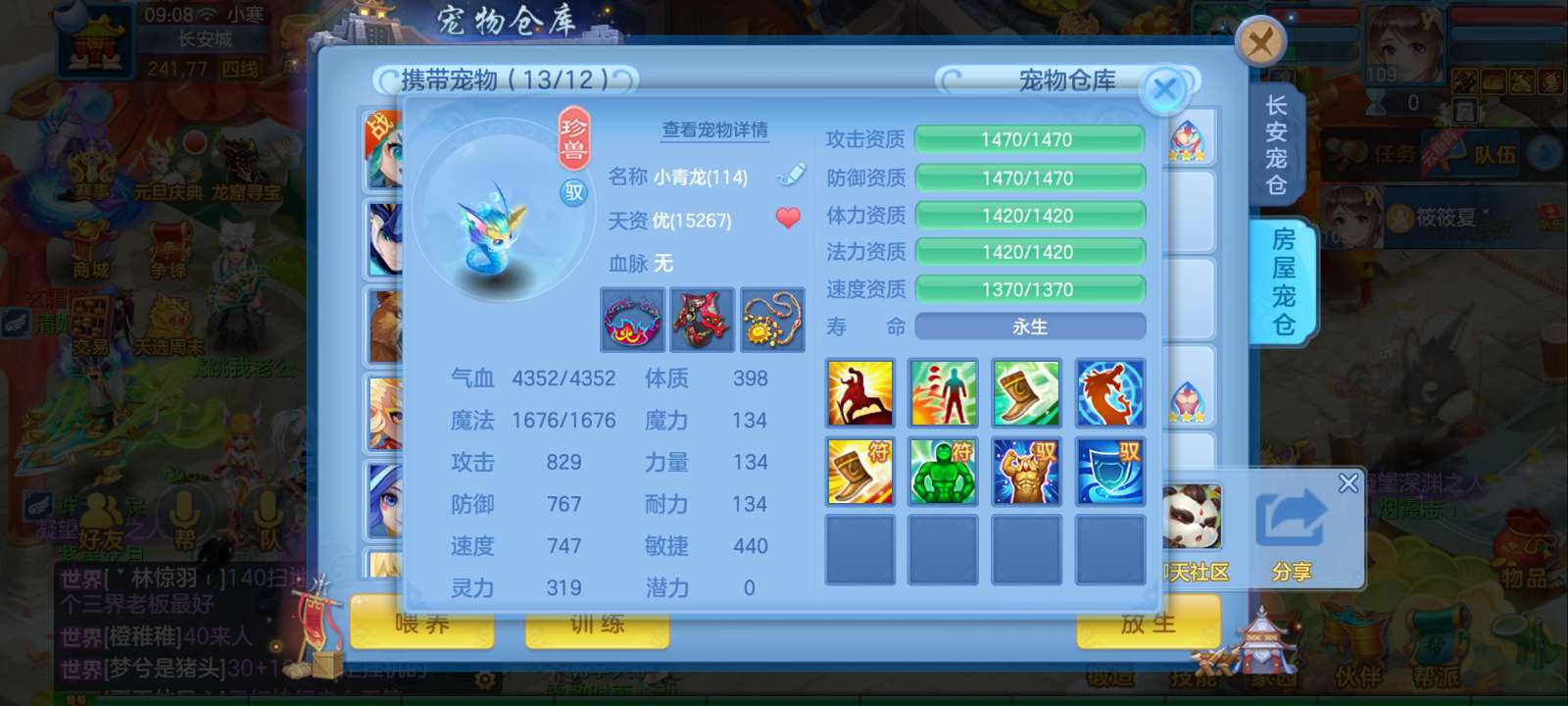 惊涛109齐全无量满配 5神3内丹3珍兽第四个内丹马上出 两个高级坐骑 3740成就海景房3子女