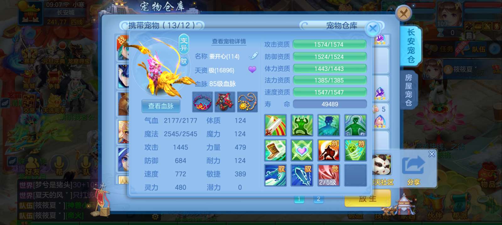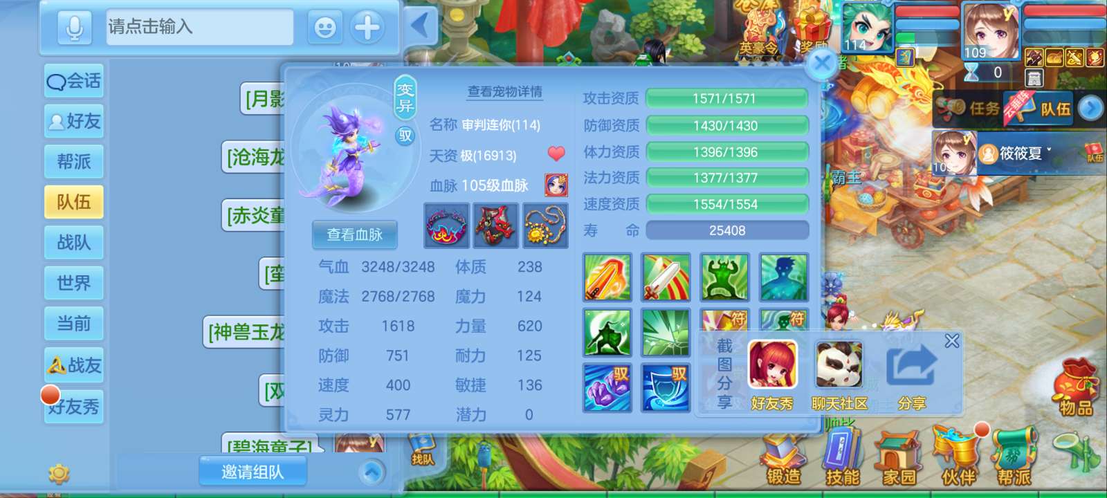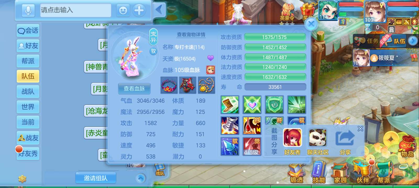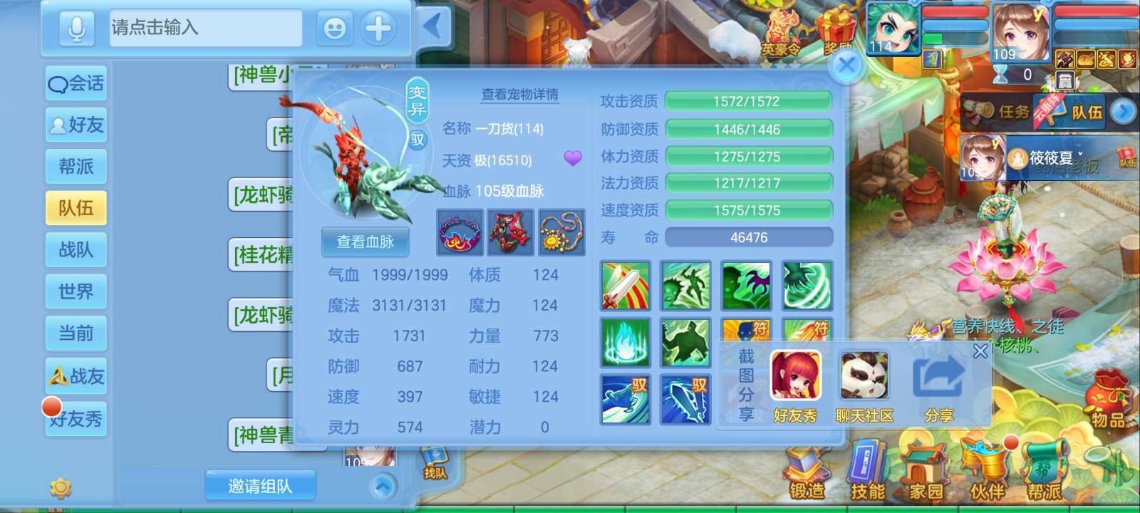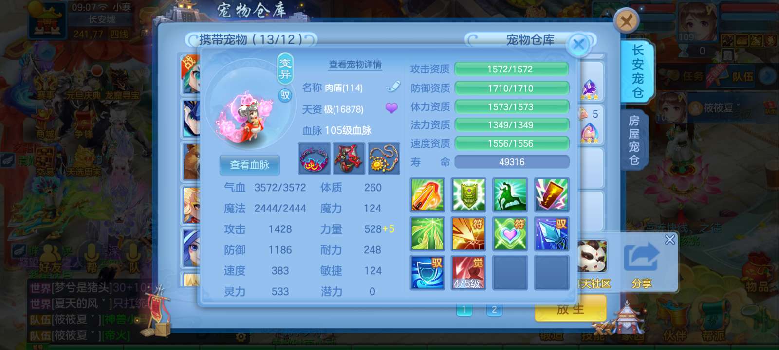 惊涛109齐全无量满配 5神3内丹3珍兽第四个内丹马上出 两个高级坐骑 3740成就海景房3子女