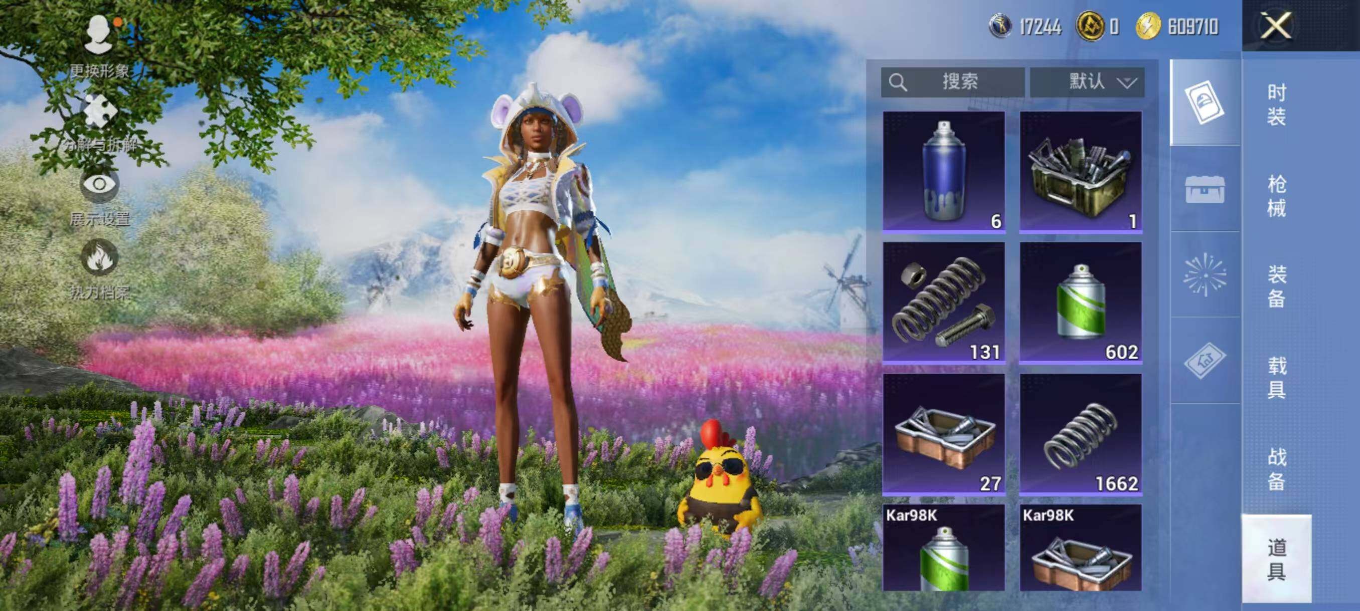 【粉色枪皮等级】:UMP45-恐龙拽拽(七级),Kar98K-巳巳如意(五级),DP-28-豹影疾电(五级)