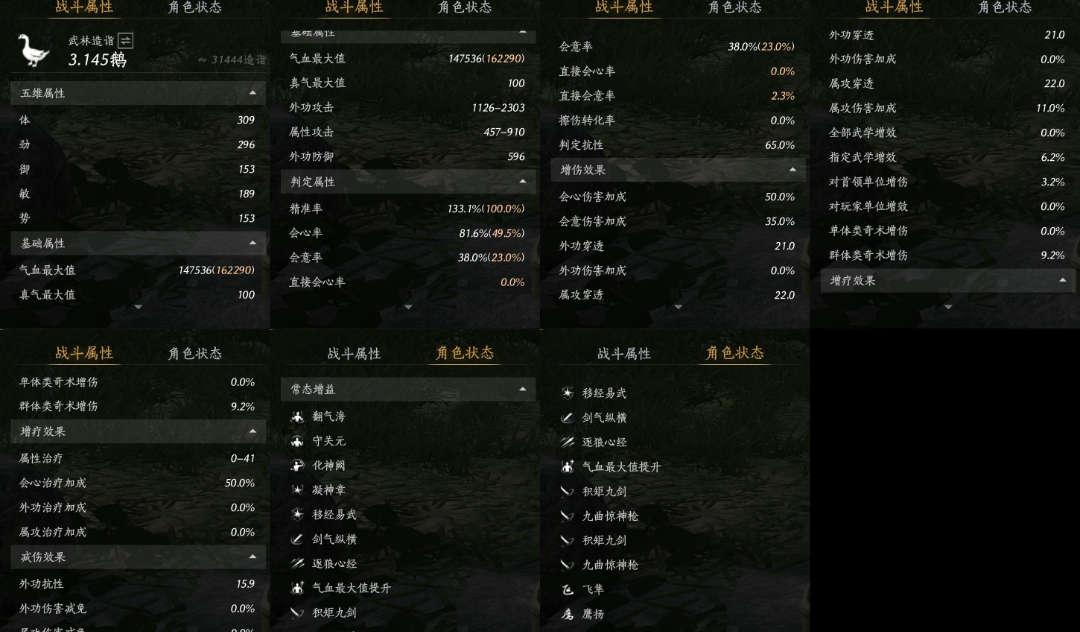 剧情,等级100,风华值6613,武林造诣3.145鹅