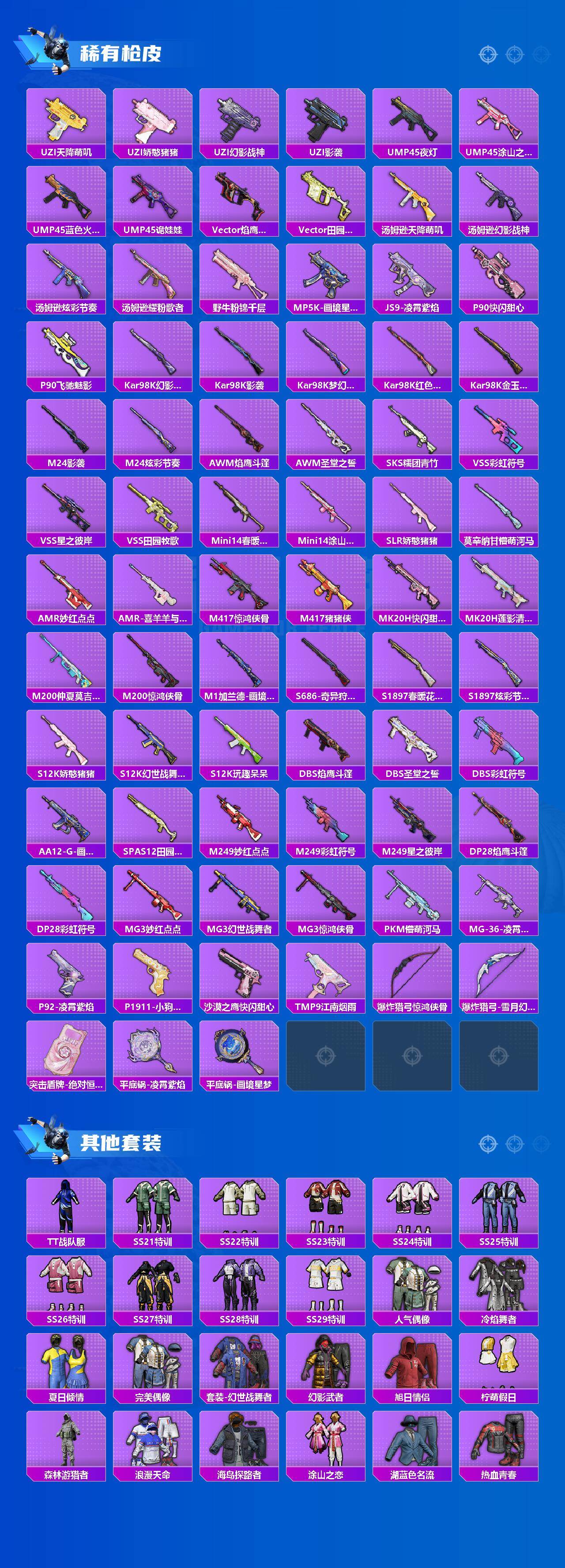 【mhlm3102】苹果 手Q-6粉装-7特效枪-0载具-1粉色飞行器-60959热力值-11王牌印记-150套装-203枪皮