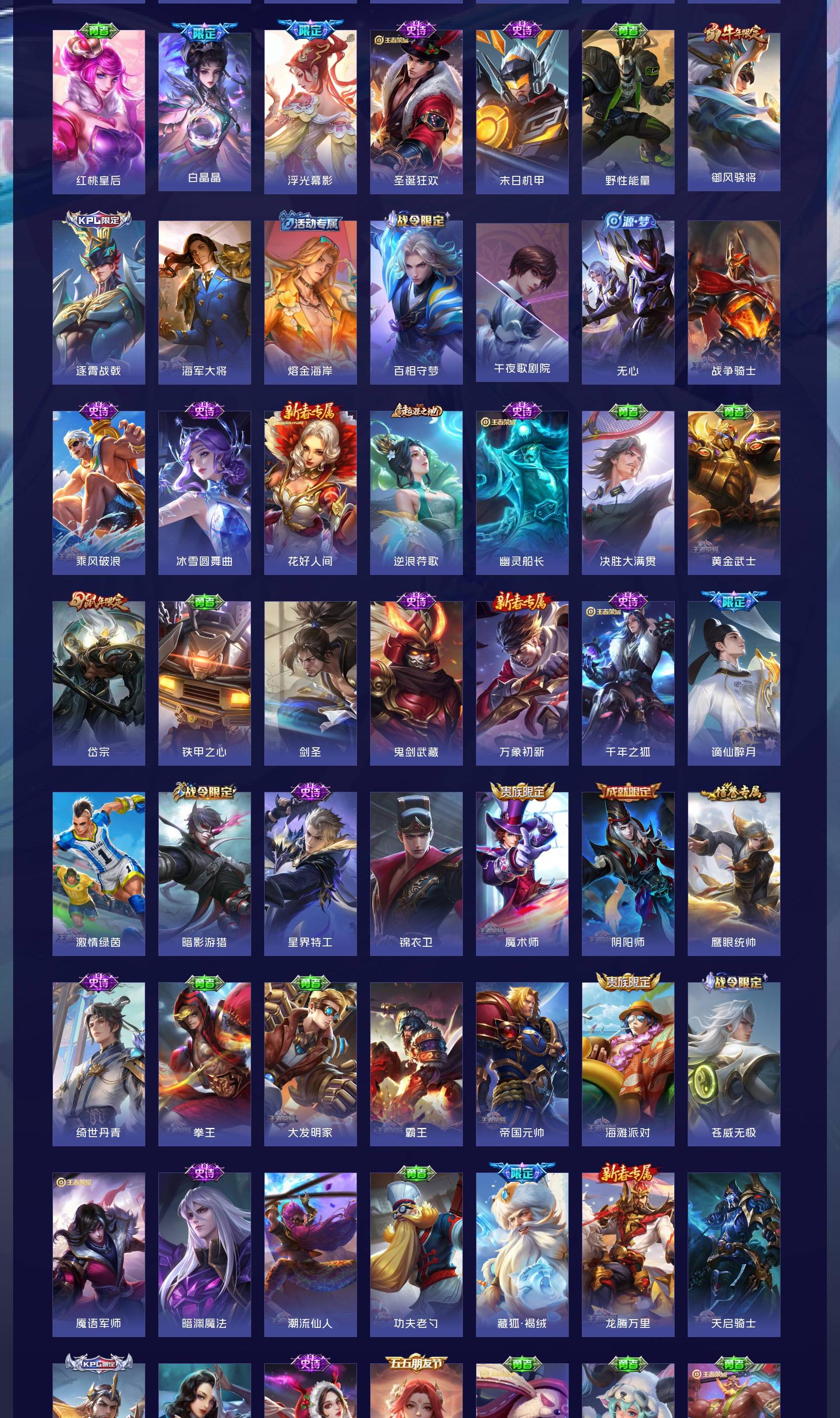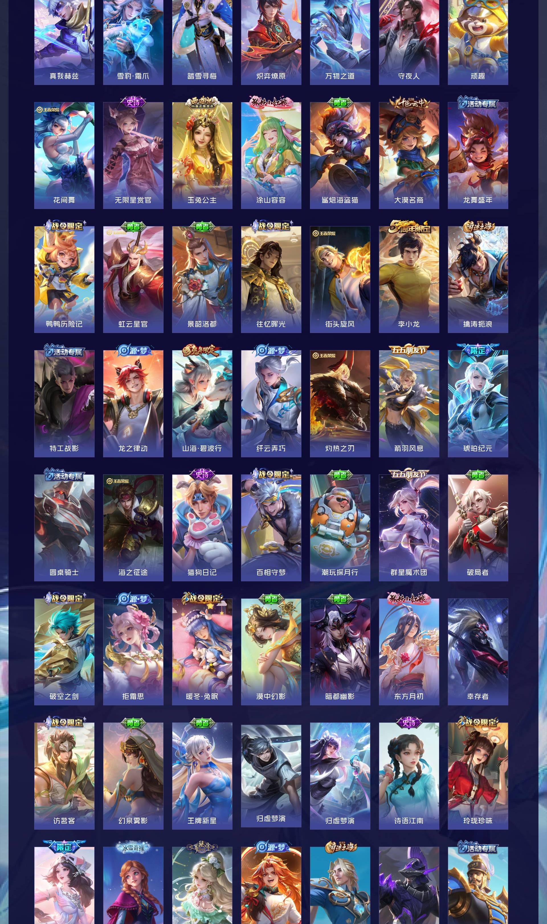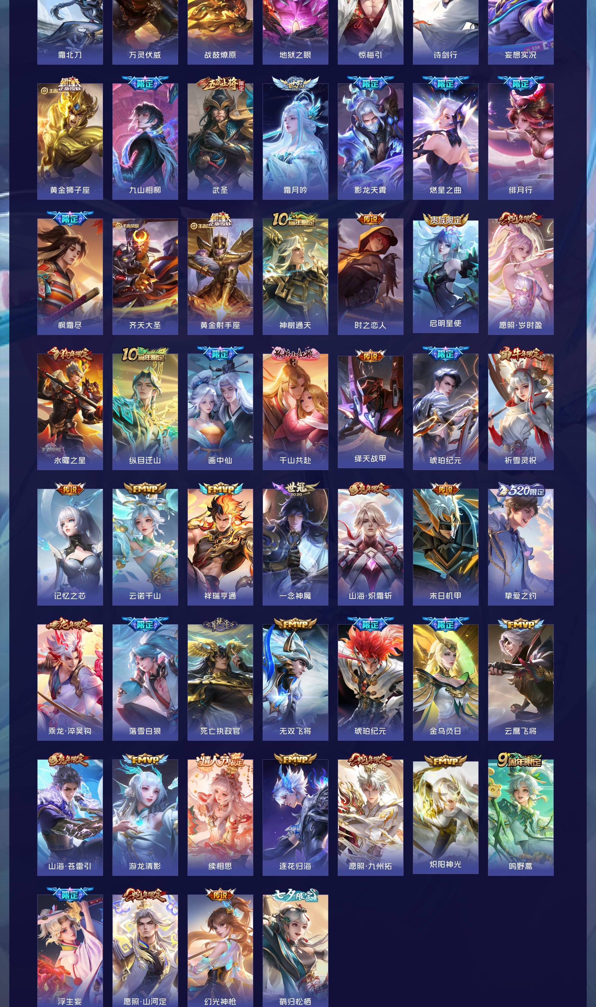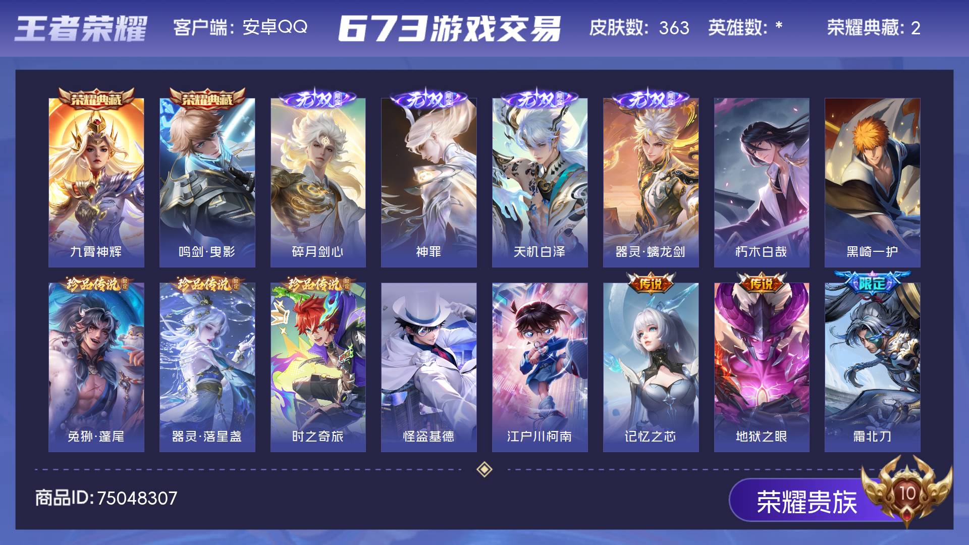荣耀贵族 皮肤363 英雄* 荣耀王者 荣耀典藏2 无双皮肤4 珍品传说7 星传说1 传说60 其他皮肤295