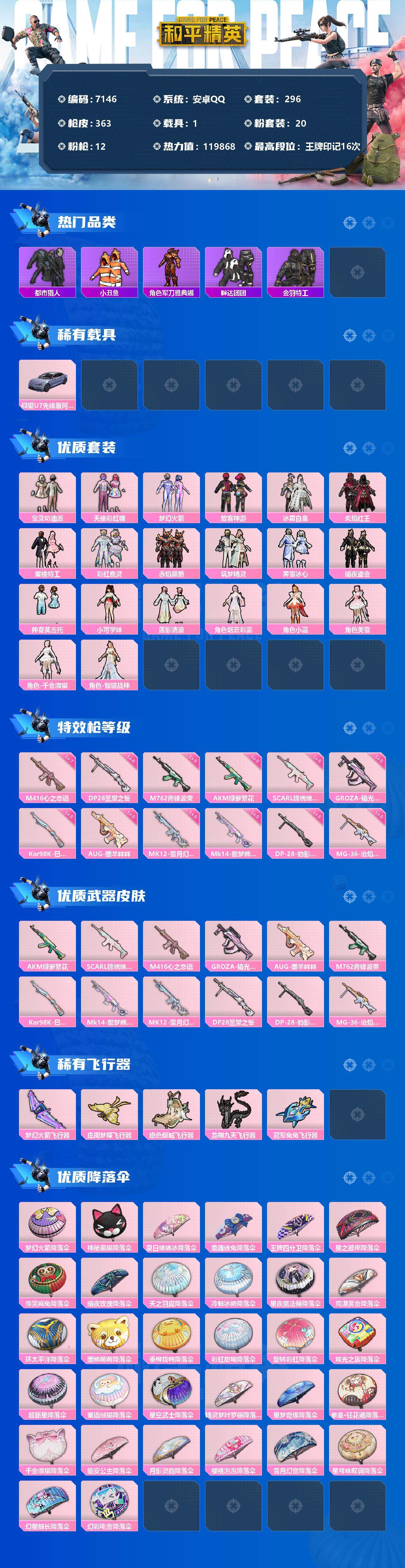 【7146】20粉装-12特效枪-1载具-119868热力值-16印记-296