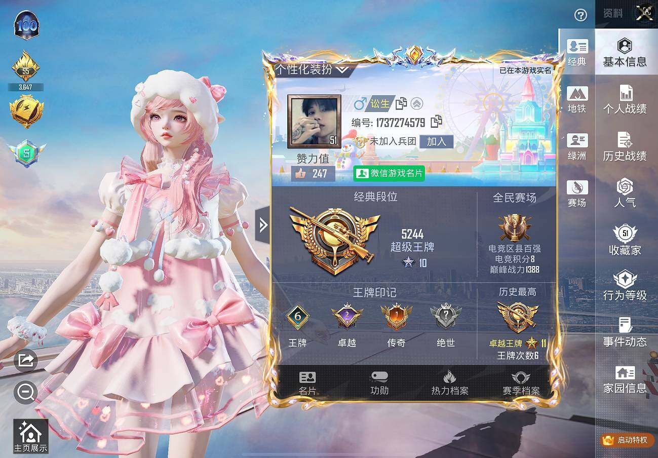 【AZH2146】苹果 微信【羊梦糖心 四级炫紫旋律AKM六级风花雪月M416】3粉装-4特效枪-0载具-3粉色飞行器-36946热力值-6王牌印记-76套装-119枪皮