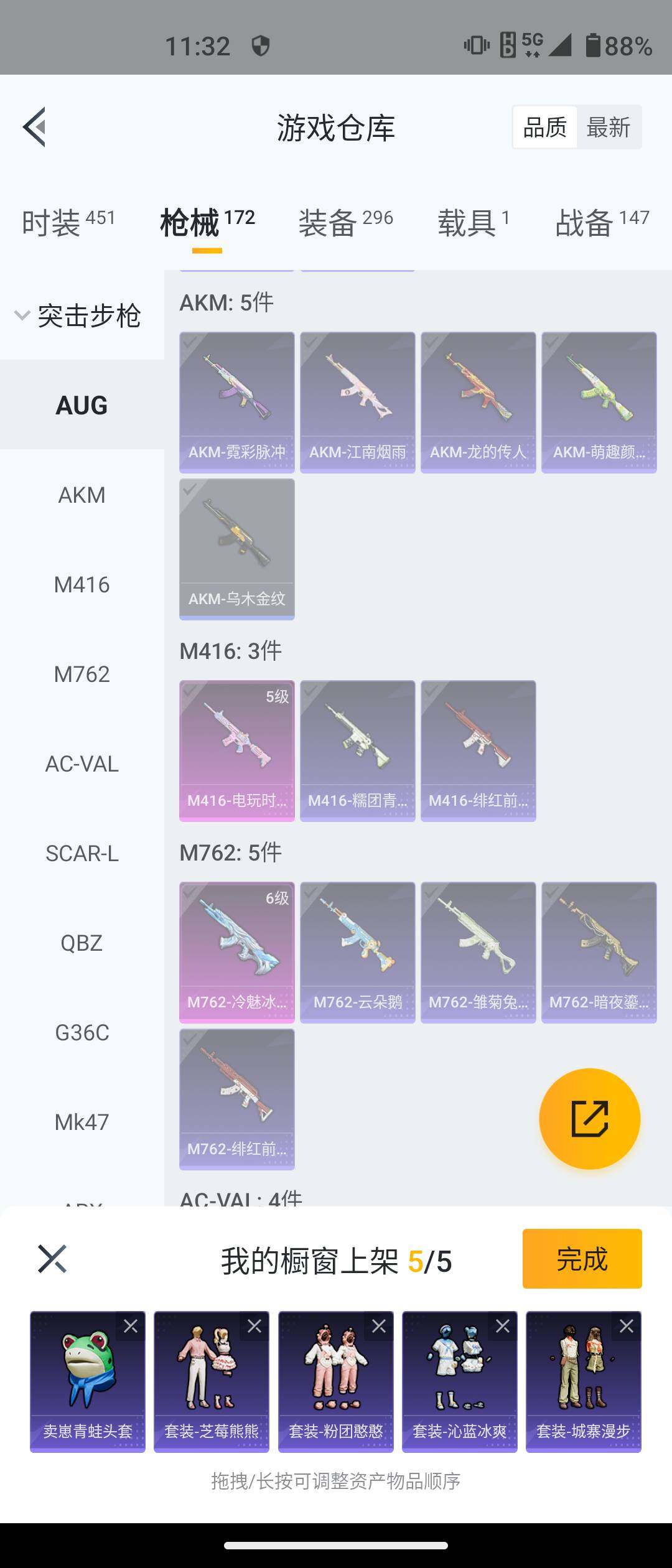 【粉色枪皮等级】:AKM-绿萝繁花(五级),M416-心之恋语(七级),AUG-星之彼岸(七级),Kar98K-巳巳如意(一级),M