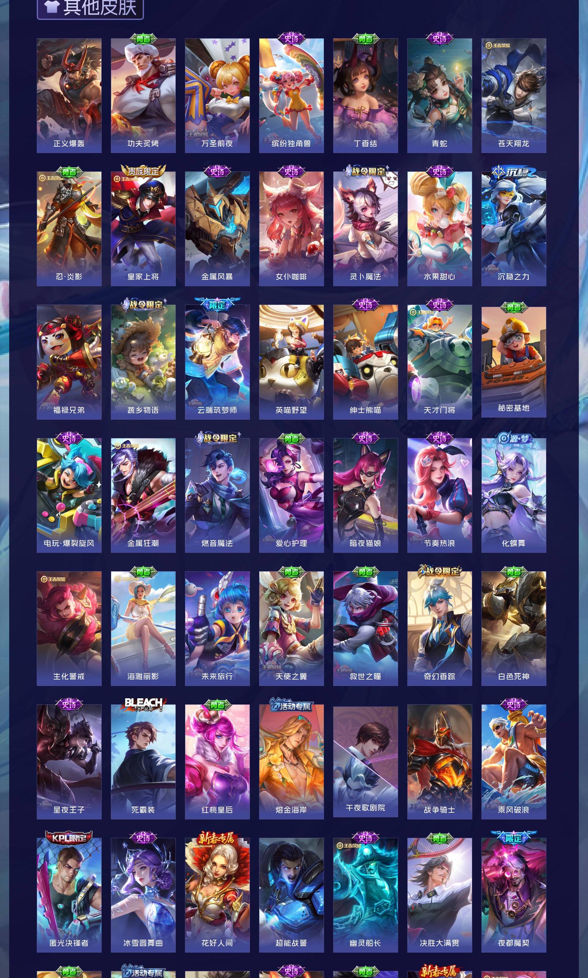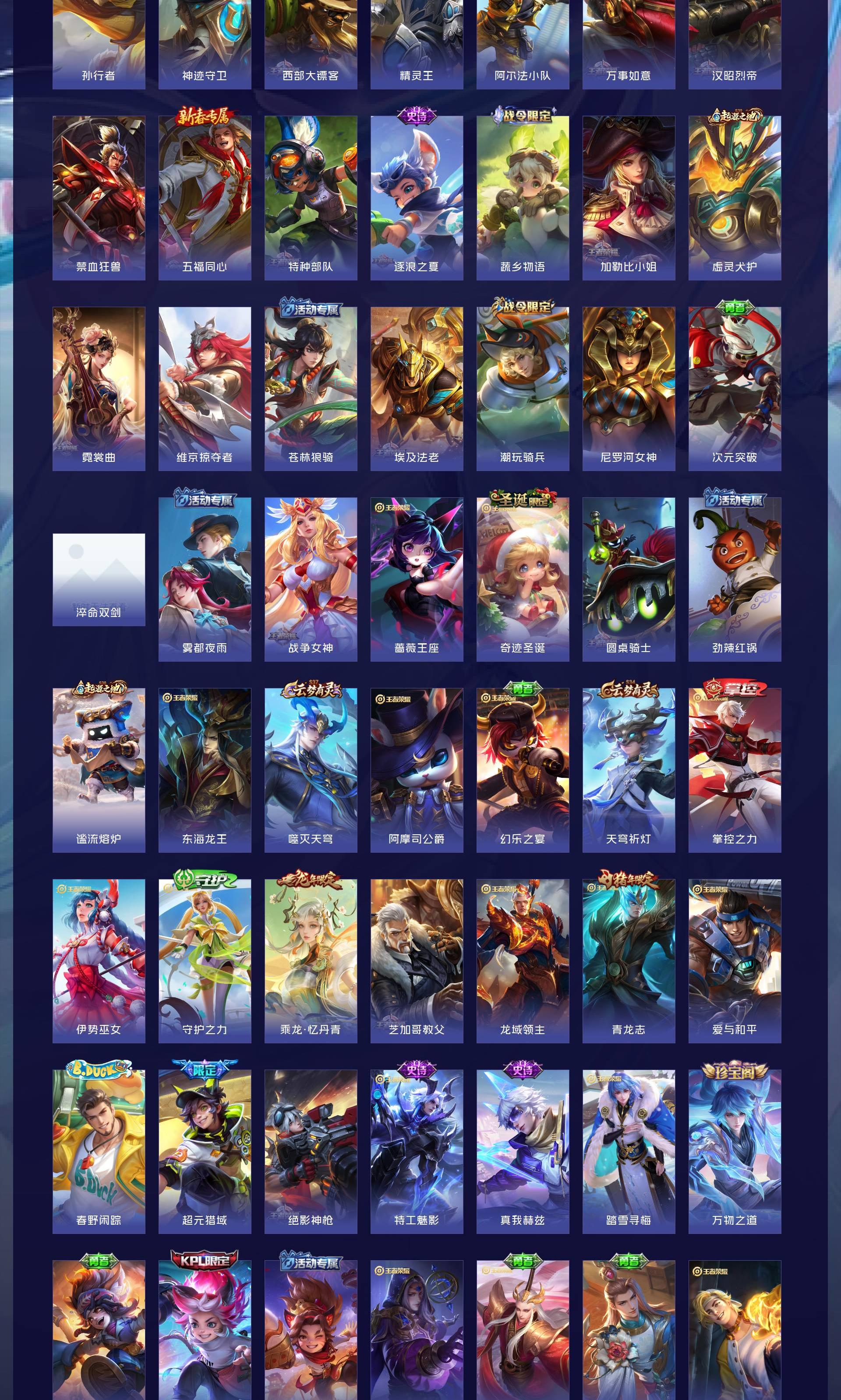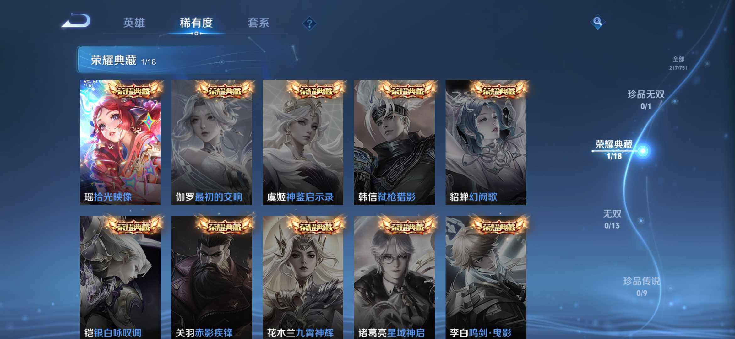 皮肤217 英雄113 永恒钻石 荣耀典藏1 传说28 其他皮肤195-【217皮1典藏27传说 拾光映像 愿照九州拓 黄金天蝎座 落雪白狼 琥珀纪元
