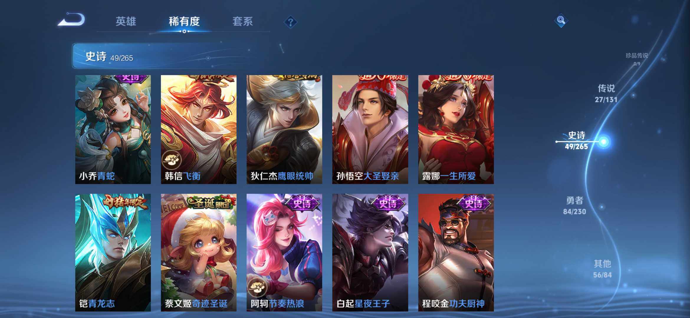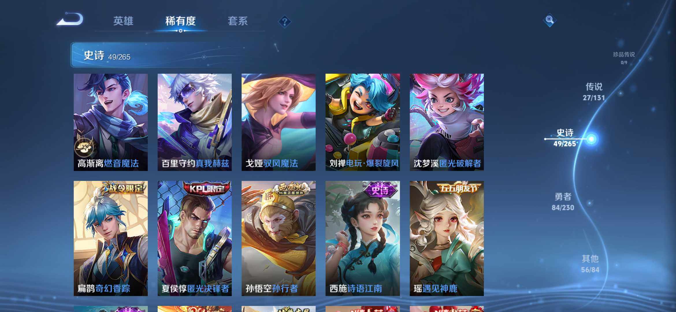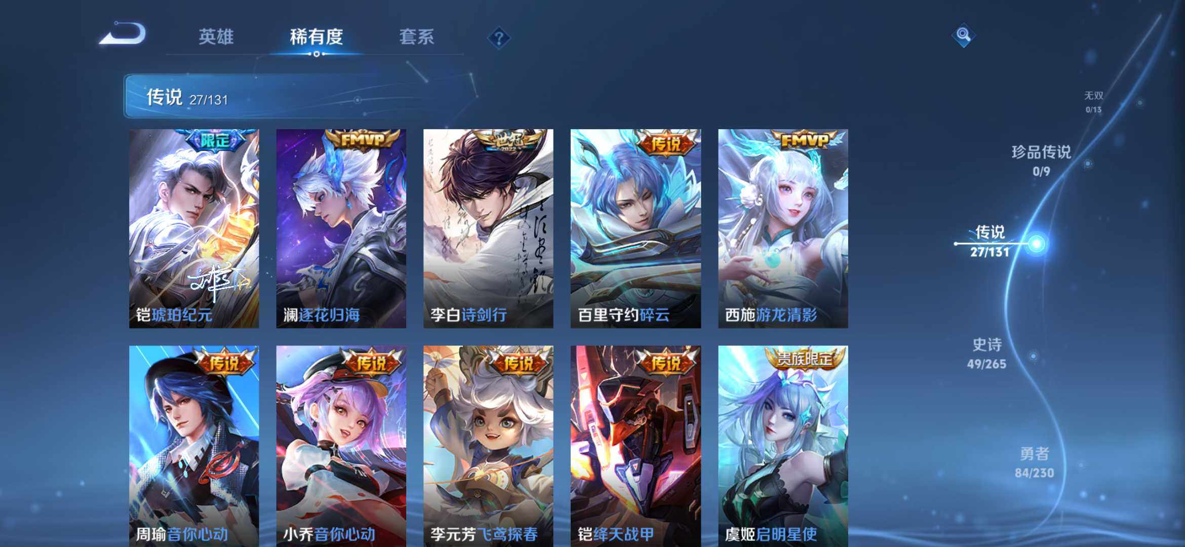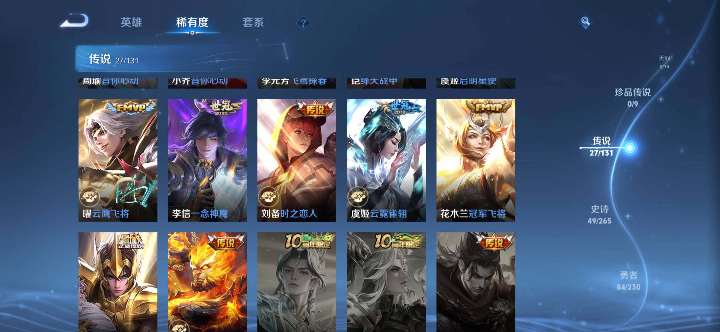 皮肤217 英雄113 永恒钻石 荣耀典藏1 传说28 其他皮肤195-【217皮1典藏27传说 拾光映像 愿照九州拓 黄金天蝎座 落雪白狼 琥珀纪元