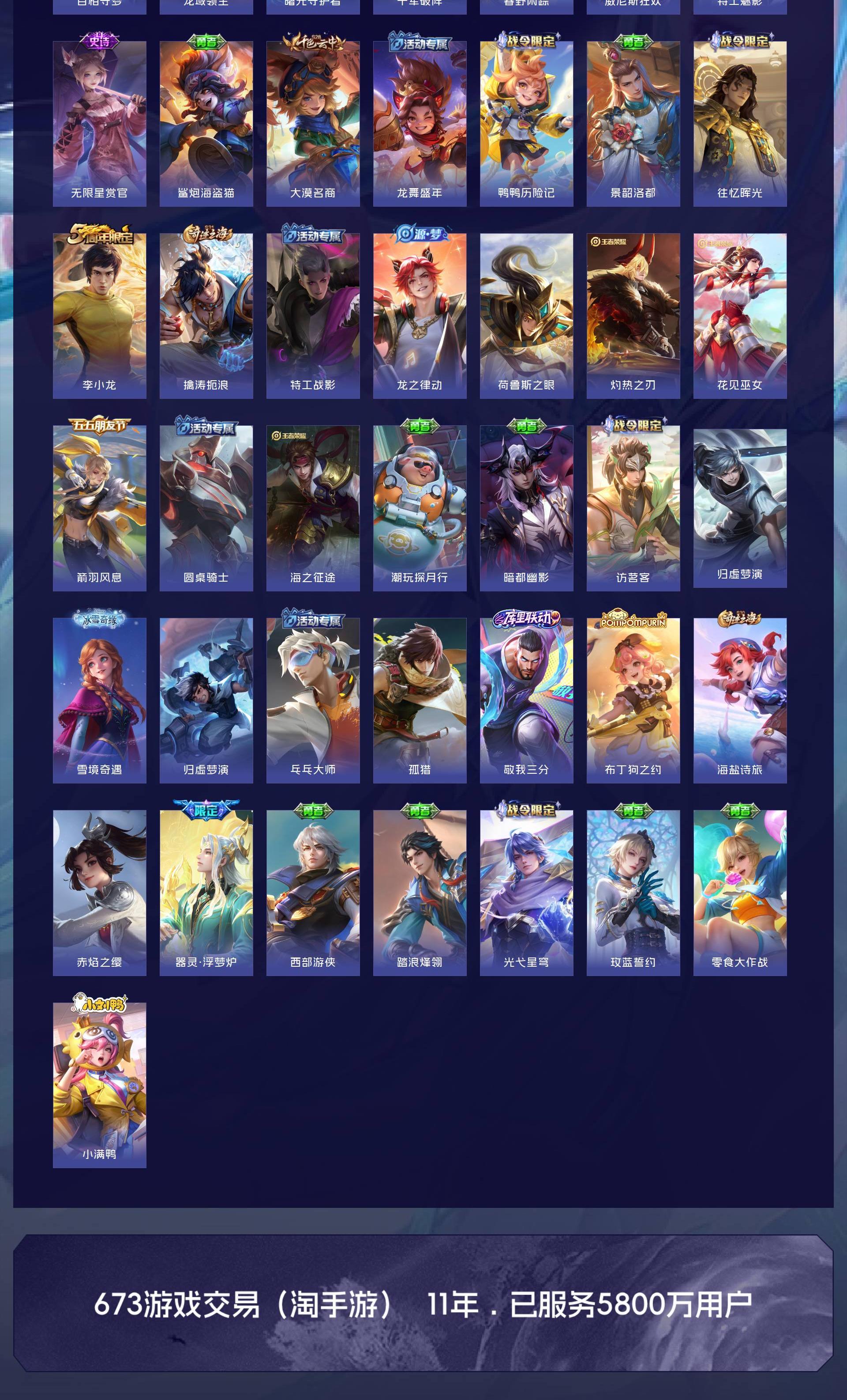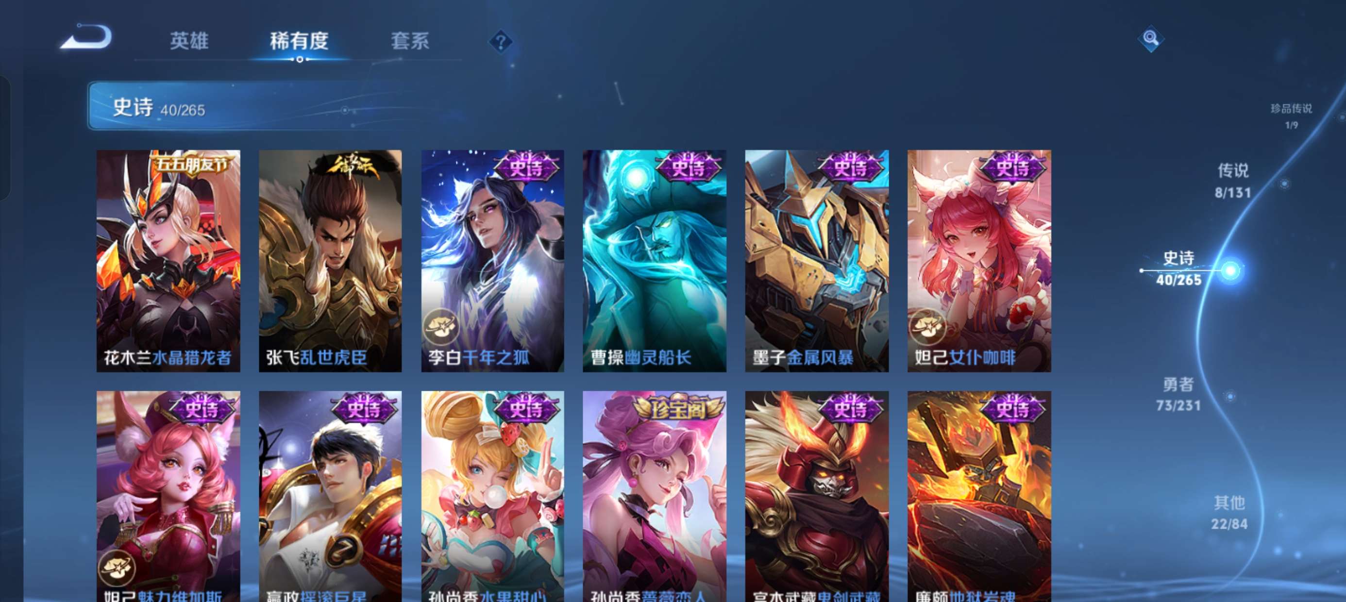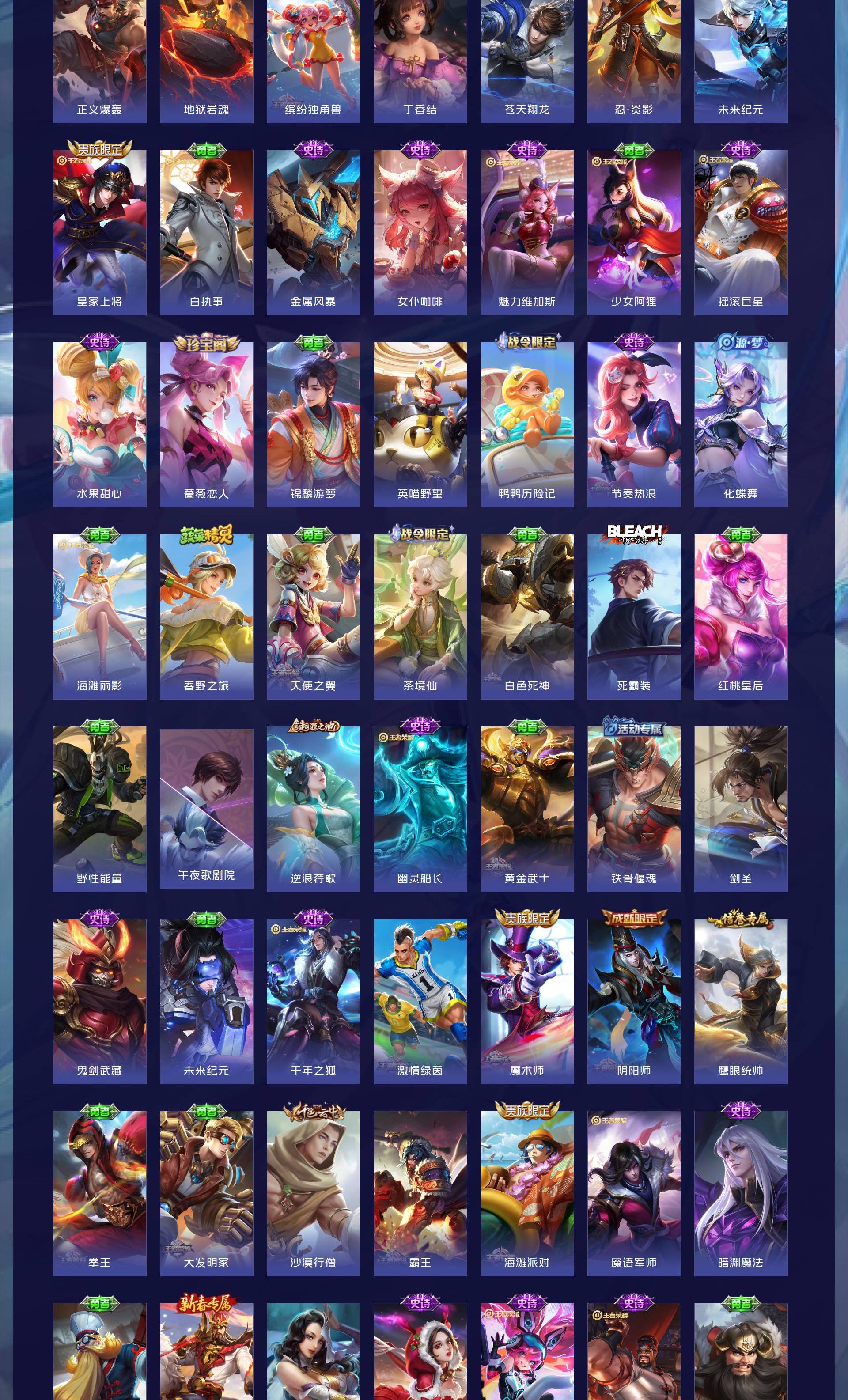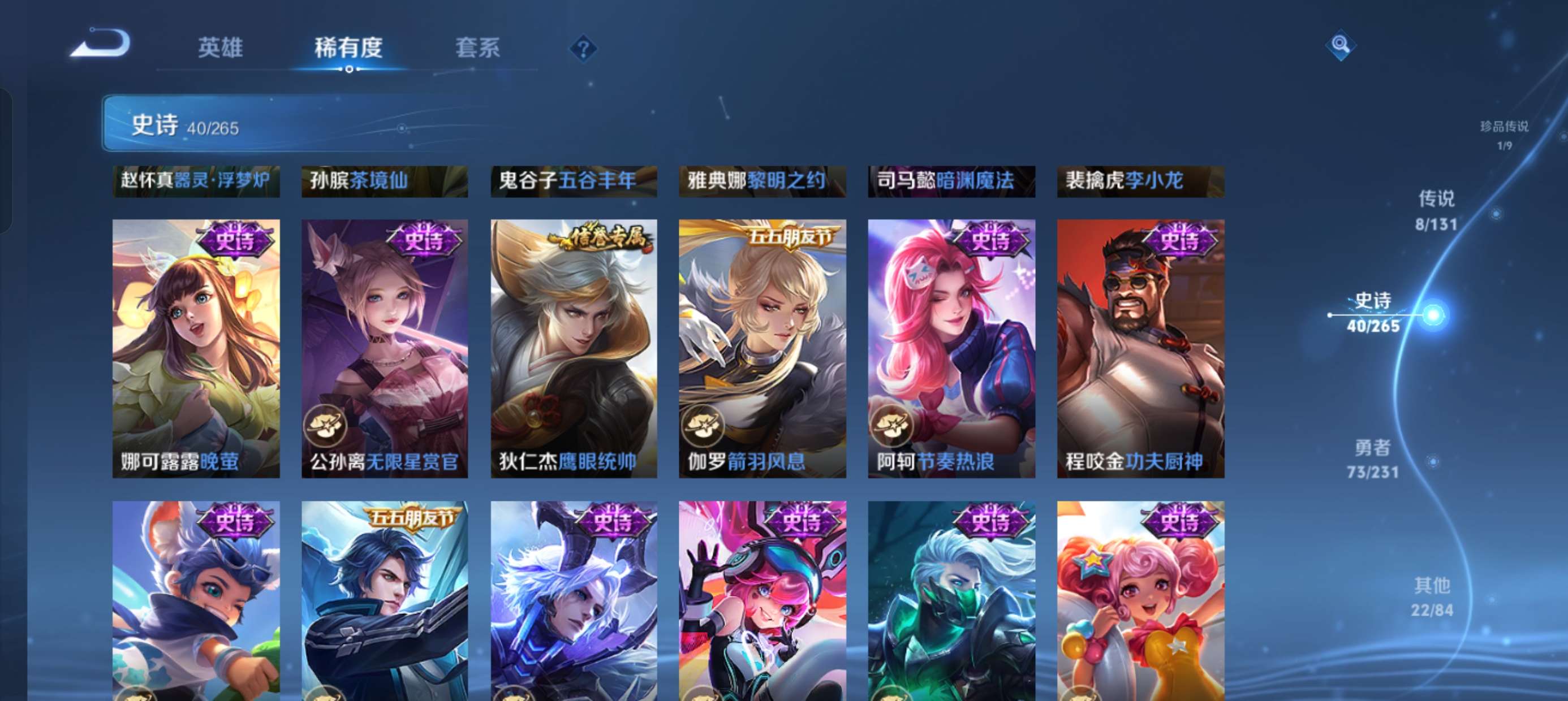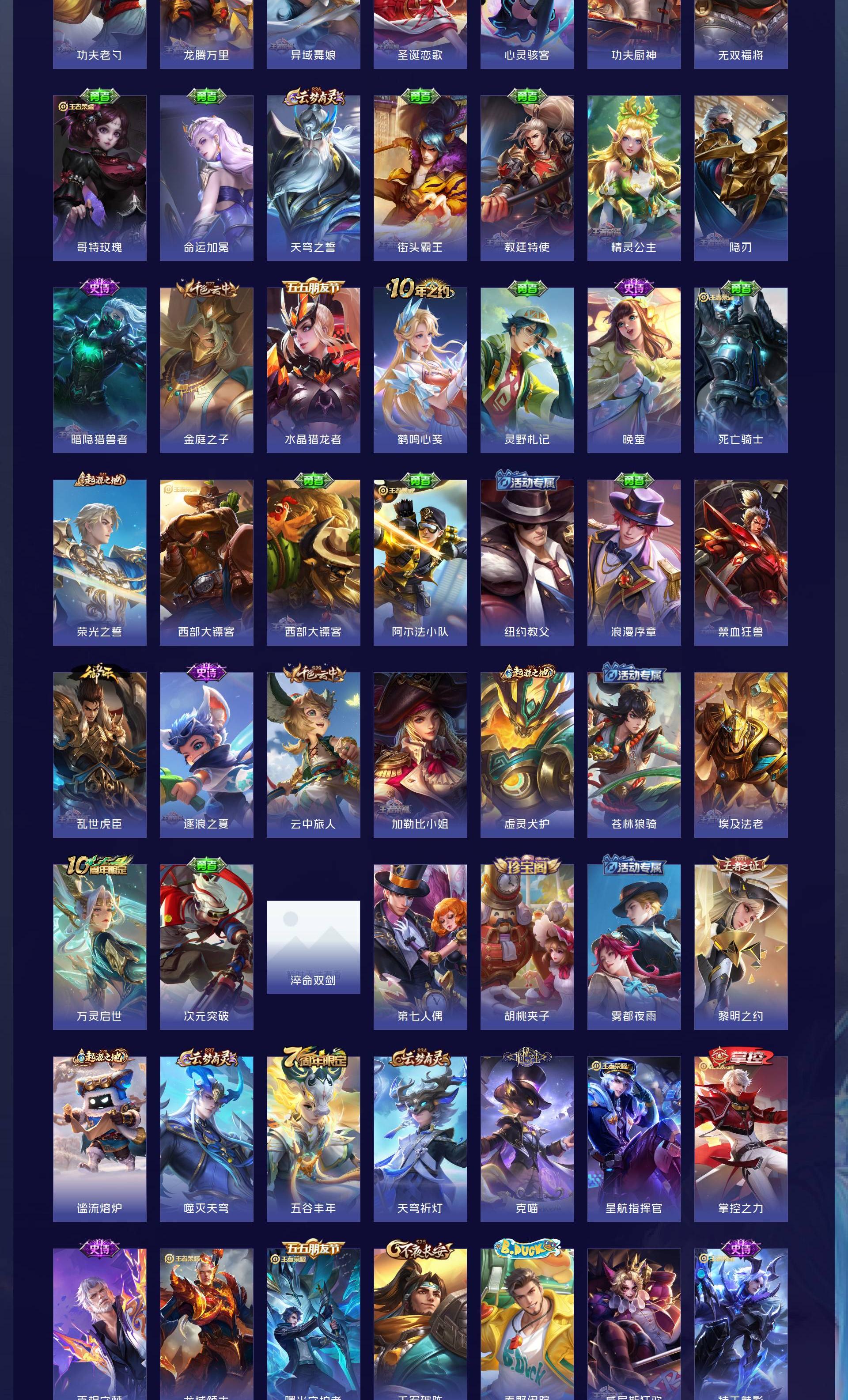 V6 皮肤145 英雄125 绝世王者 荣耀典藏1 珍品传说1 星传说2 传说9 其他皮肤141