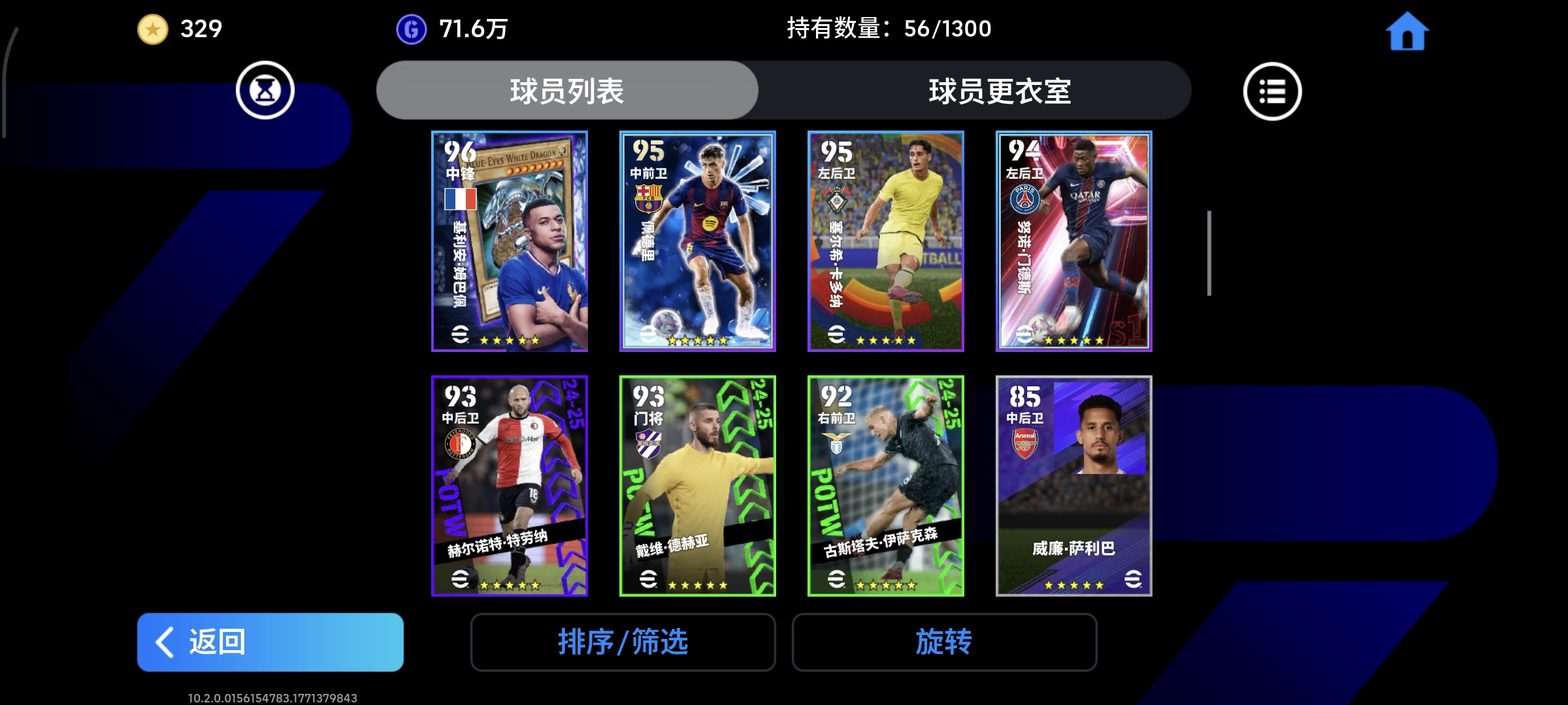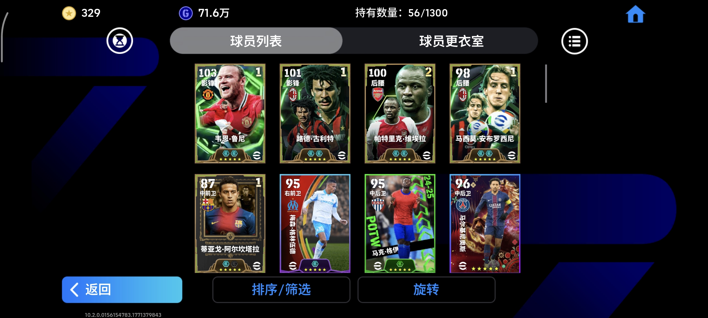 高爆率双神双增古力特维埃拉鲁尼安布罗西尼蒂亚戈伊布包1100积分