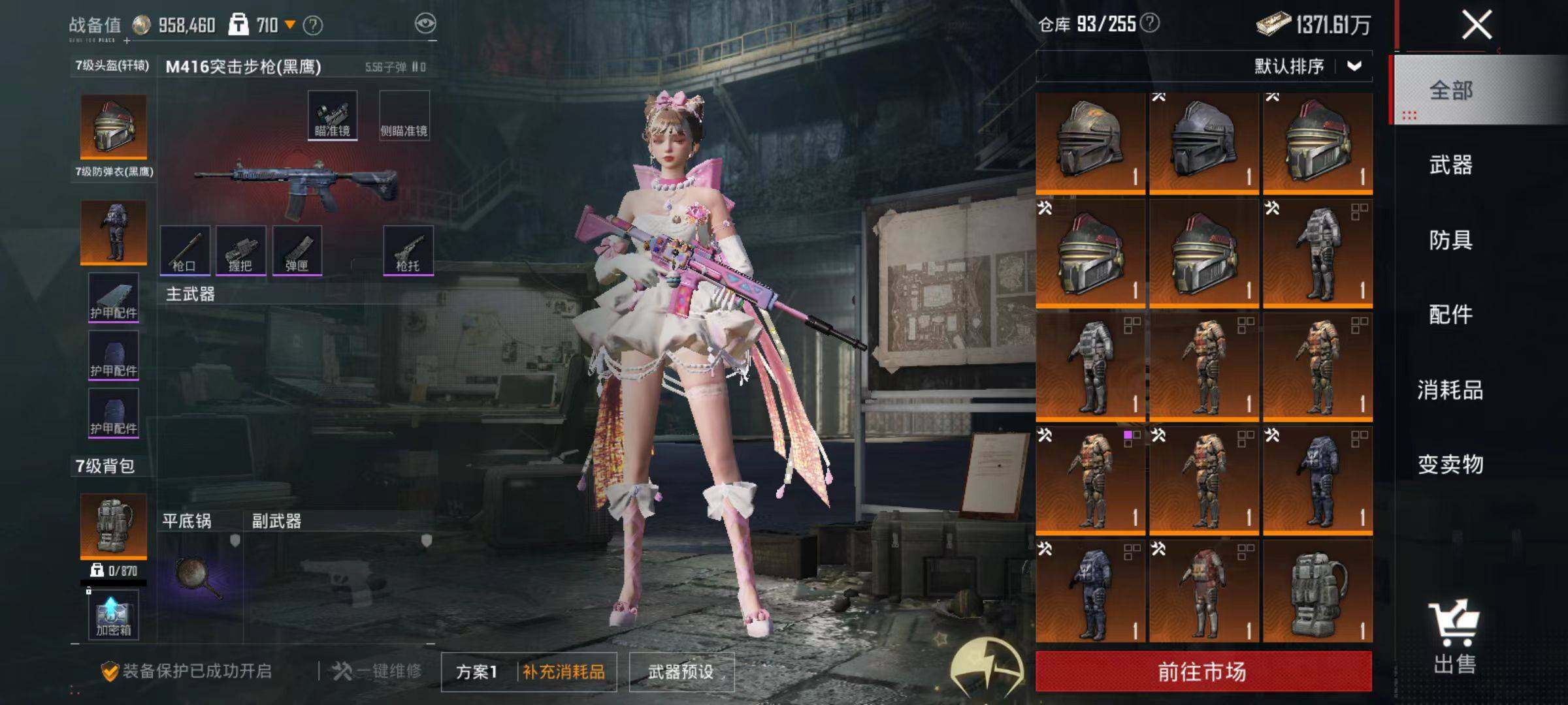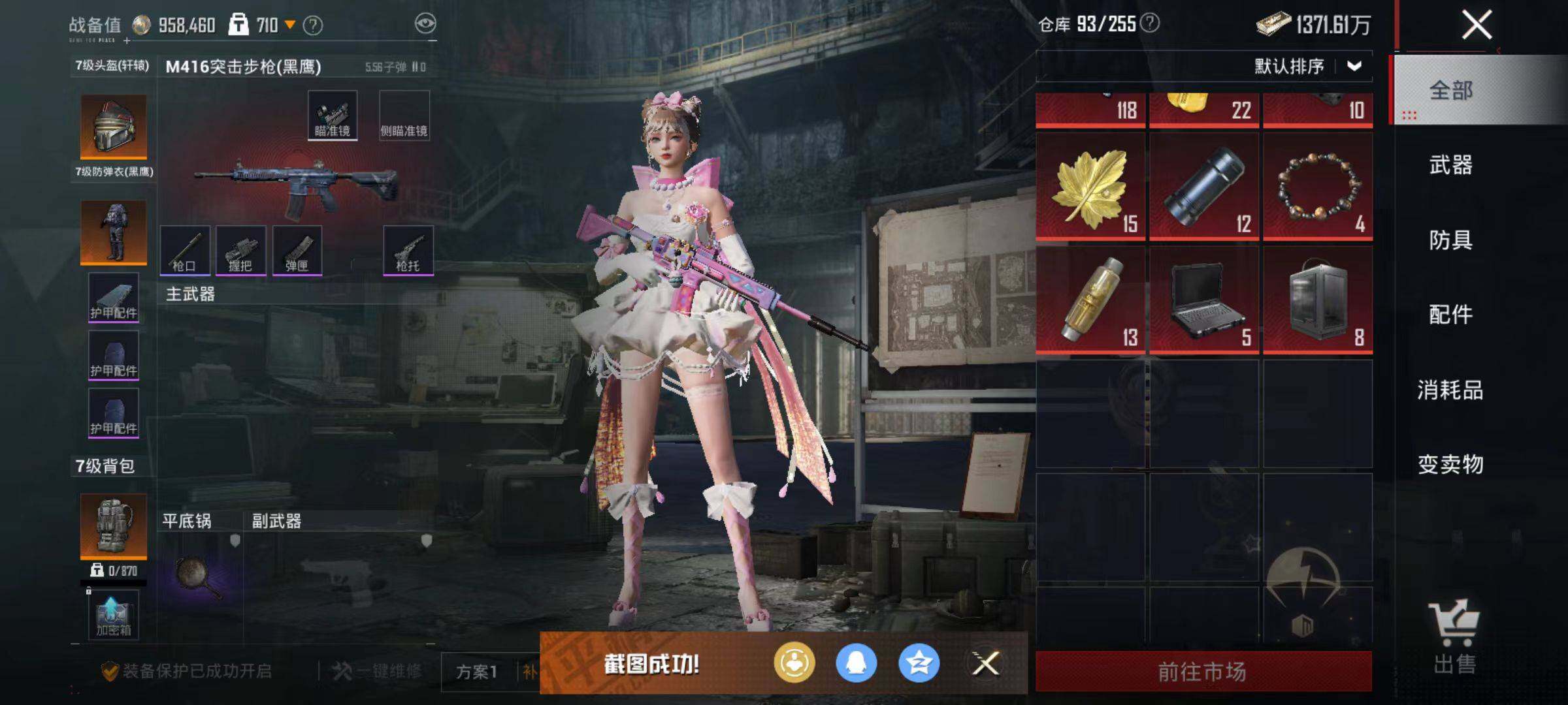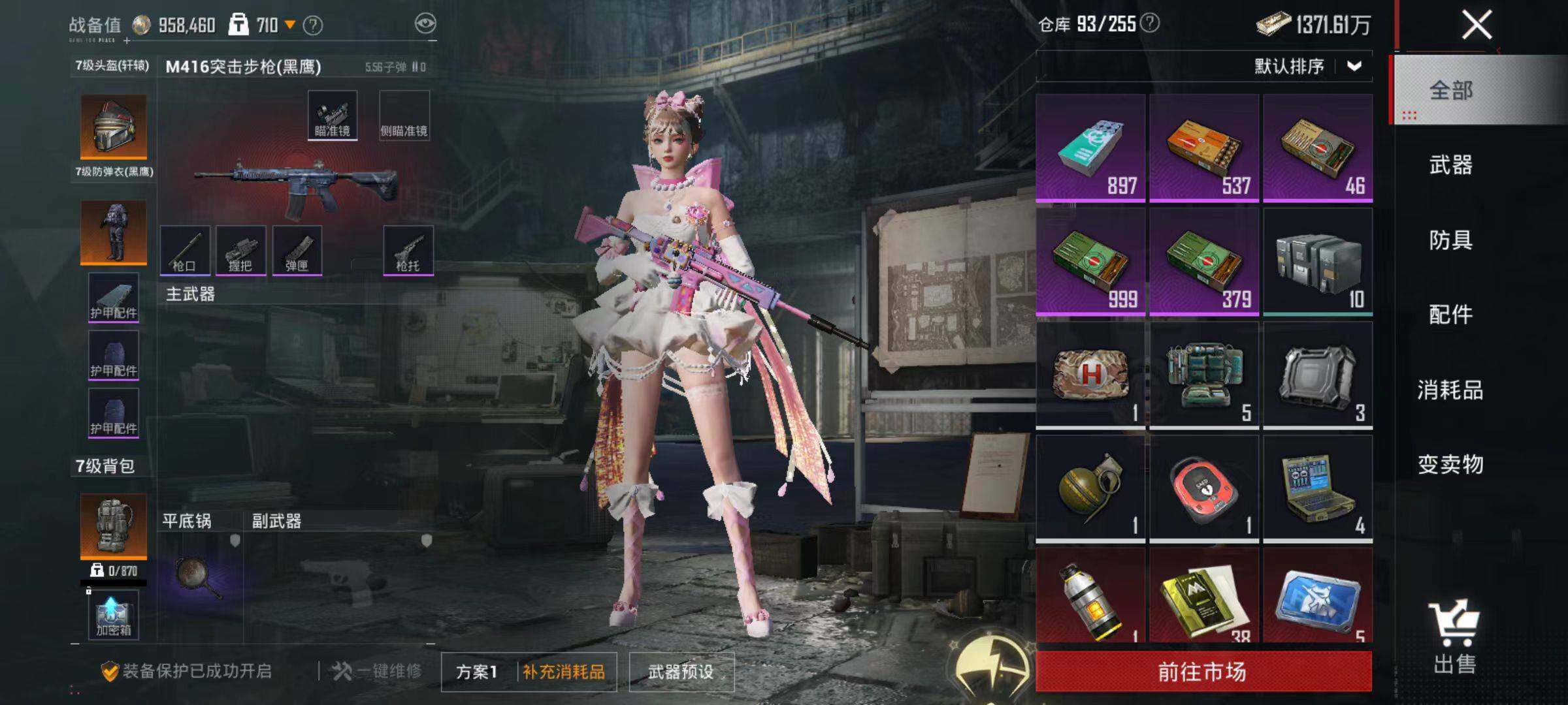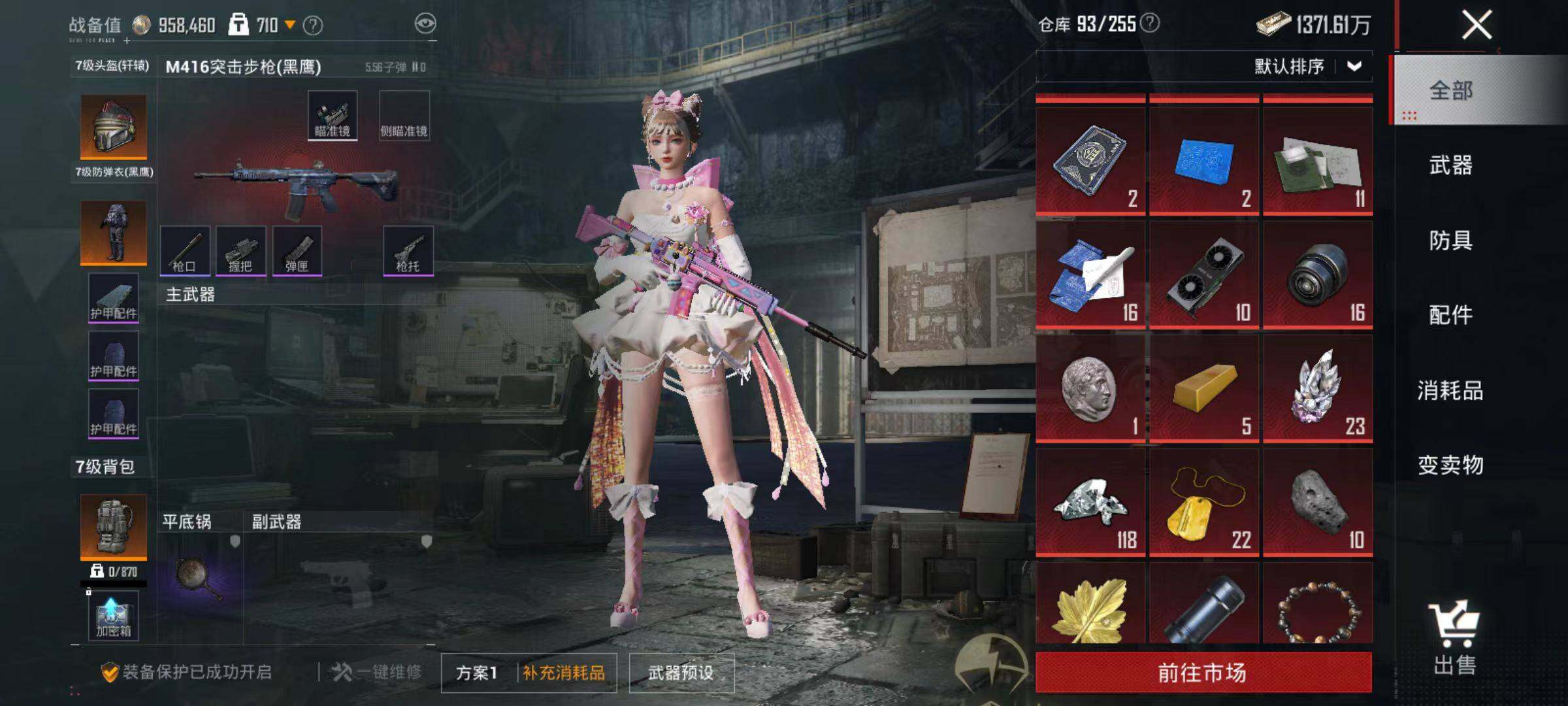 106套装/枪械5/装备190/战备131/王牌印记9/热力值46240/五级M416-电玩时刻/五级AUG-暖羊咩咩/五级UMP45-量子极限/五级Kar98K-巳巳如意/五级DP-28-豹影疾电/都市猎人/角色-千金淑猫/M416-电玩时刻/AUG-暖羊咩咩/UMP45-量子极限/Kar98K-巳巳如意/DP-28-豹影疾电/极意拳锋飞行器/闪光银龙降落伞/创世·救赎降落伞/临安公主降落伞/