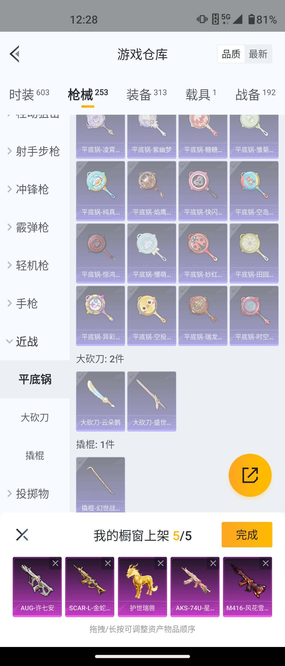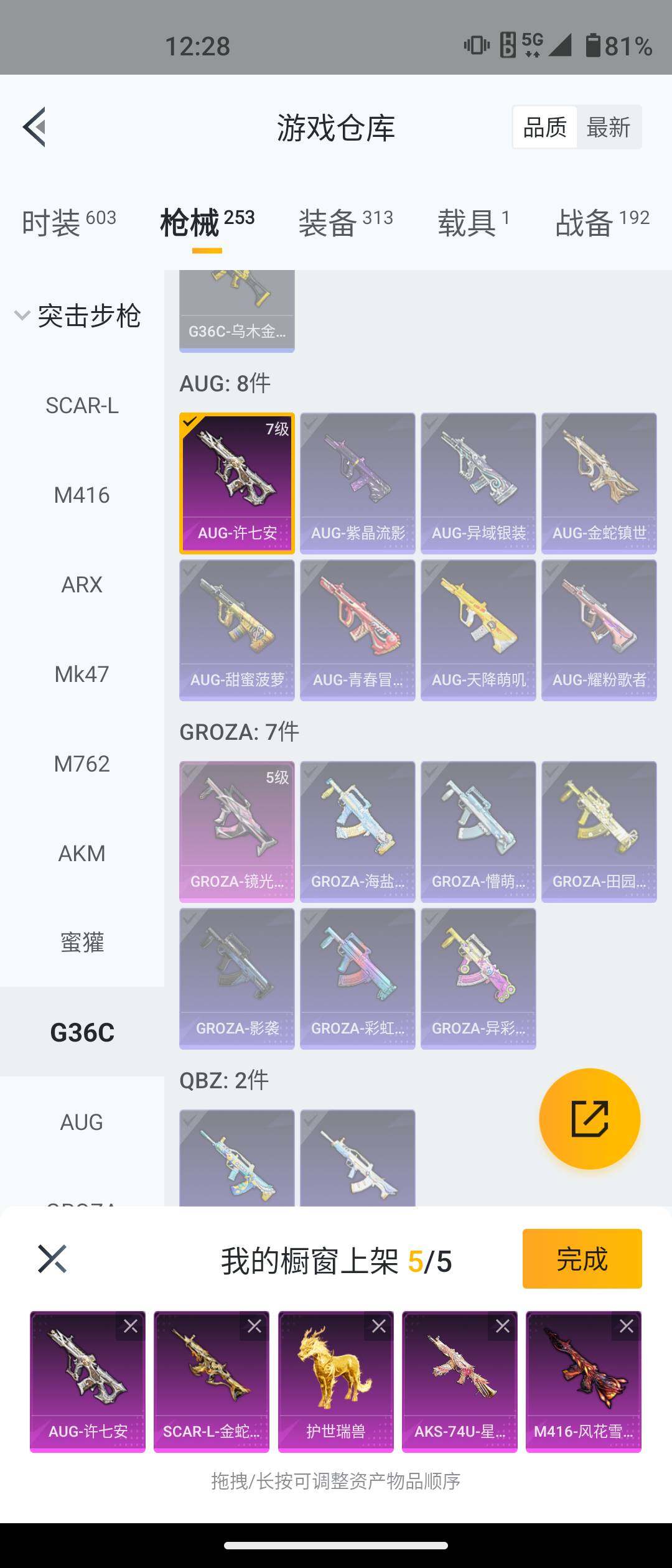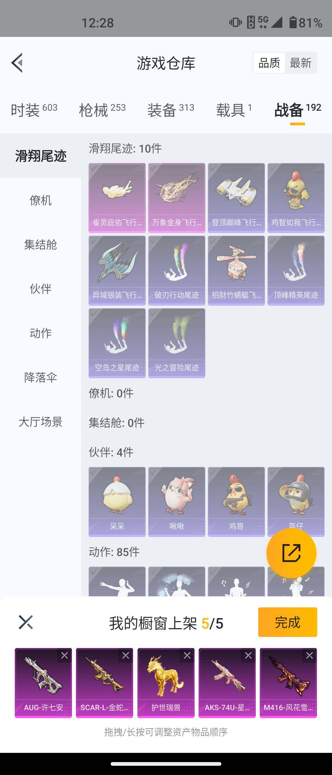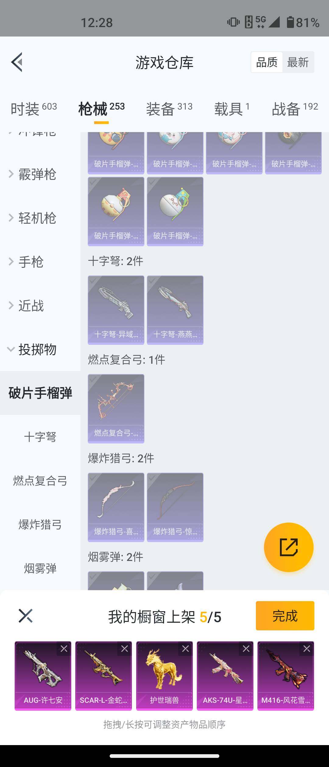 安卓 手Q-5粉装-12特效枪-1载具-2粉色飞行器-77549热力值-17王牌印记-161套装-253枪皮