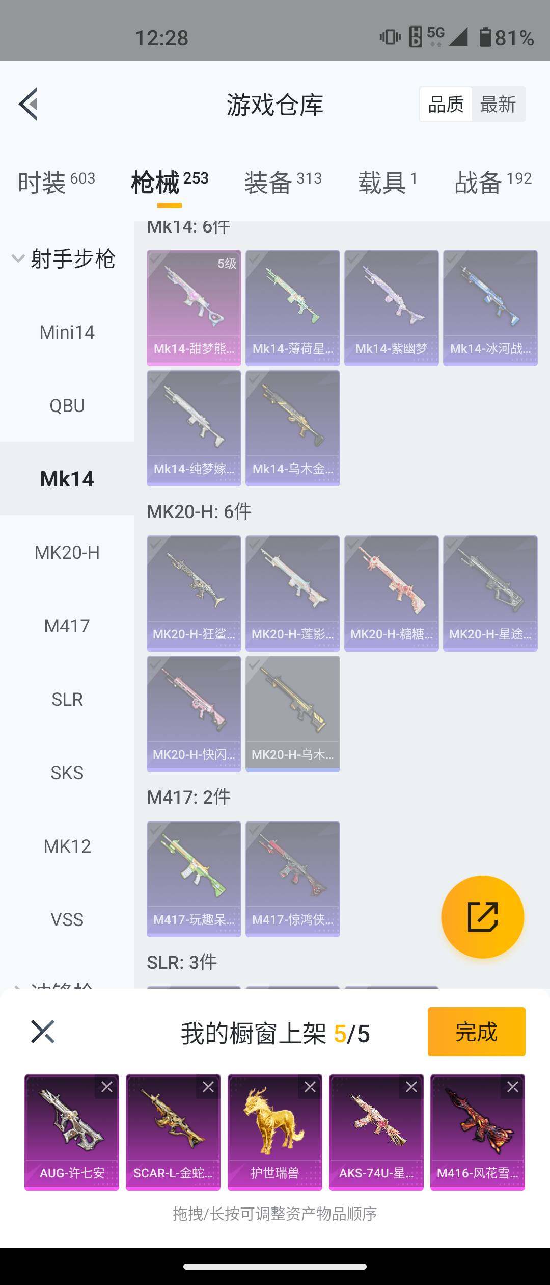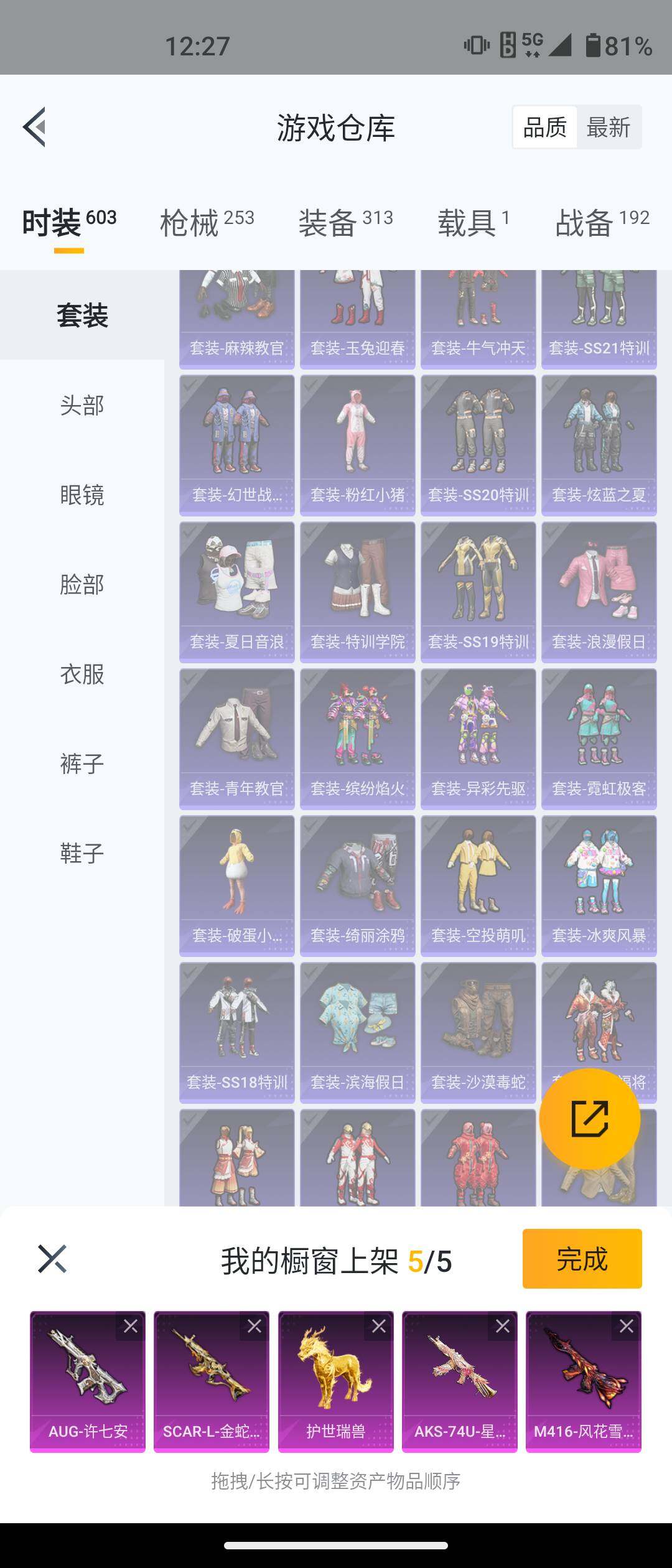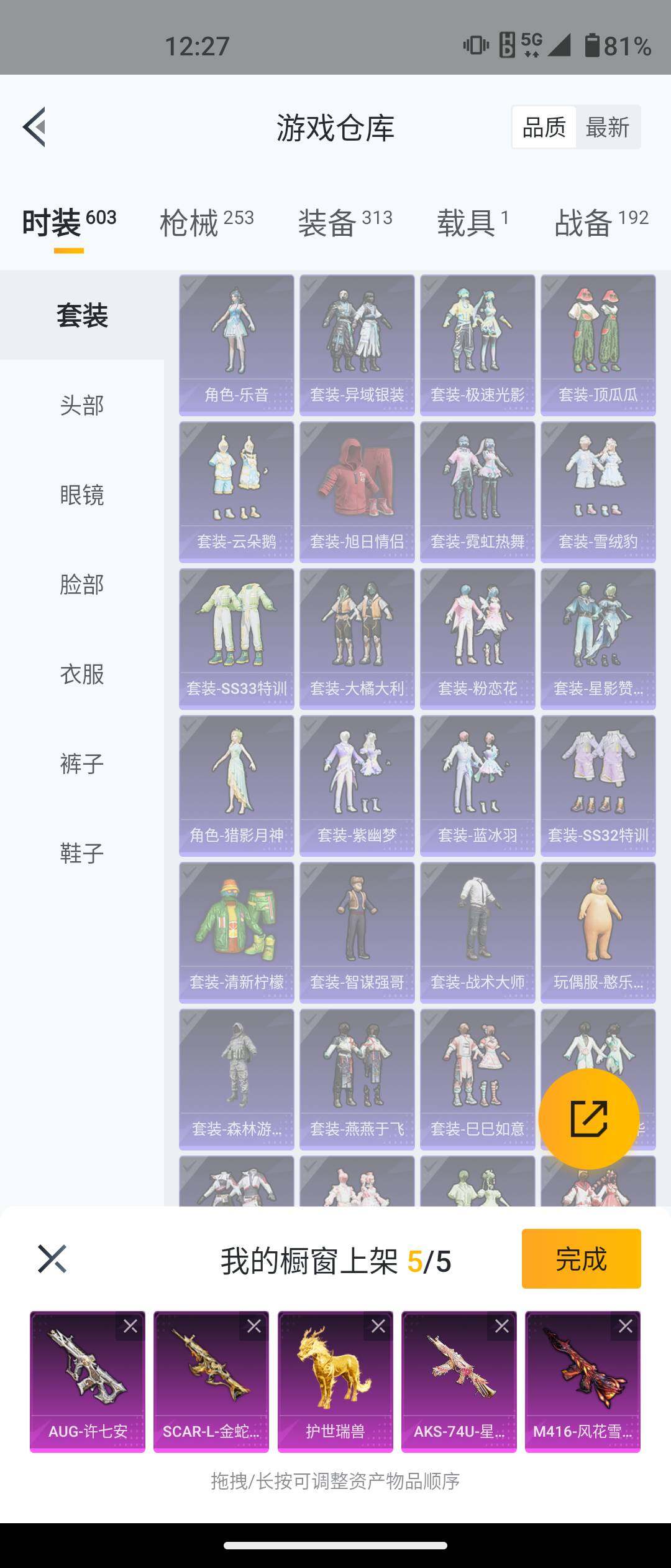 安卓 手Q-5粉装-12特效枪-1载具-2粉色飞行器-77549热力值-17王牌印记-161套装-253枪皮