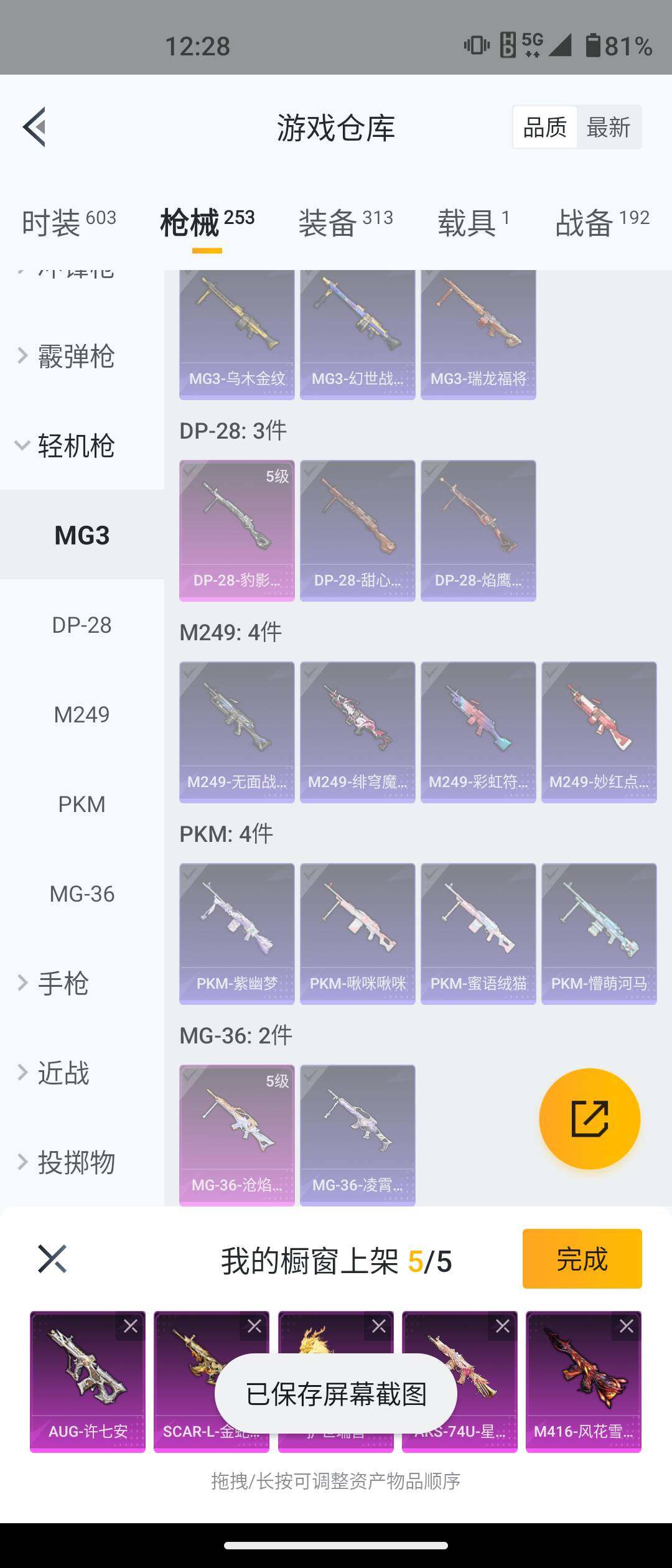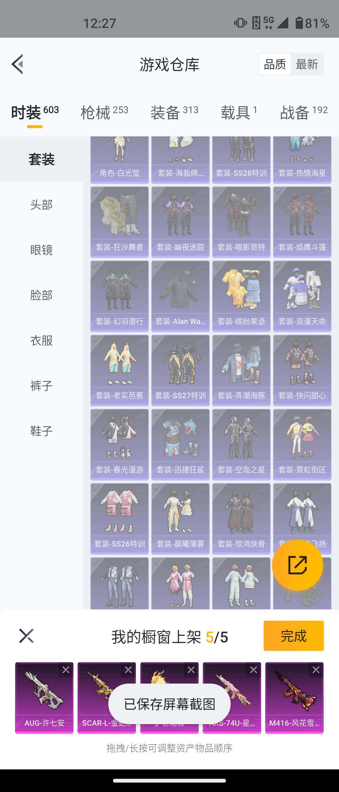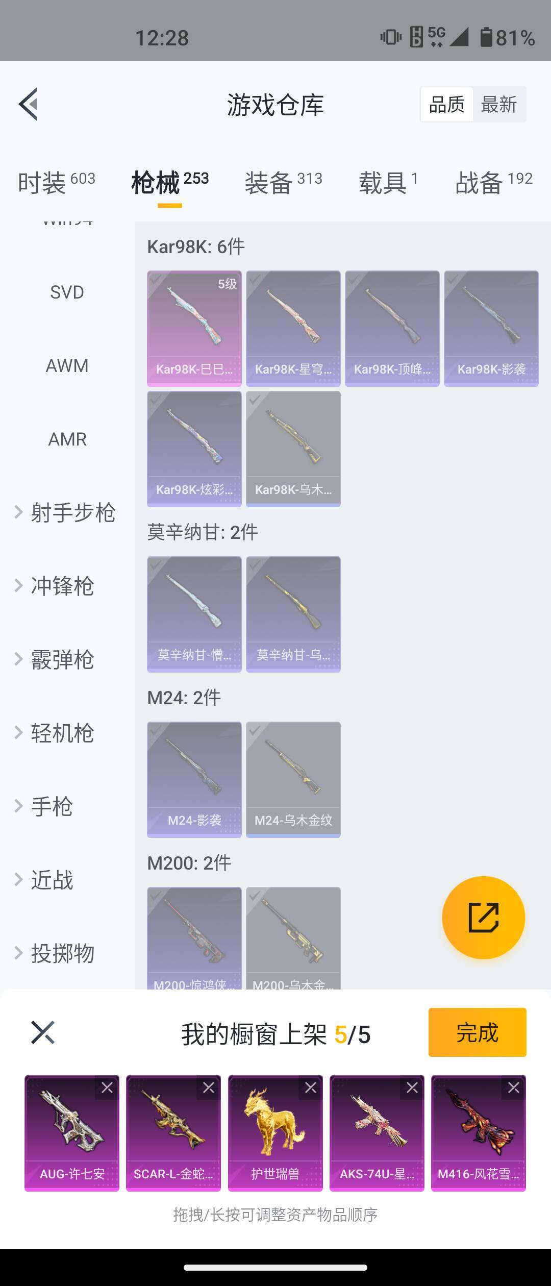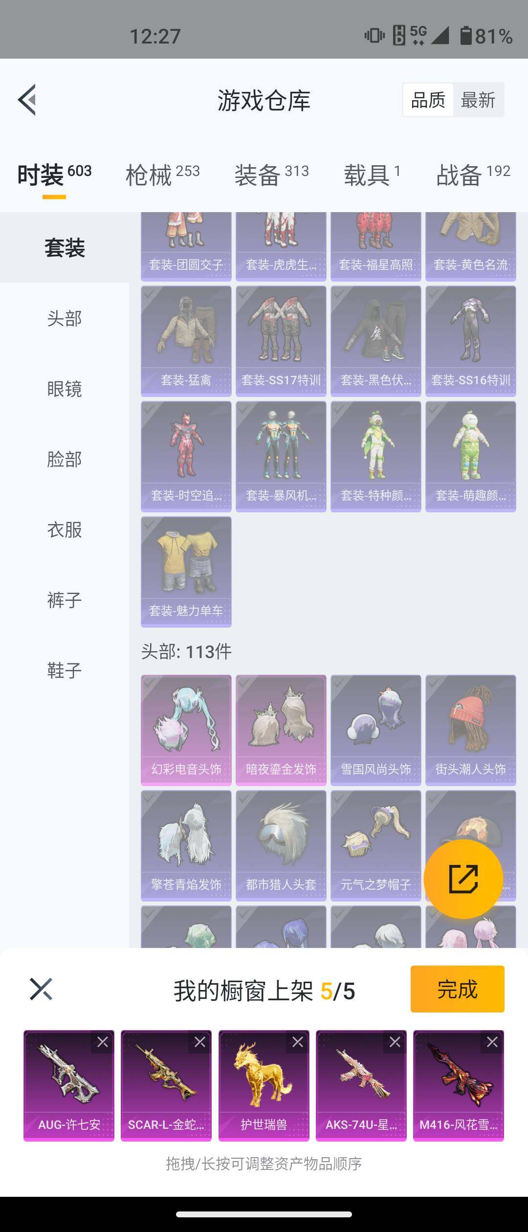 安卓 手Q-5粉装-12特效枪-1载具-2粉色飞行器-77549热力值-17王牌印记-161套装-253枪皮