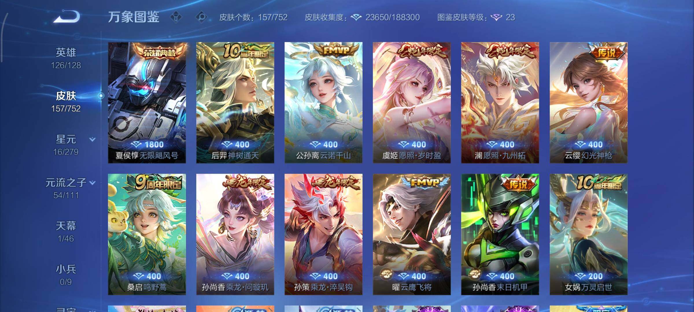 营地账号:/可换绑【夏侯惇典藏 蛇年限定 龙年孙策 多传说限定号】6按键 6王者印记 五级铭文150 可二次KK7471 安卓Q-V6-157皮肤-1典藏皮肤-10传说-45史诗【英雄全皮】:孙权全皮,苍全皮【荣耀典藏】:夏侯惇无限飓风号【传说皮肤】:后羿神树通天,公孙离云诺千山,澜愿照九州拓,虞姬愿照岁时盈,云缨幻光神枪,桑启鸣野蒿,孙尚香乘龙问璇玑,孙策乘龙淬吴钩,曜云鹰
