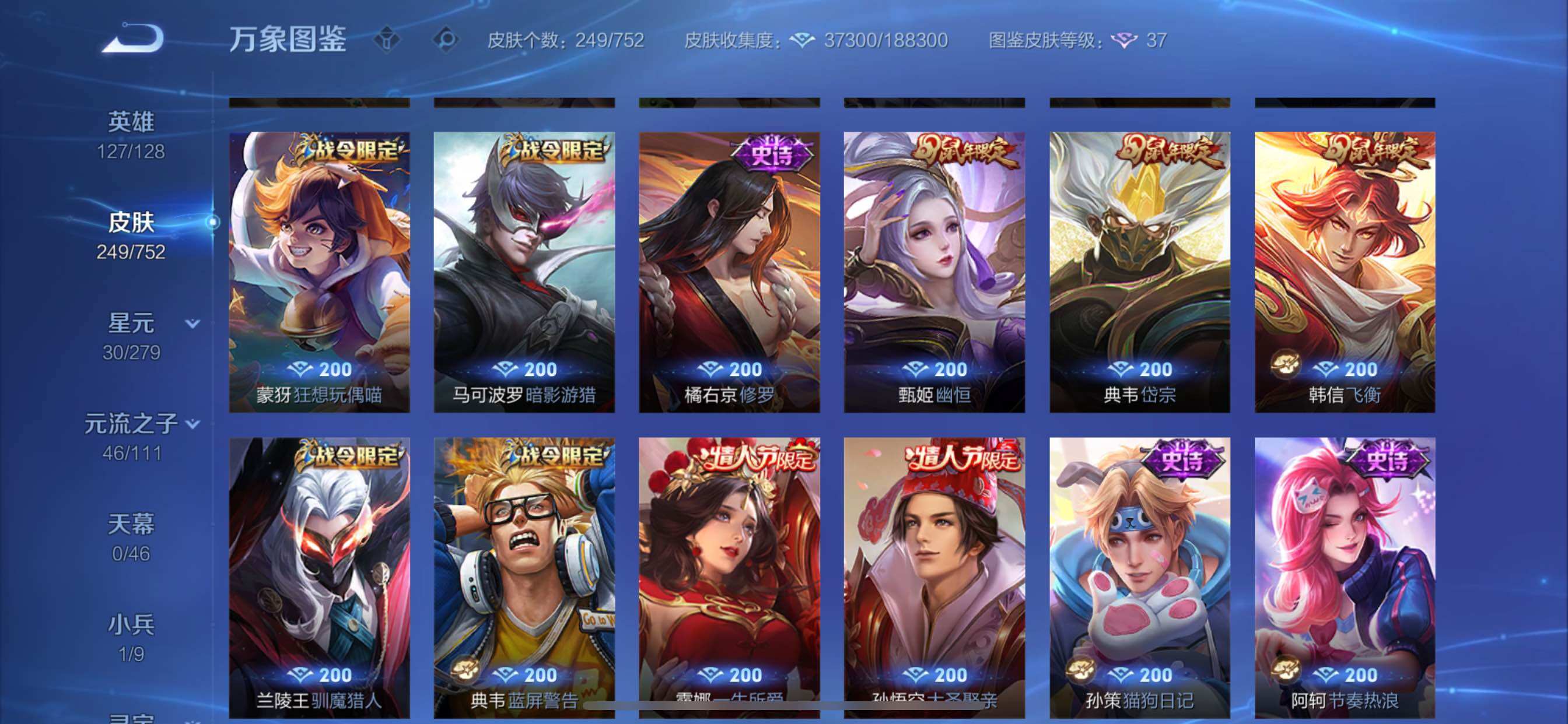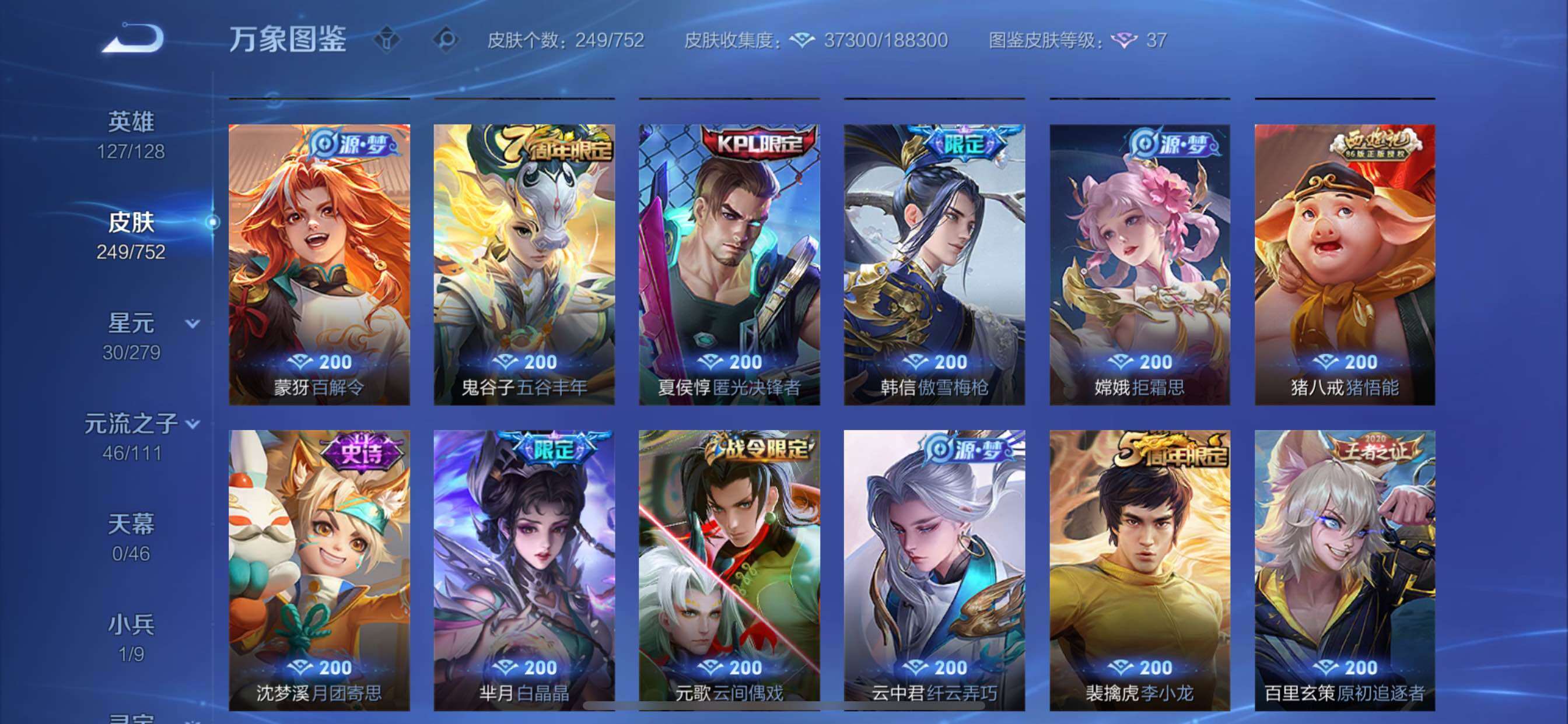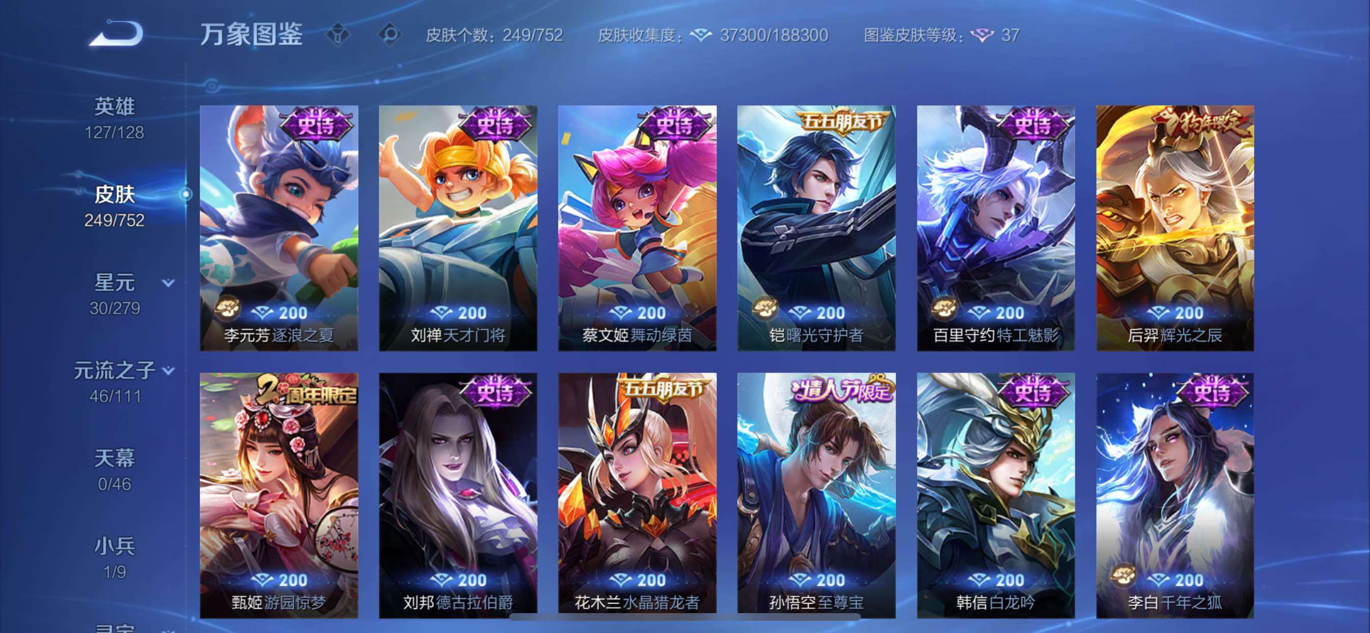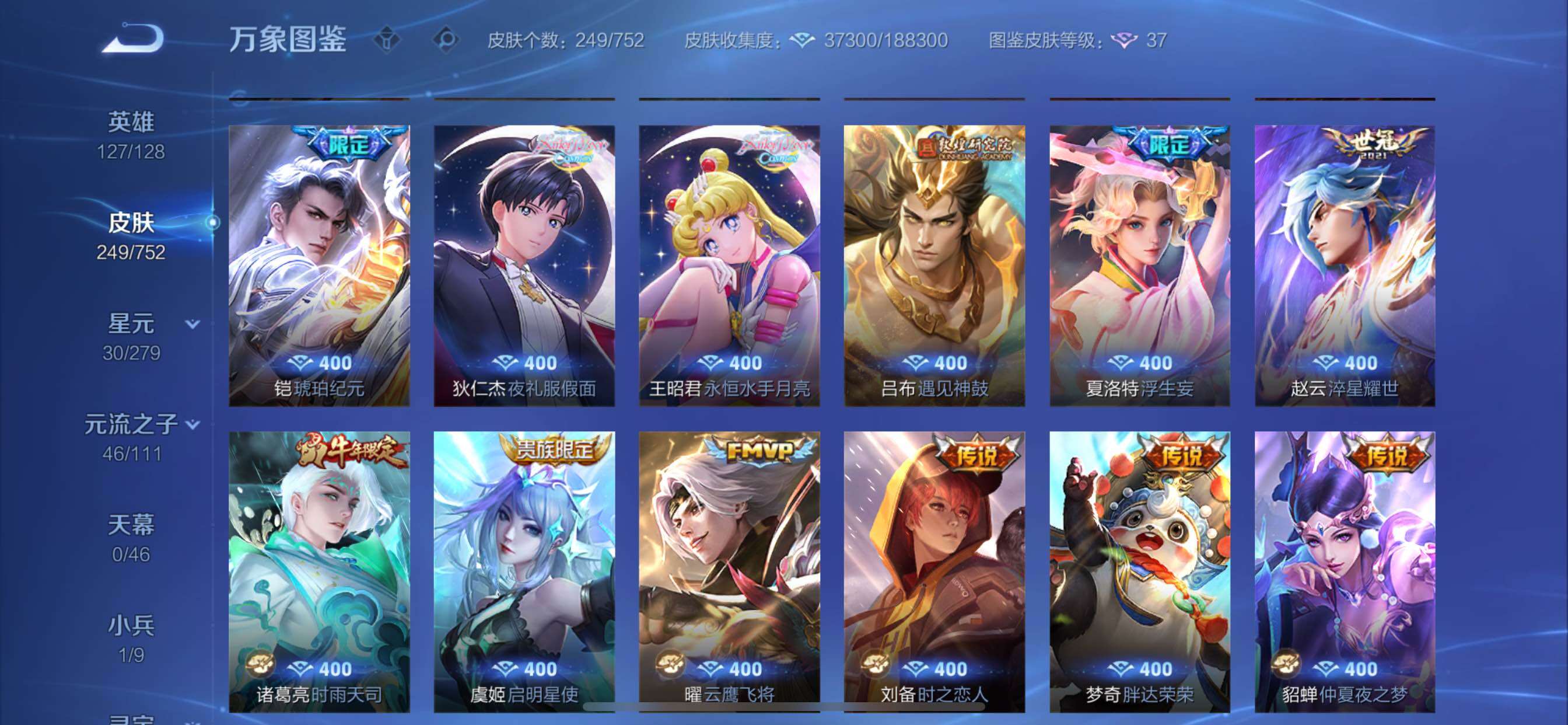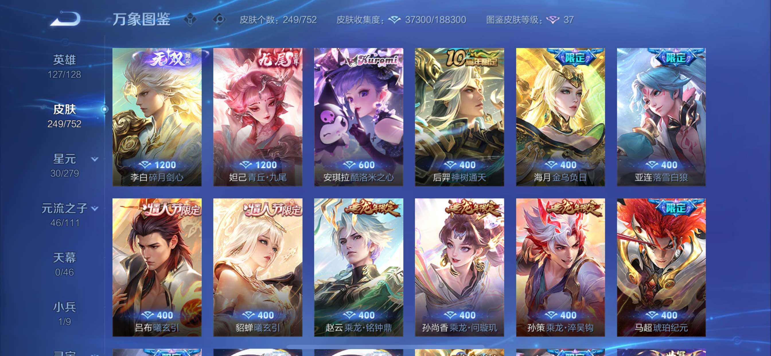 营地账号:/可换绑【李白妲己无双 安琪拉珍品 情人节吕布貂蝉 马超铠琥珀纪元 夜礼服假面永恒水手月亮 龙年全套 多传说限定质量号】12按键,1小兵,2星传说,7王者印记,五级铭文230,可二次KK7465,苹果Q-V8-249皮肤-2无双-1珍品传说-21传说-60史诗【无双皮肤】:妲己青丘九尾,李白碎月剑心