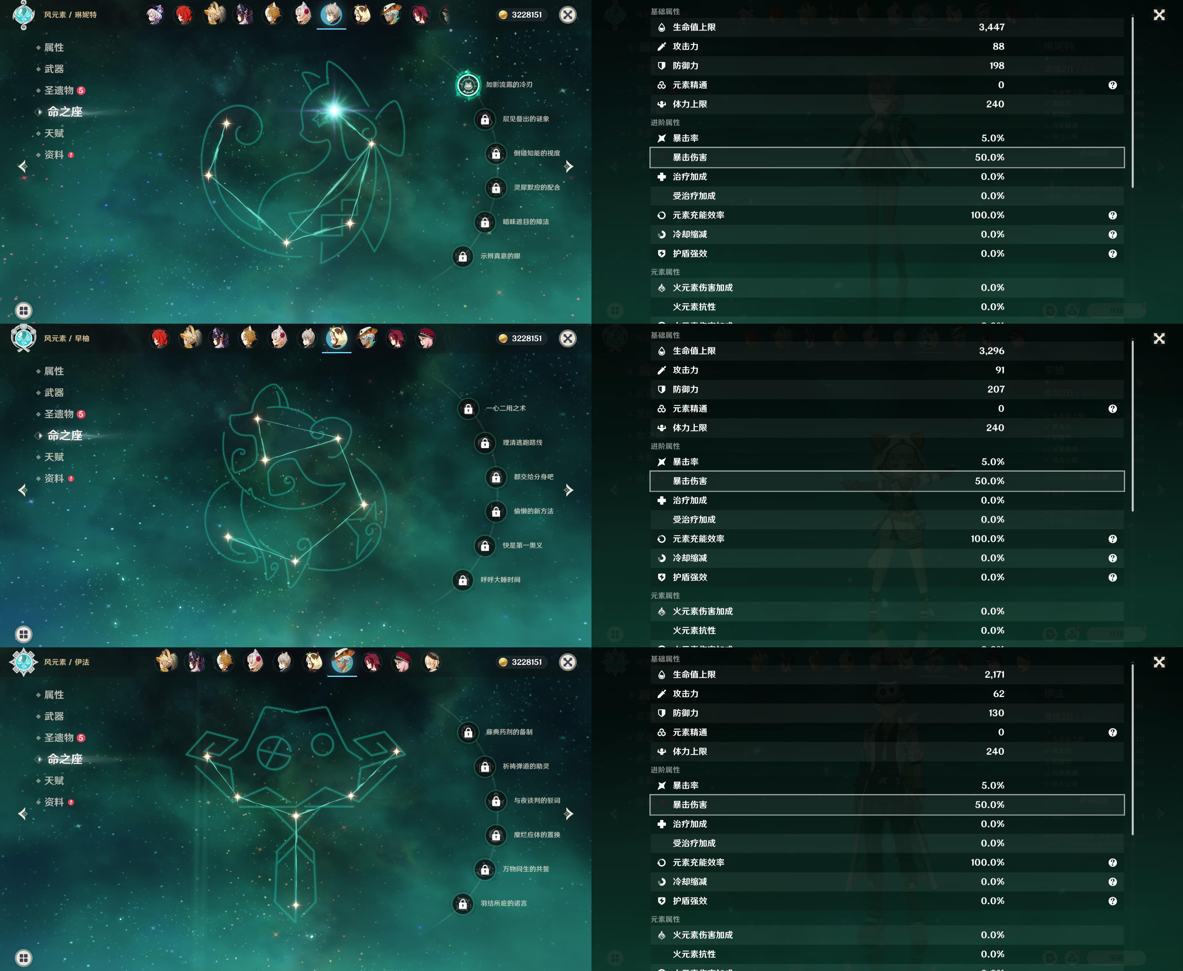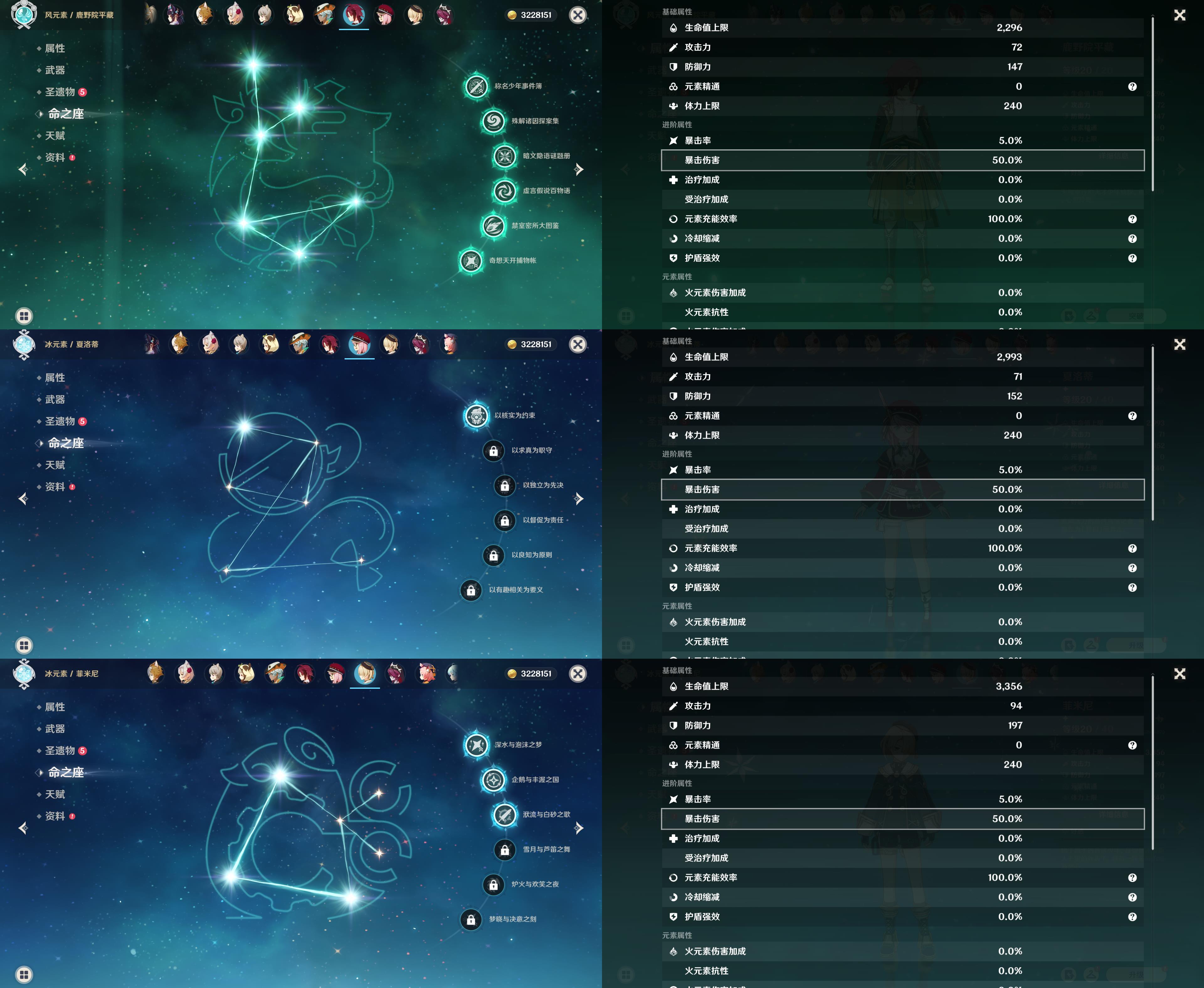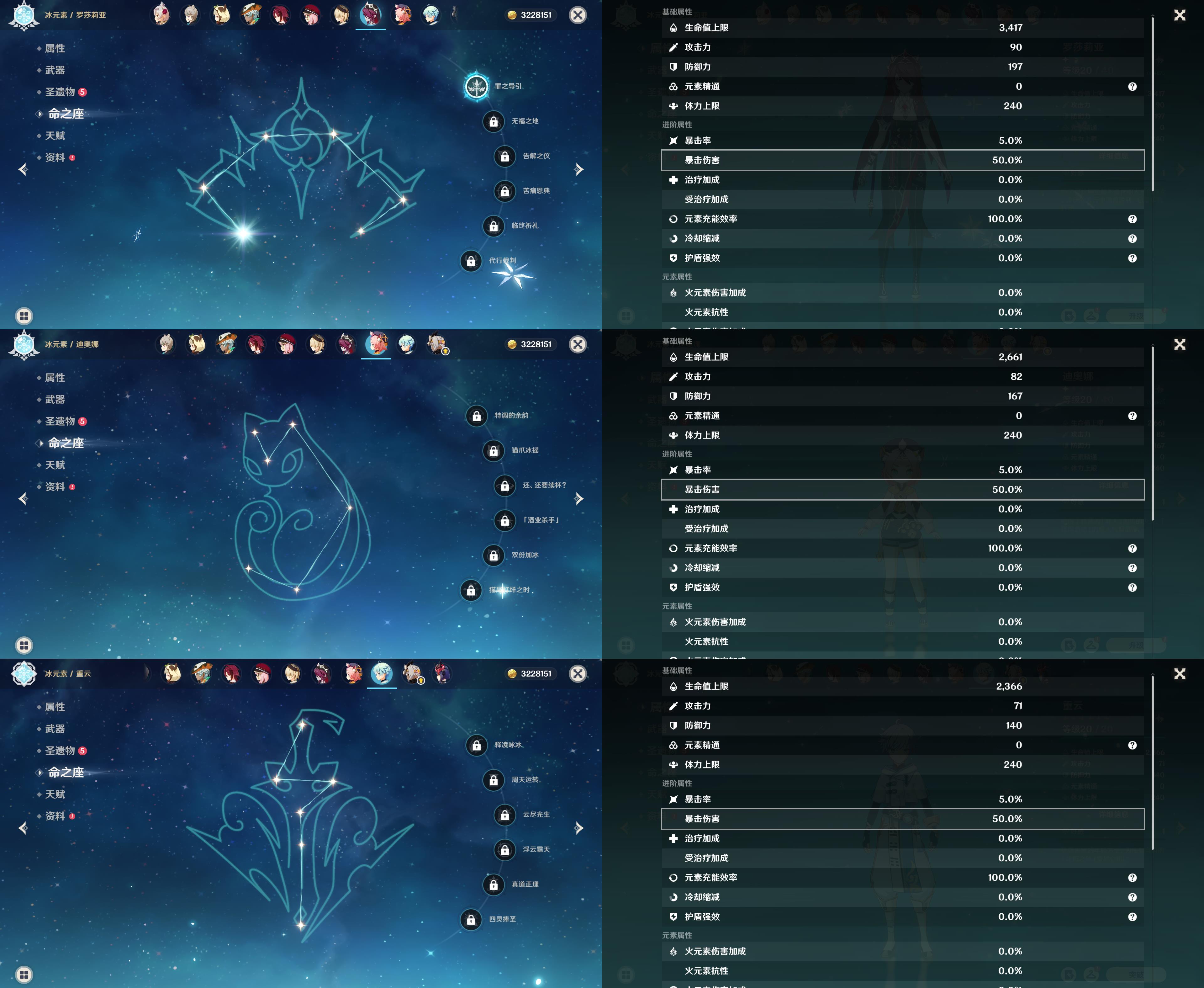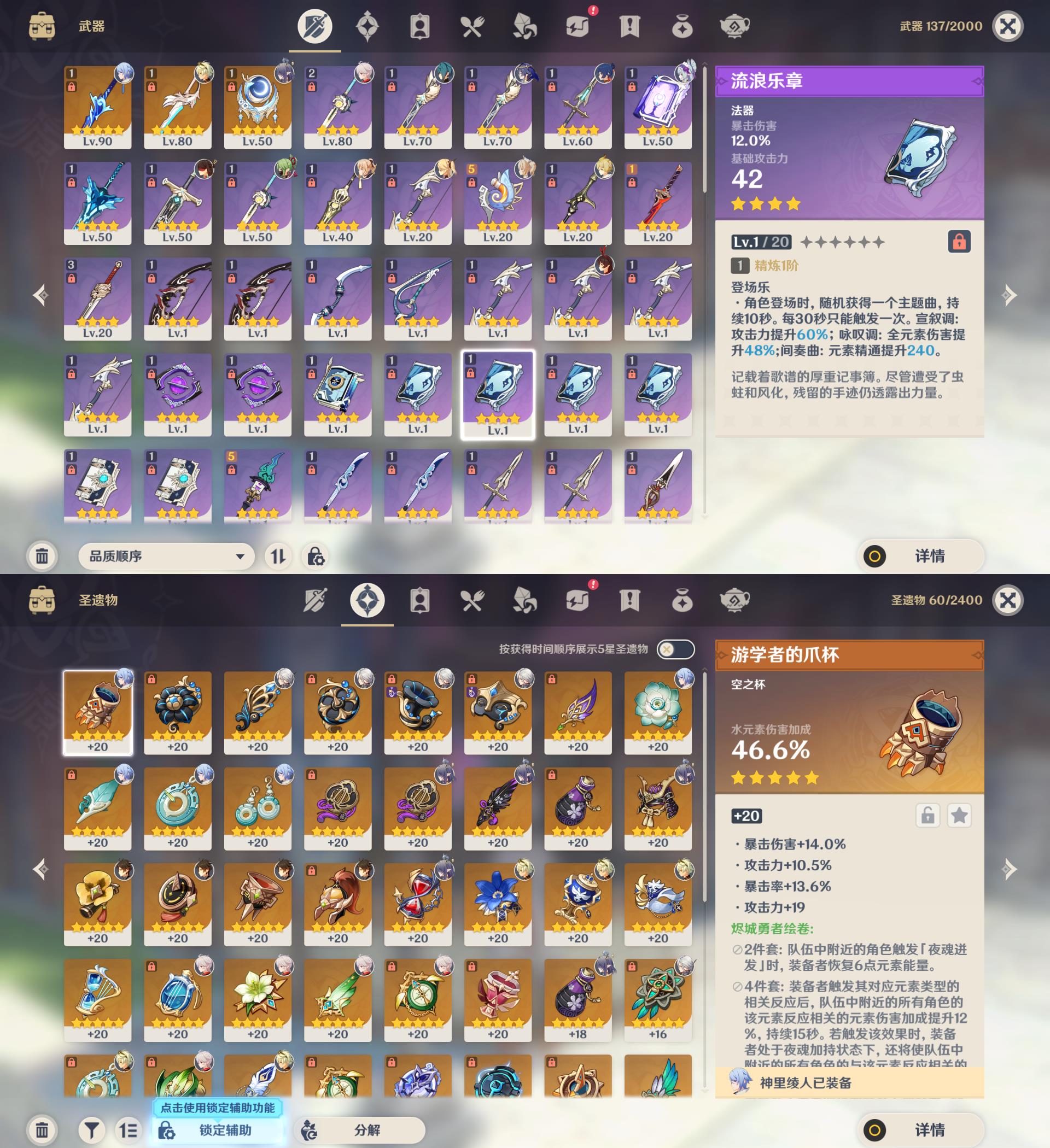 55级/16黄/女主/11个五星角色/3个五星武器/
