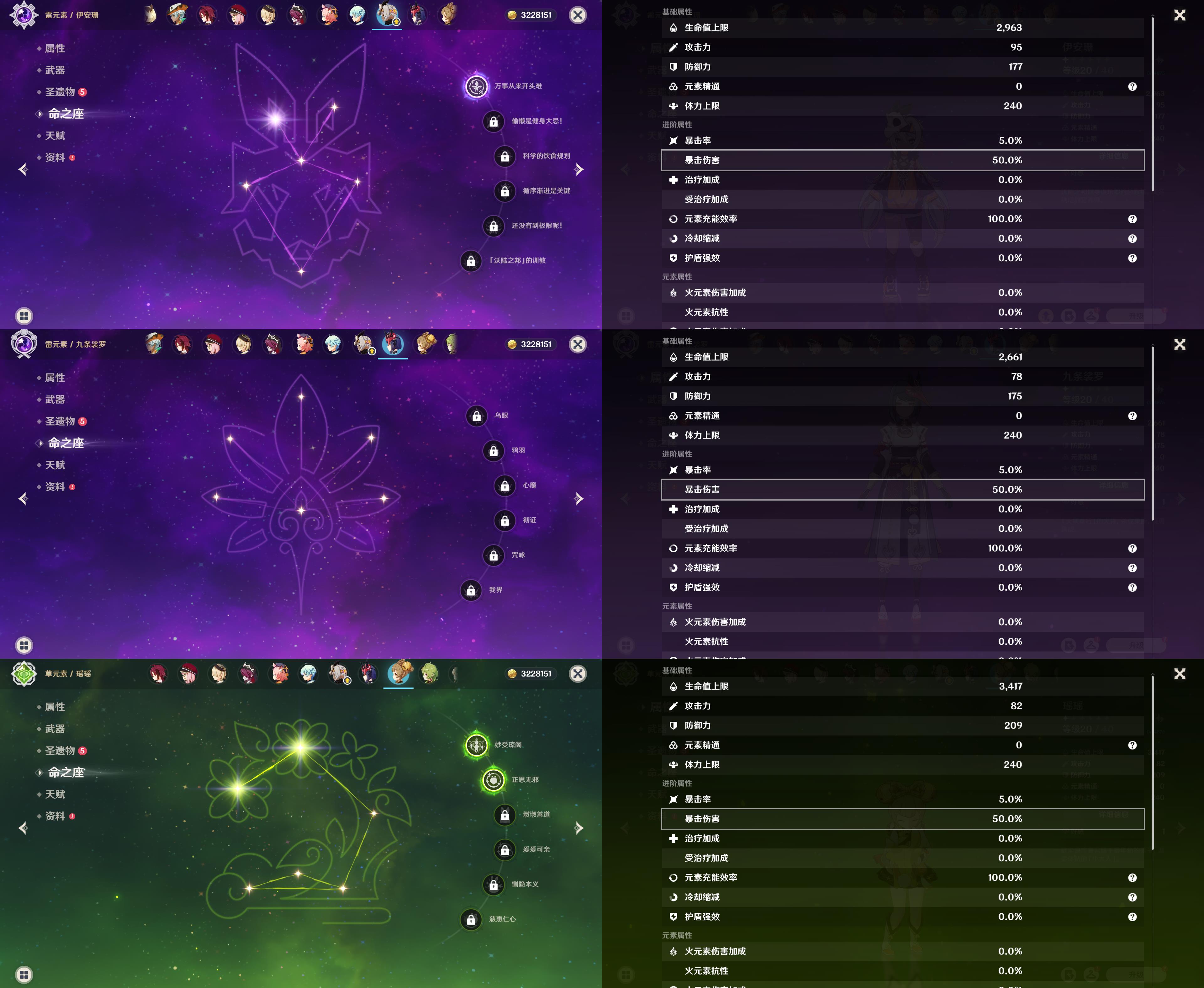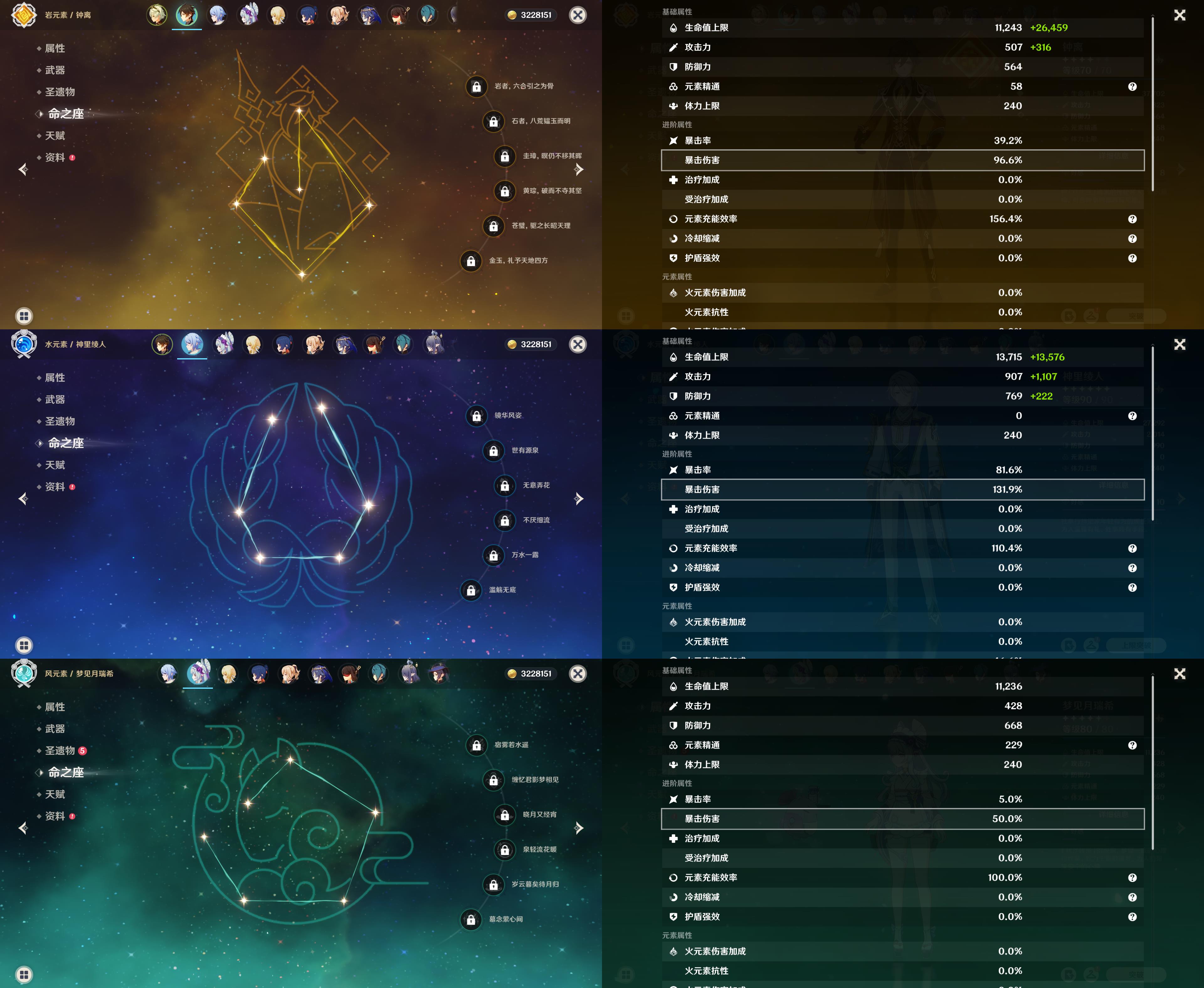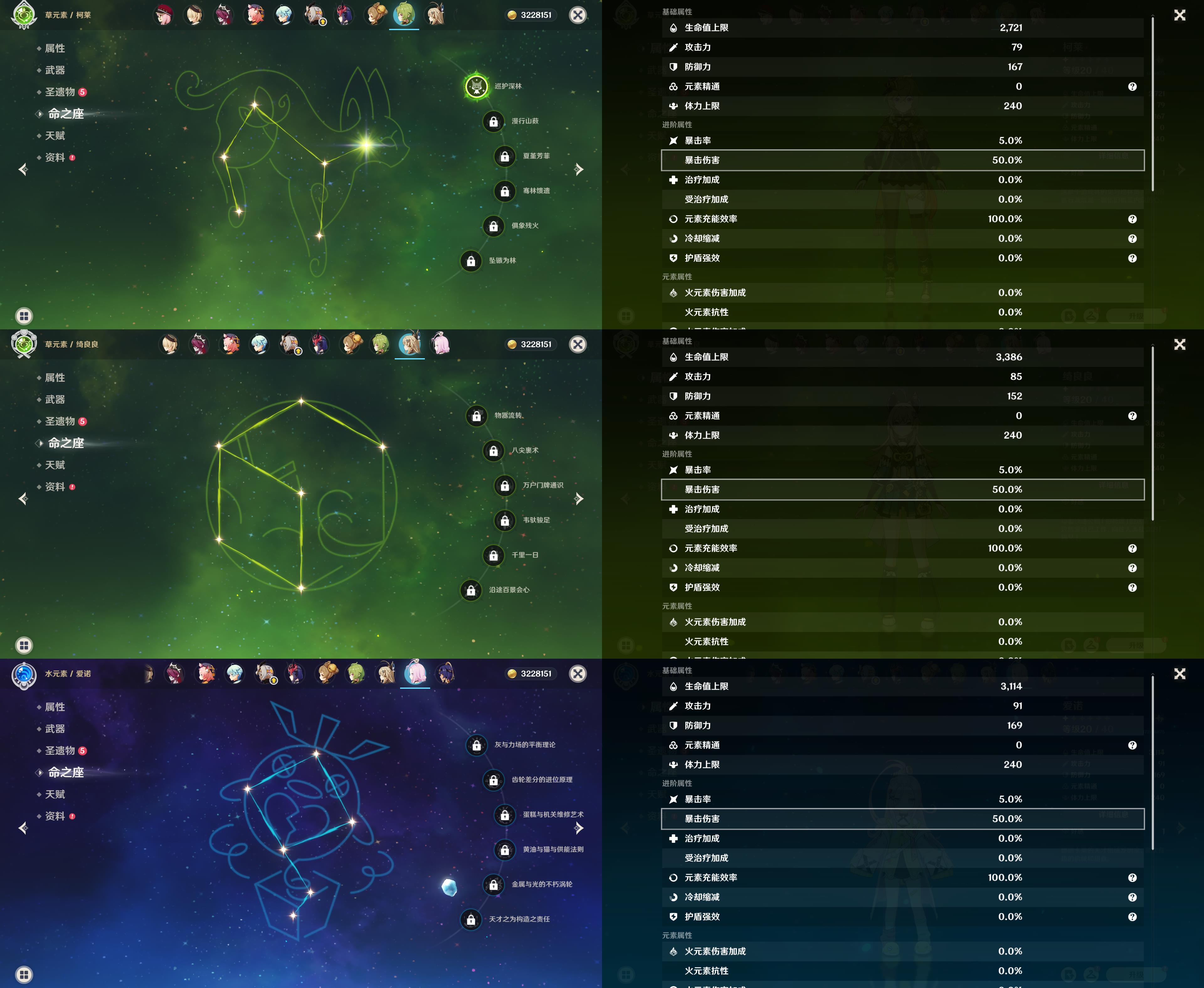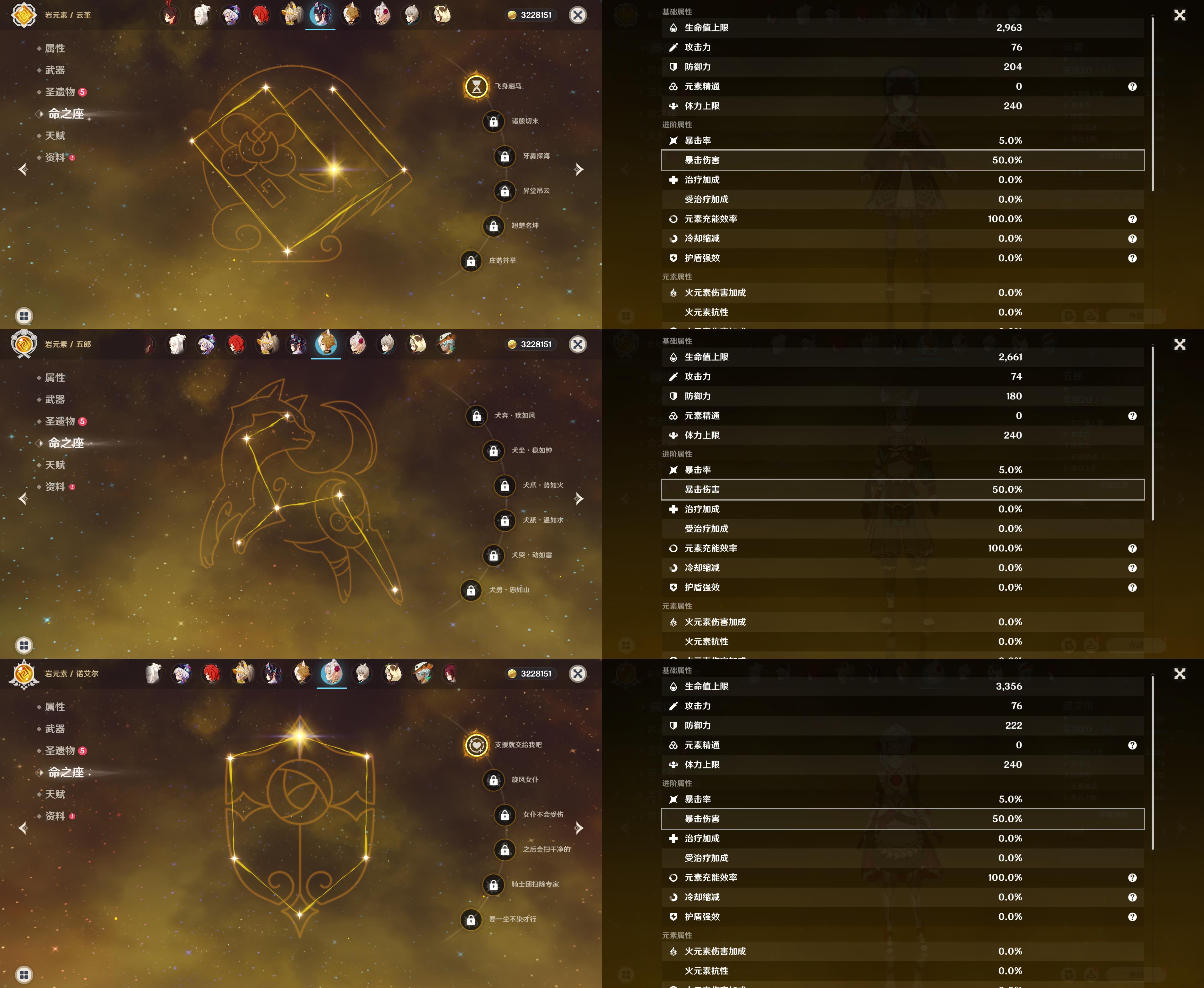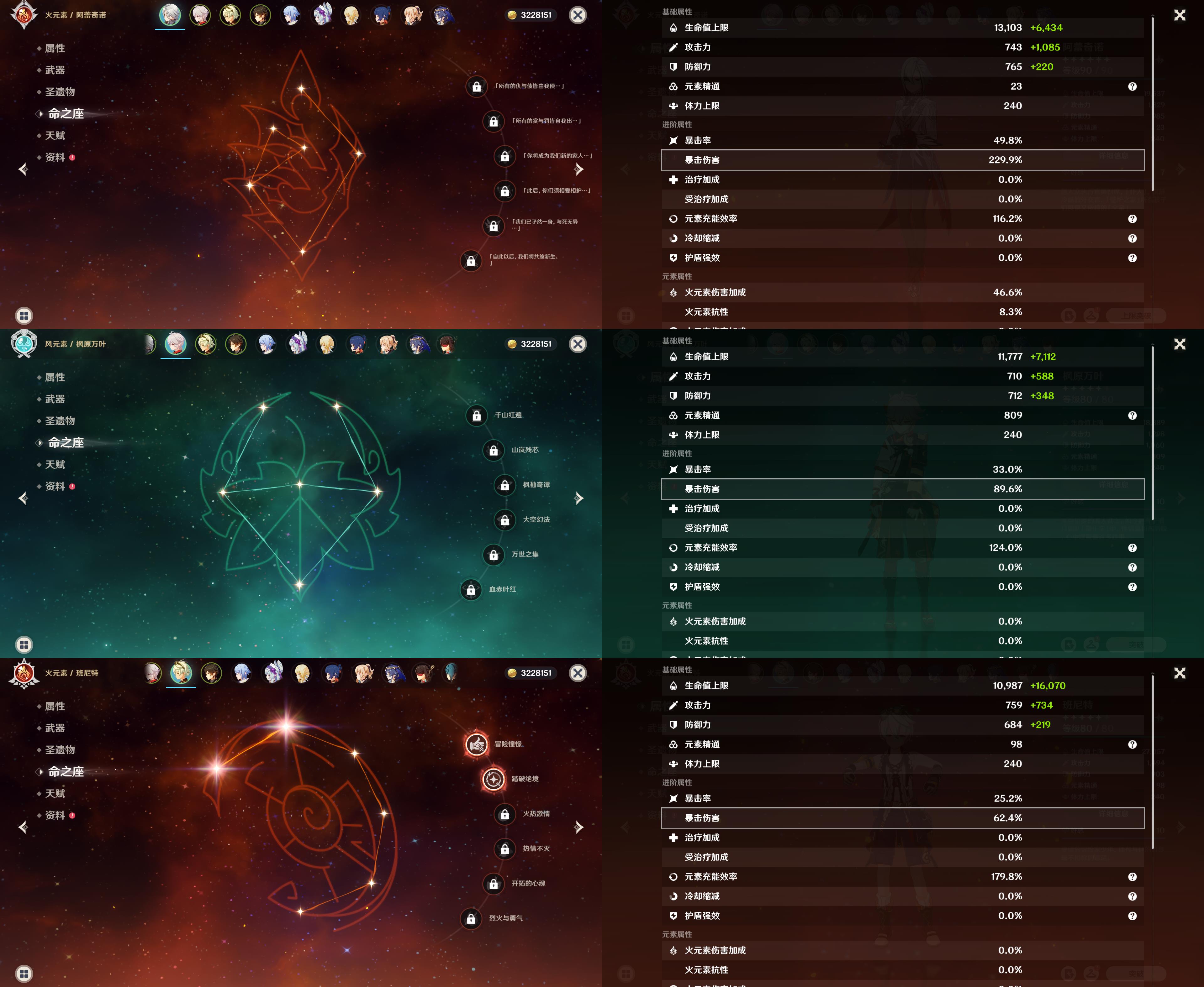55级/16黄/女主/11个五星角色/3个五星武器/