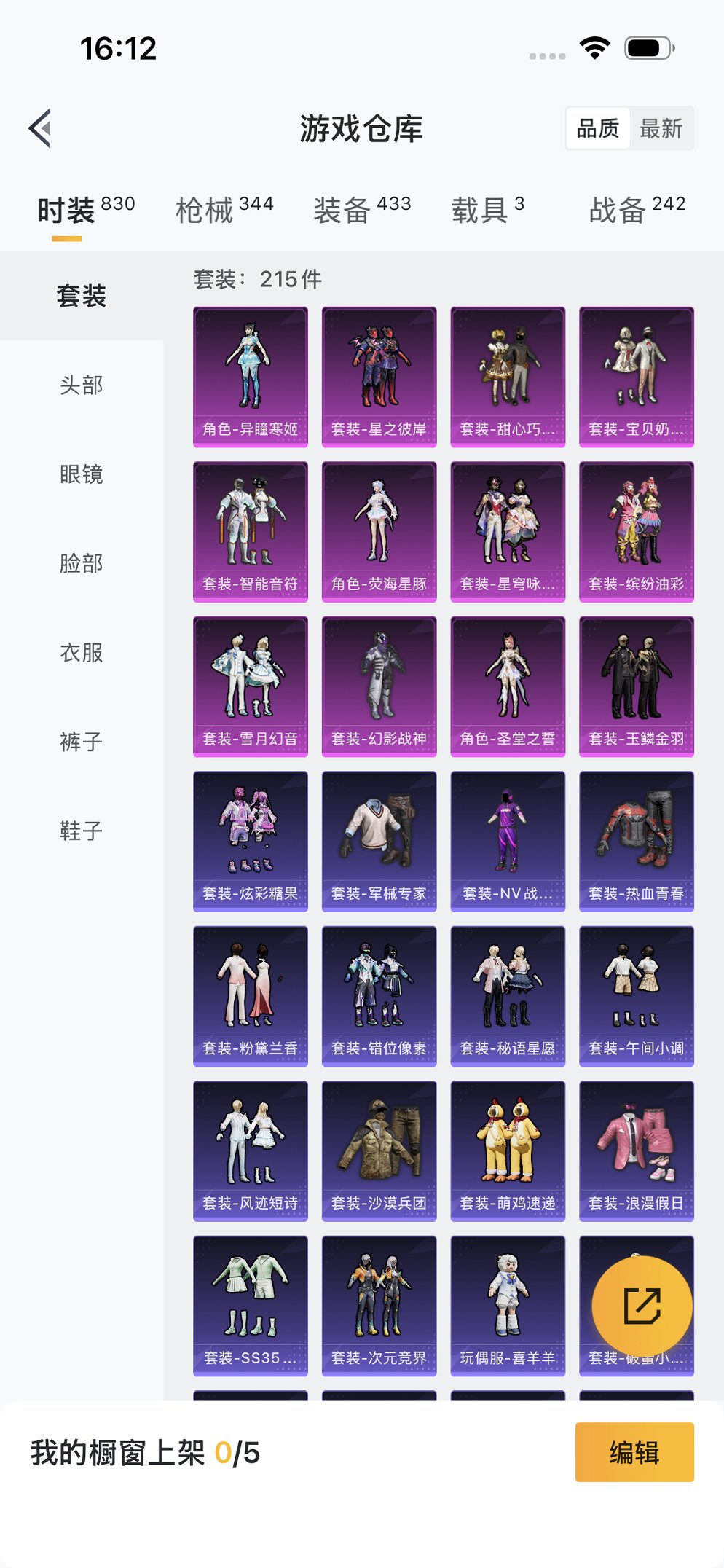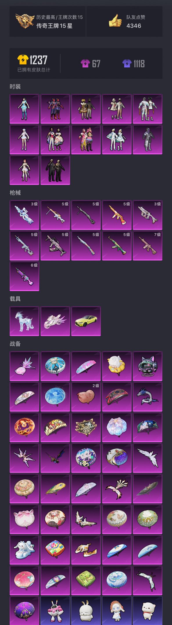 388-【巡查衣暗夜之虎都市男神12粉装11特效枪3载具1集结舱素材号、秒换绑不用等】、苹果Q区-105588热力值-15印记-215套装-344枪皮、【3载具】、最终圣卫者摩托车、宝马M4(圣保罗黄)、冰绡玉鳞【4稀有】、巡查衣、都市猎人、暗夜之虎、奇异狩猎者【12粉装】、宝贝奶油派、甜心巧克力、缤纷油彩(猪脸妹)、星之彼岸、圣堂之誓、玉鳞金羽、幻影战神、智能音符、雪月幻音、角色-异瞳寒姬、星穹咏叹调、角色-荧海星豚【11特效枪】、Vector-最终圣卫者(3级)、M416-心之恋语(7级)、