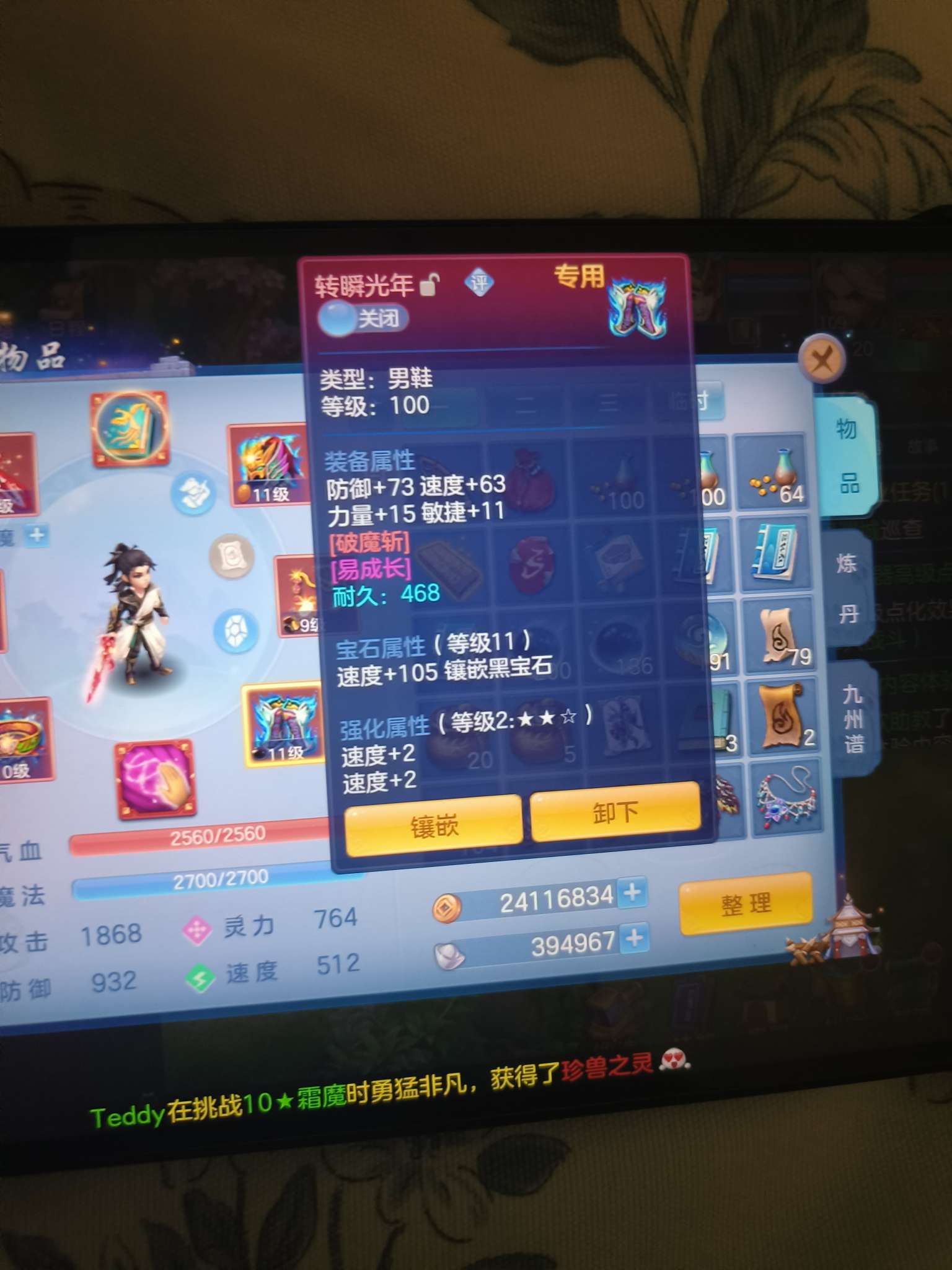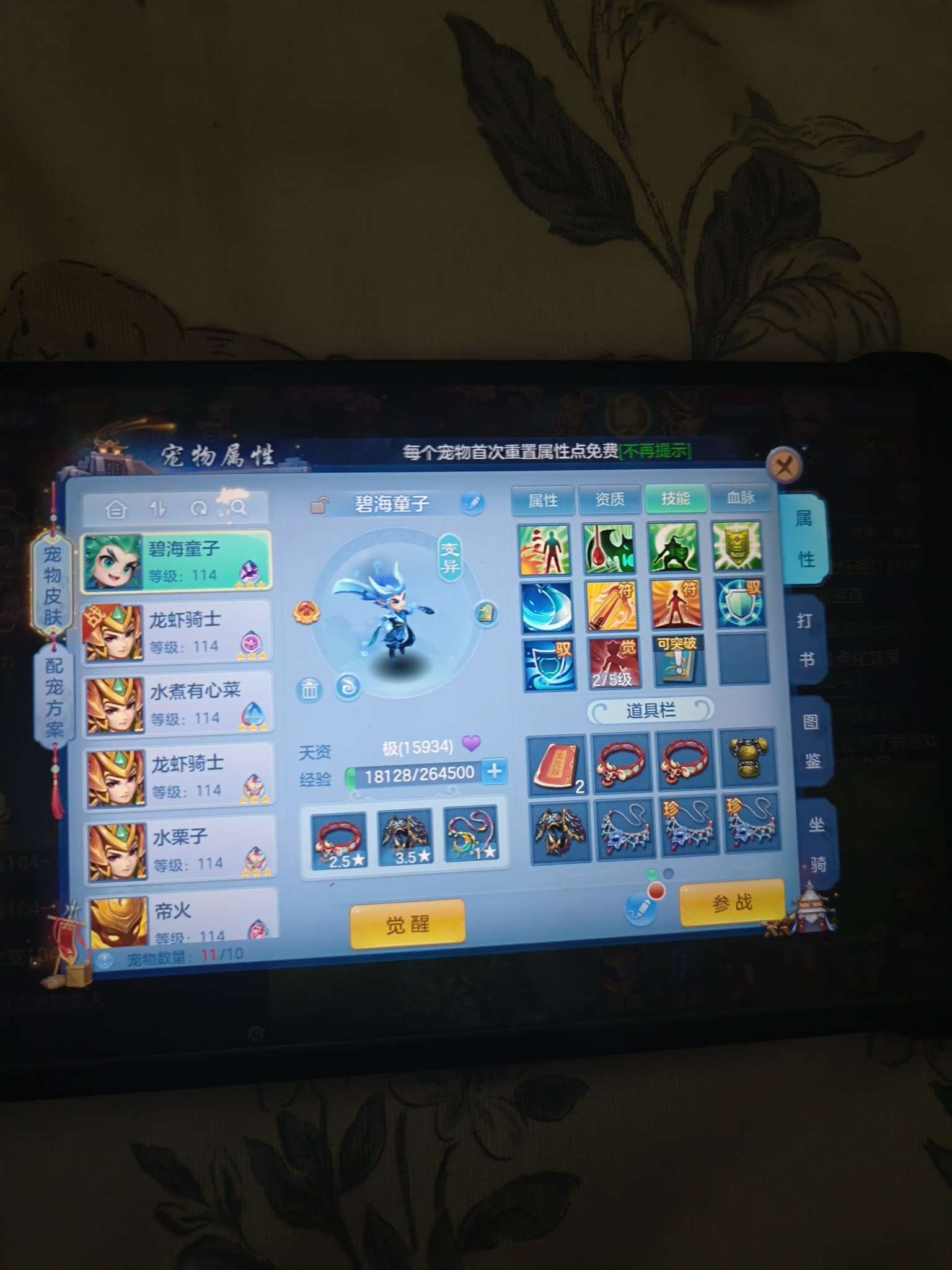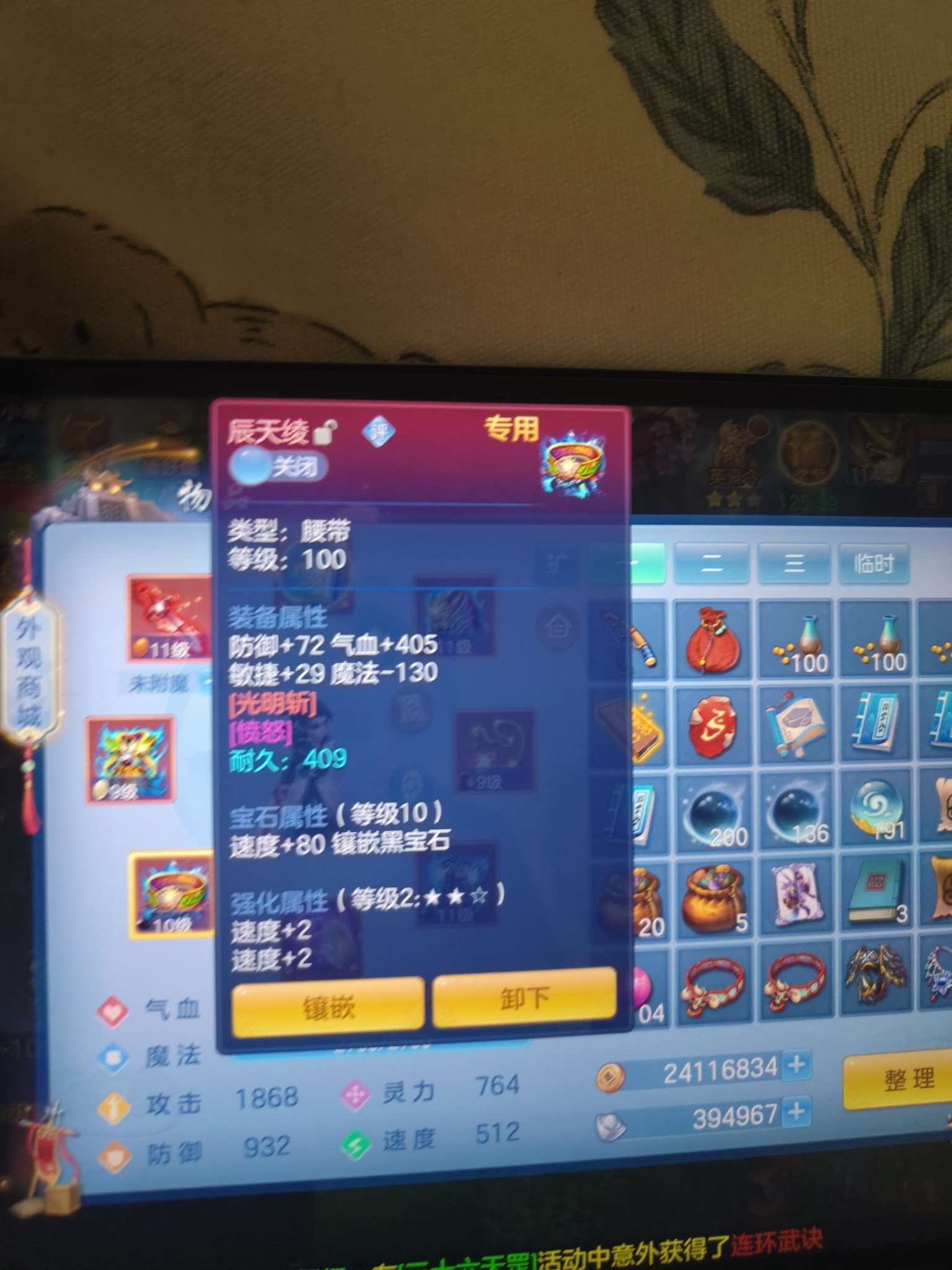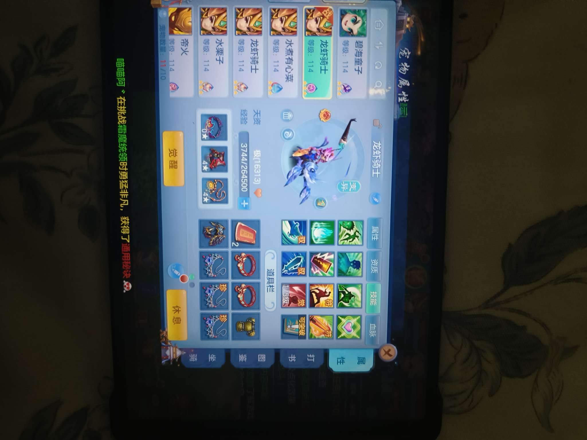 11段天策,7天换绑,满伤易必杀武器,宝宝勉强用,三染龙坐骑