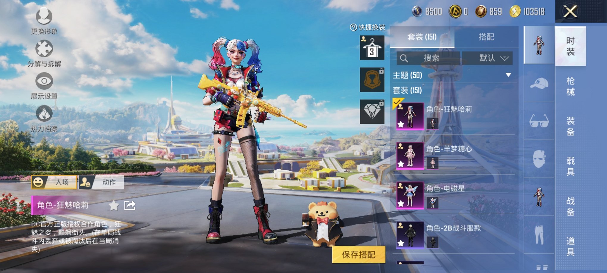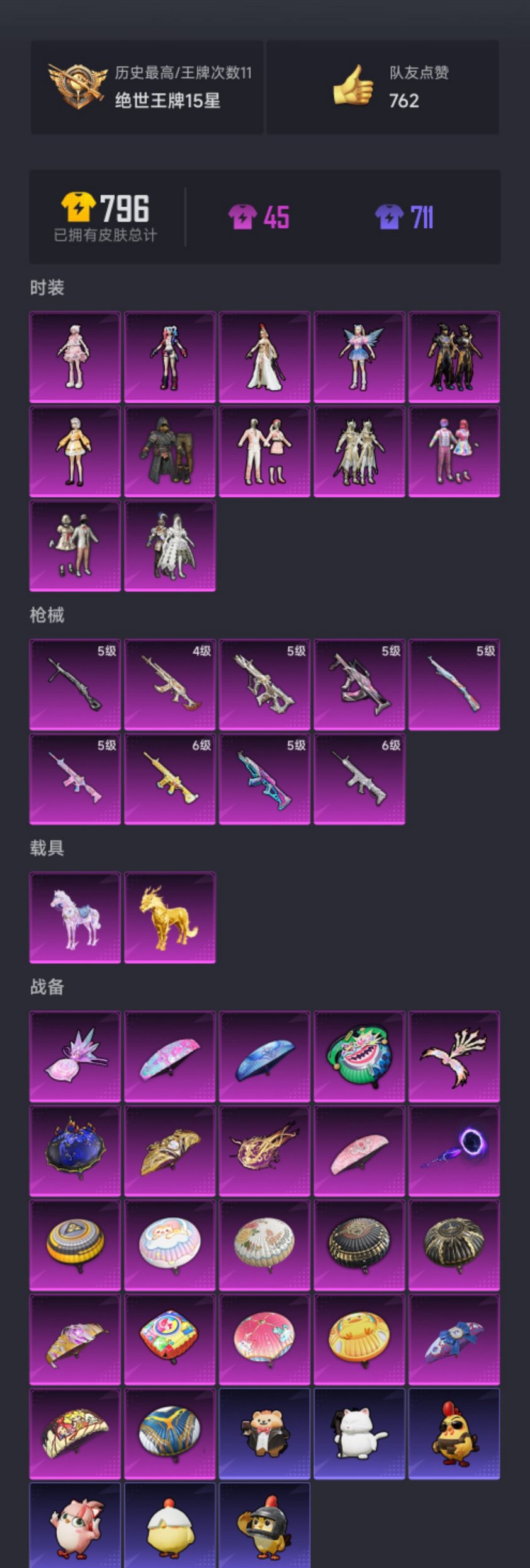 821-【小丑女12粉装9特效枪2载具、秒换绑不用等】、安卓Q区-70645热力值-11印记-151套装-224枪皮、【2载具】、护世瑞兽、晶梦灵驹【2稀有】、Mark.06蓝螳螂、8号机粉螳螂【12粉装】、狂魅哈莉(小丑女)、宝贝奶油派、天使彩虹糖、冰霜白皇、射星猎手、第五大道、呆萌星弥、极限特训、角色-电磁星、角色-萨利娅、角色-羊梦糖心、鎏金朋克【9特效枪】、M416-暖熊萌萌(6级)、AKM-梦之光华(5级)、SCAR-L-纯梦嫁纱(6级)、AUG-许七安(5级)、Kar98K-巳巳如意
