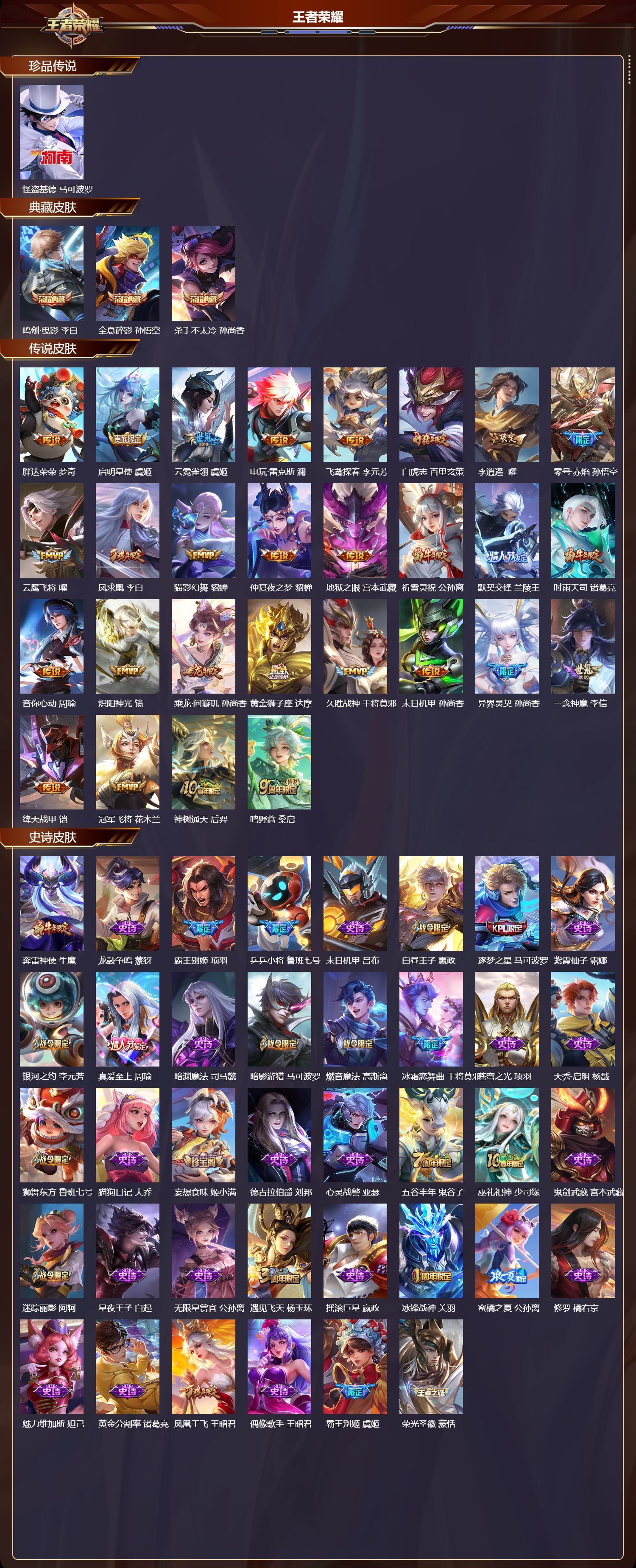 珍品传说皮肤:
