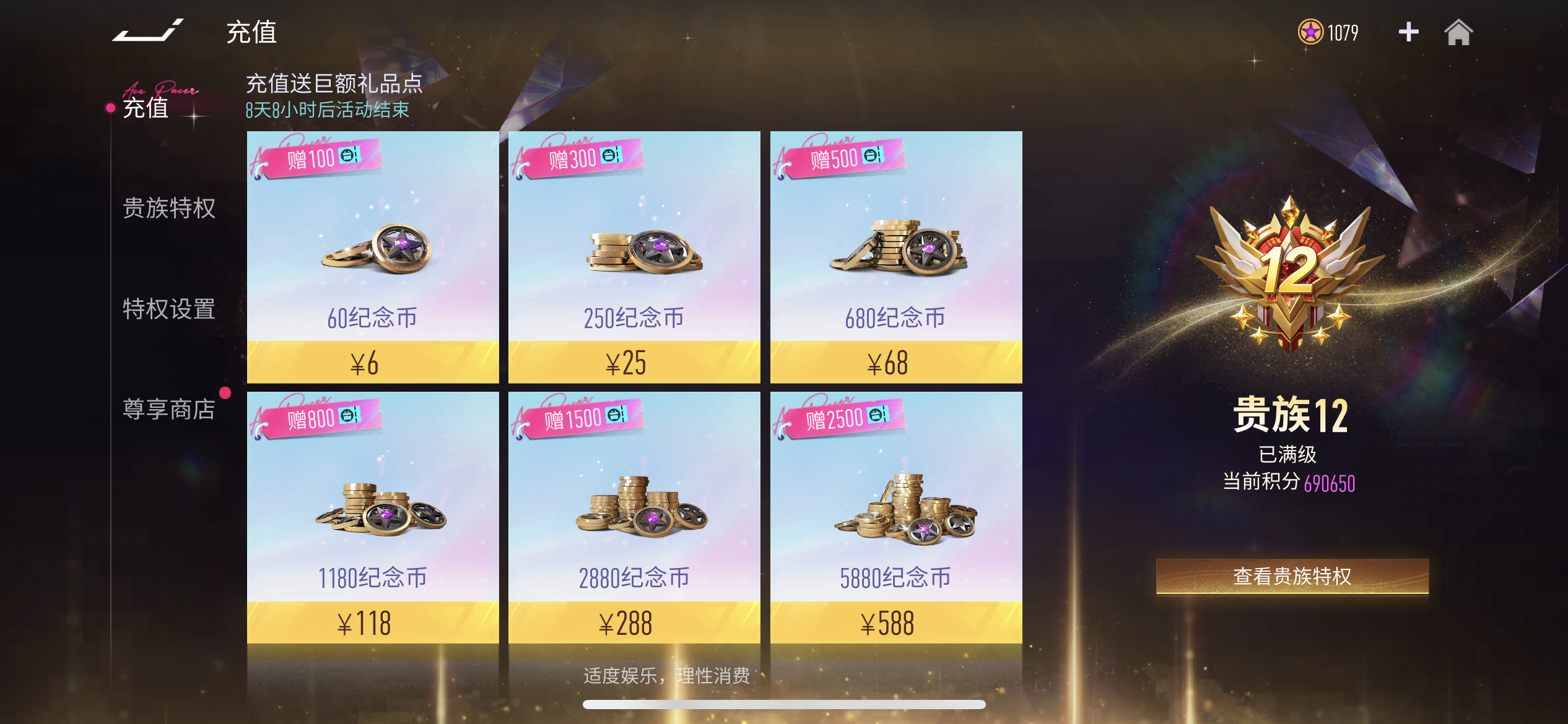 速度卖号,充值70000元会员12级