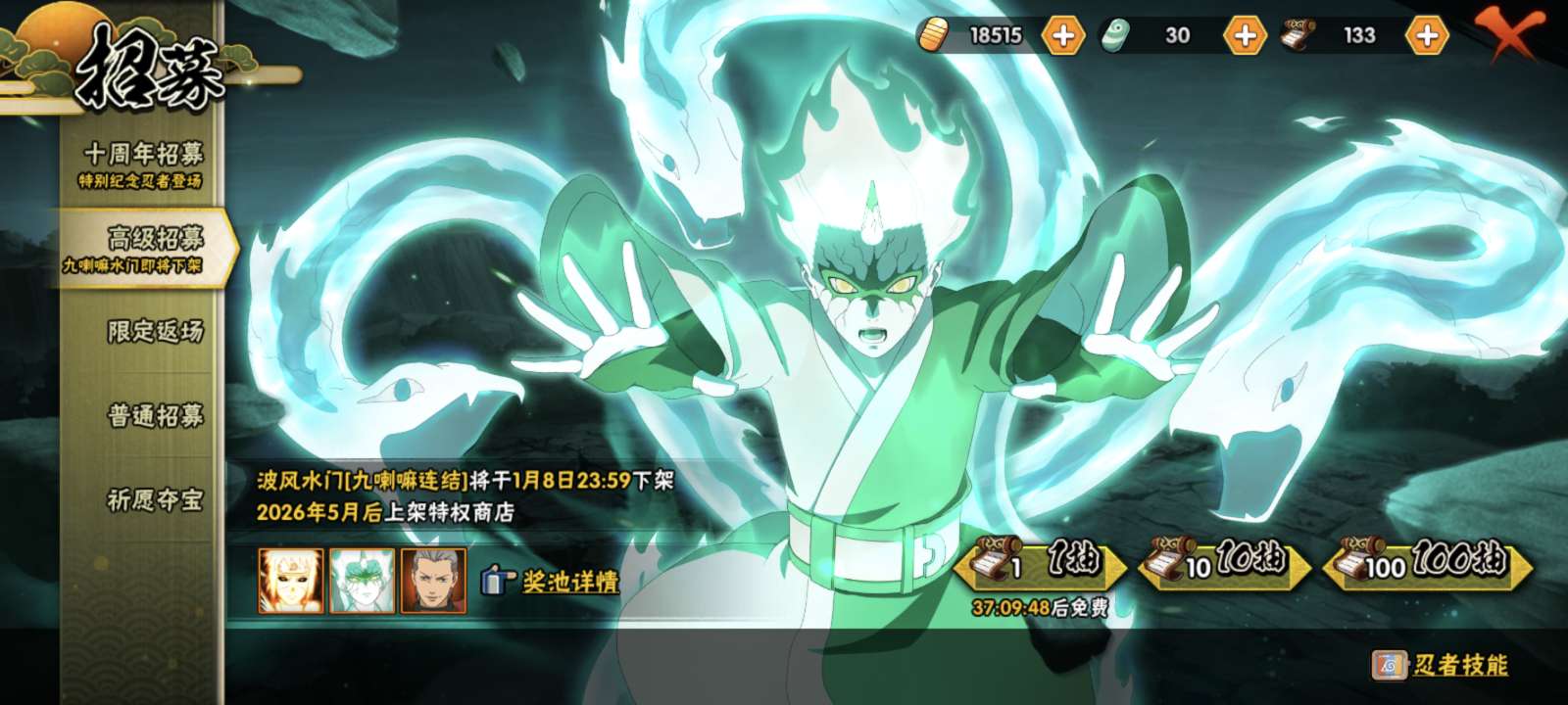 有两百多抽可以直接抽十尾带土,巳月首付交了,还有两千限时点券