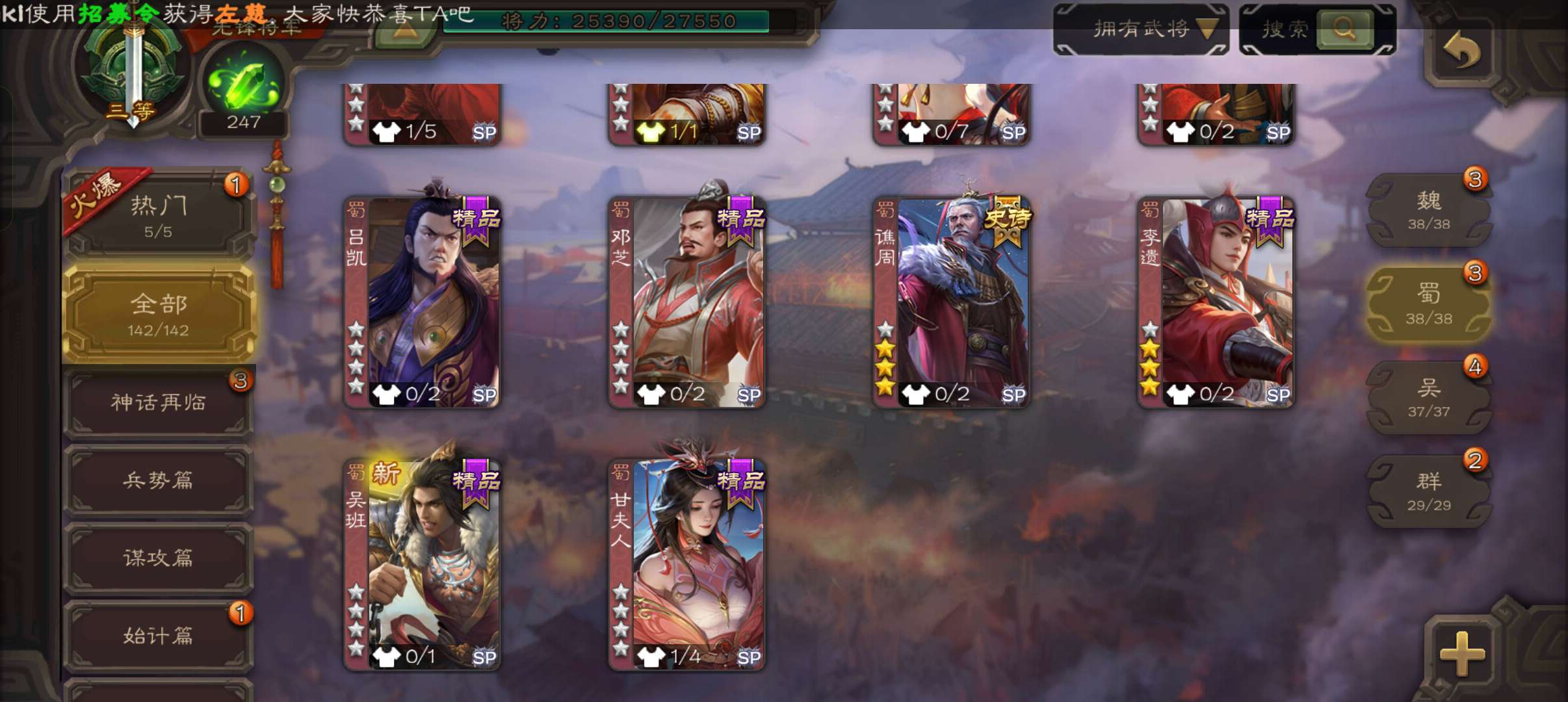5.4万豆,大宝界徐盛回廊动态王元姬谯周马云騄4史诗,天工李遗,谋卢植谋小乔桥公势陈到142将