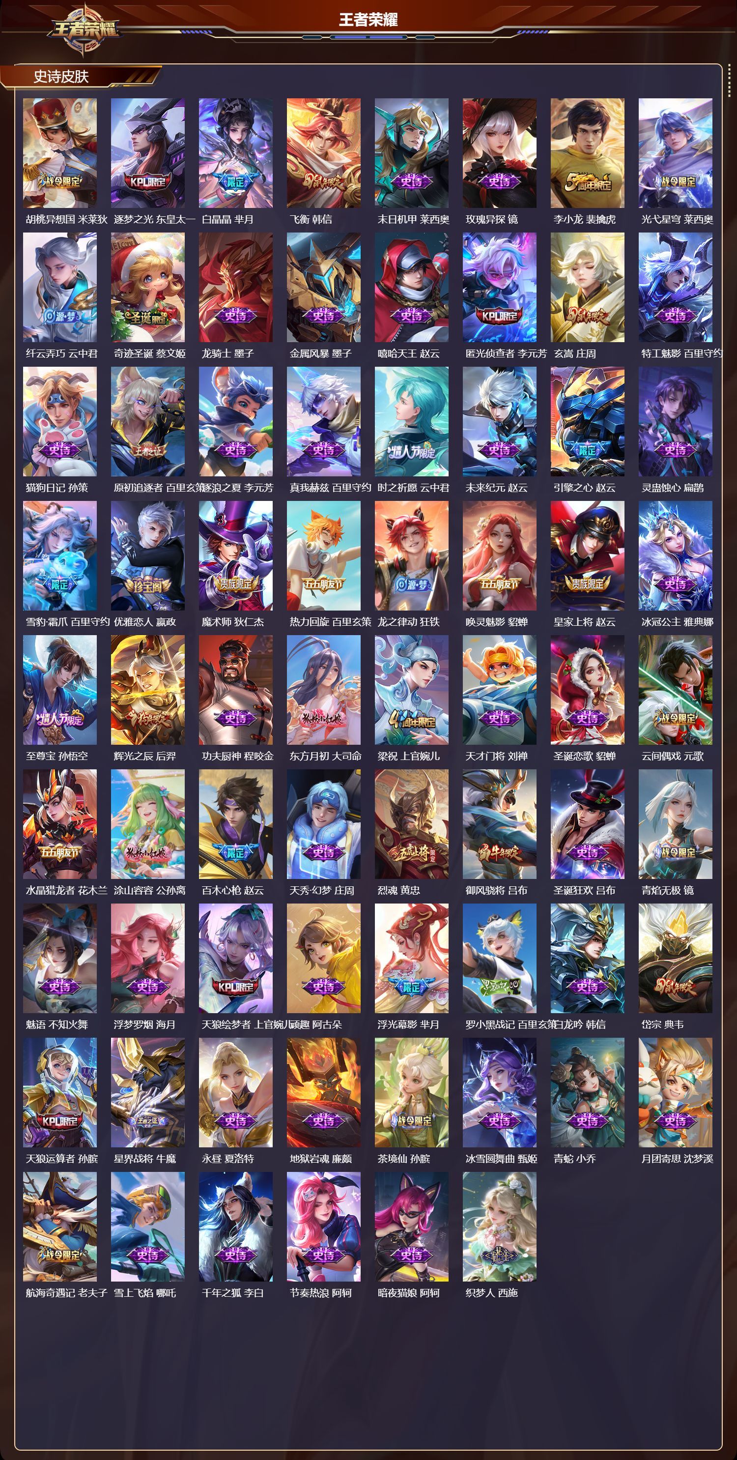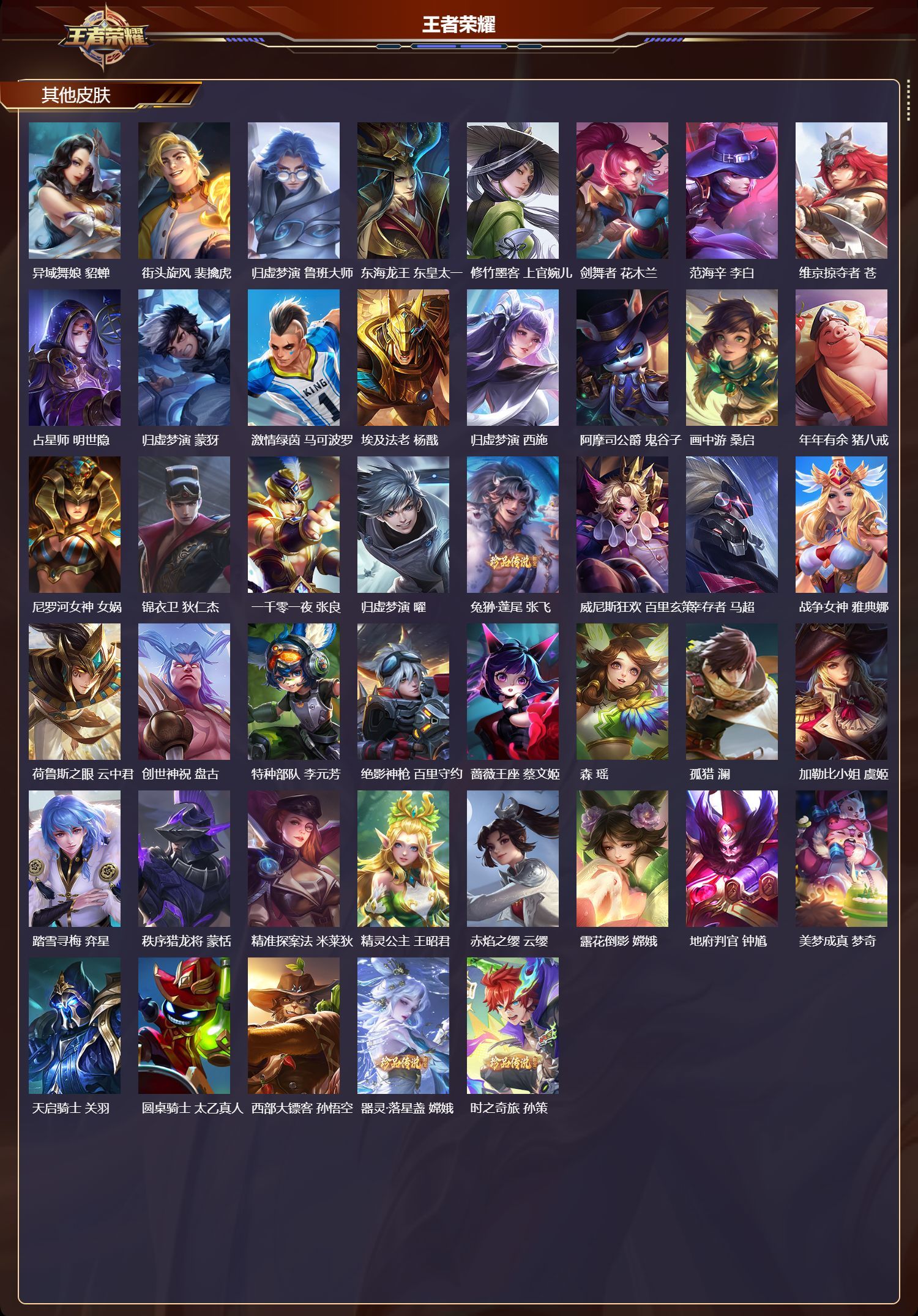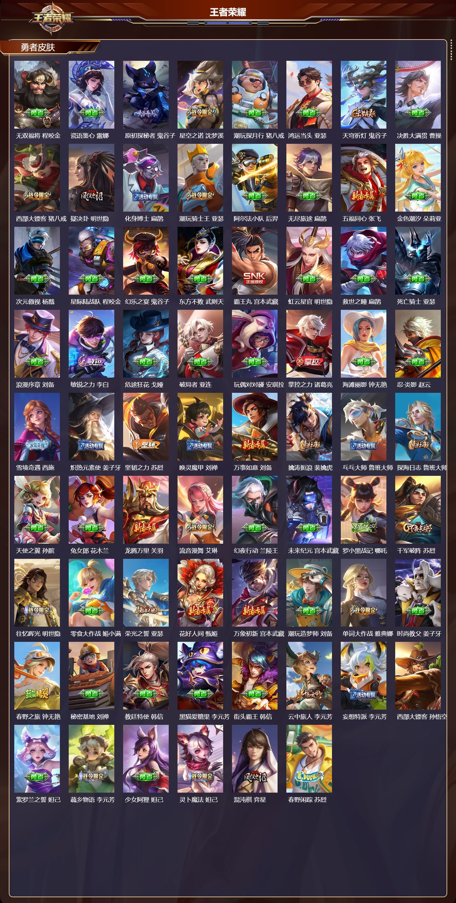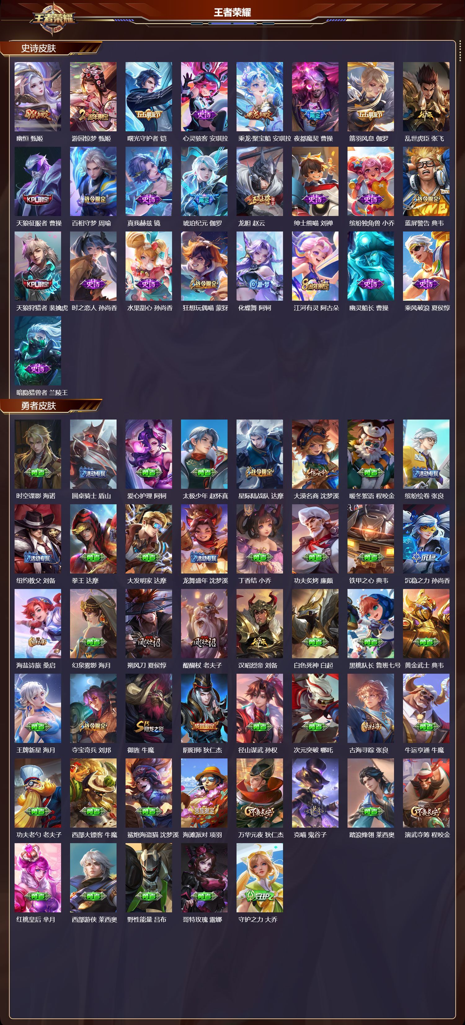 安卓QQ/荣耀王者/461皮肤/127英雄/4典藏/0珍品无双/4无双/3珍品传说/70传说/154
