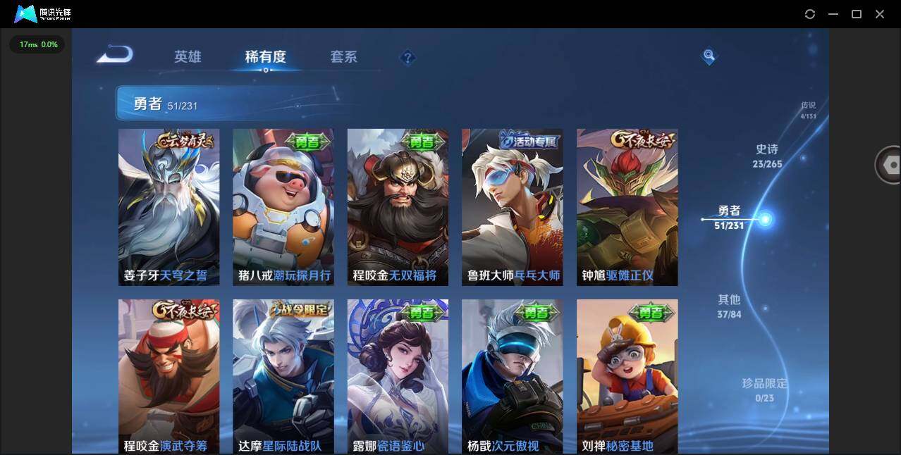 实名: 可修改 贵族等级: V7 英雄数: 113 皮肤数: 115 传说皮:
