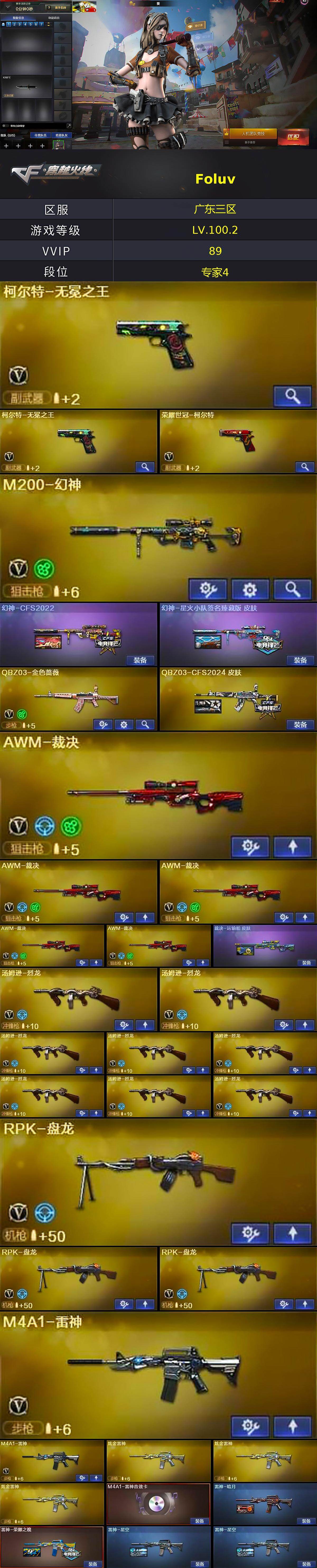 【热门武器】:QBZ03-金色蔷薇,HK417-朱雀,M200-幻神,荣耀世冠-柯尔特,M4A1-黑骑士*5,汤姆逊-烈龙*8,RPK-盘龙*3,加特林-炼狱,斯泰尔-蝴蝶,降世魔童,COP 357-雷霆王者,沙鹰-修罗*6,荣耀世冠-龙啸