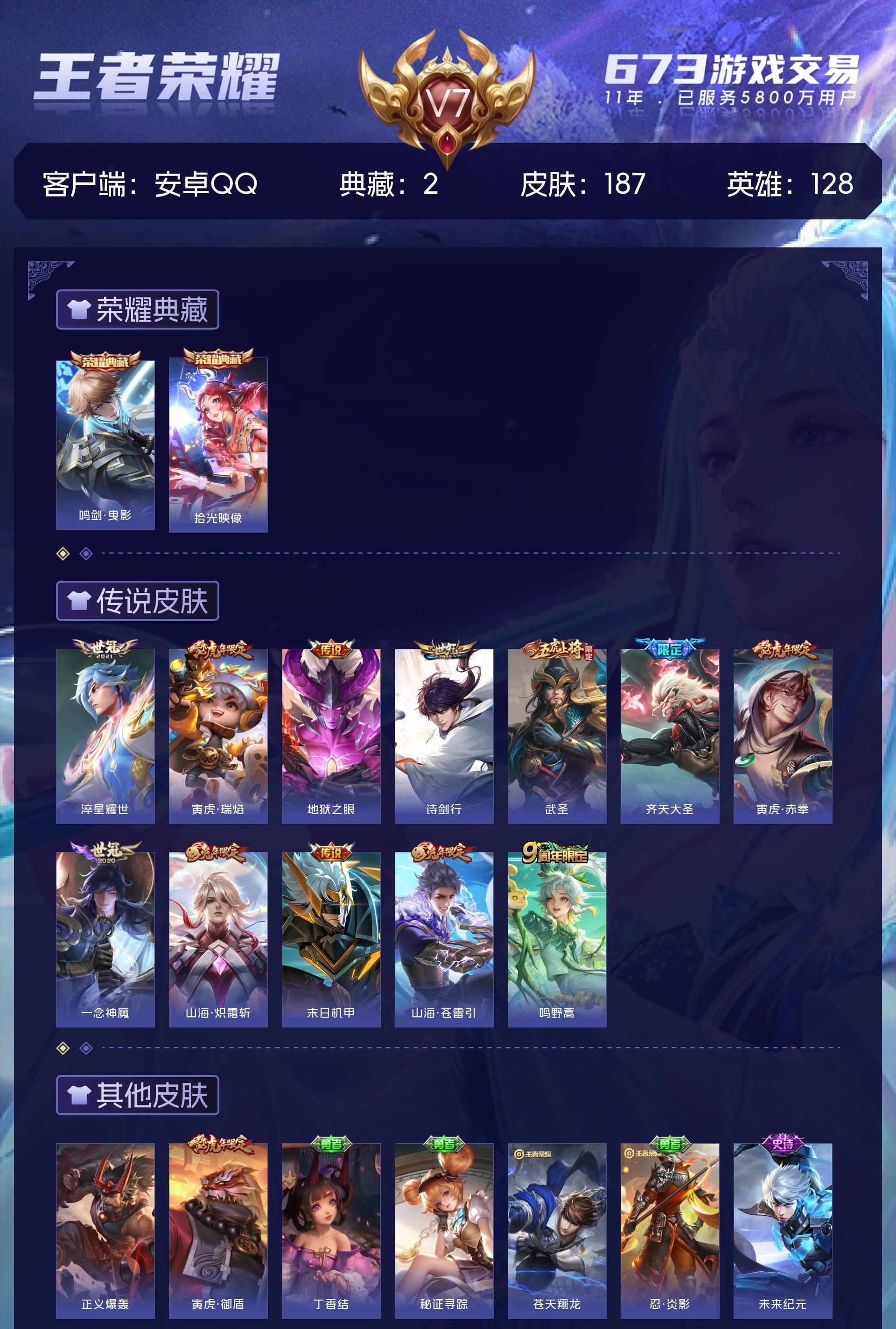 V7 皮肤187 英雄128 永恒钻石 荣耀典藏2 星传说1 传说12 其他皮肤180