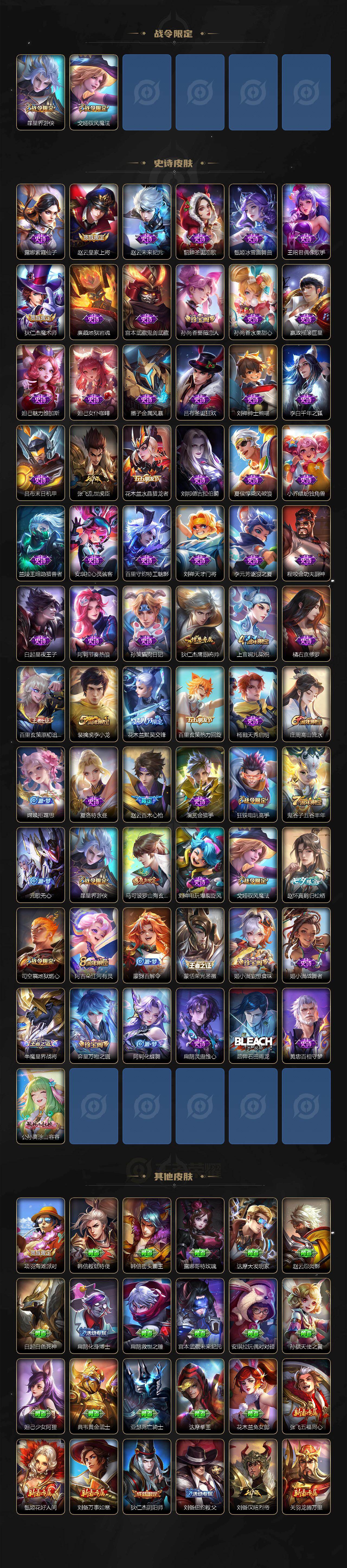 【英雄全皮】:李信全皮,戈娅全皮,影全皮