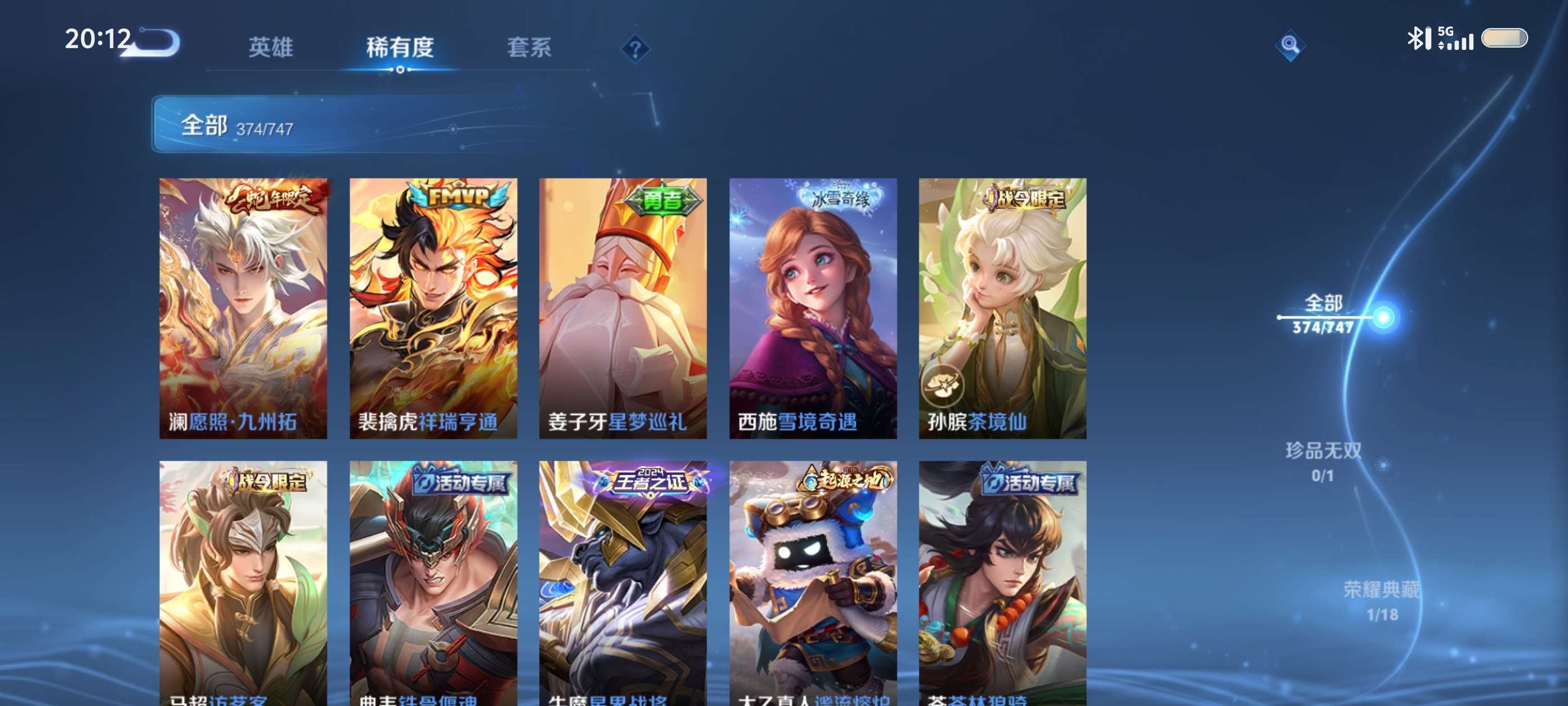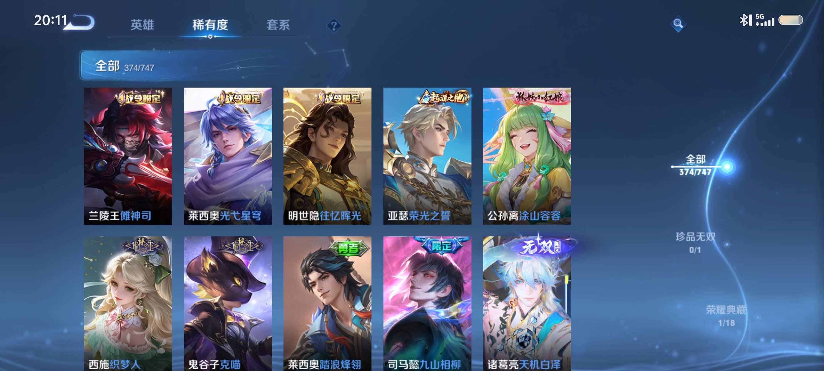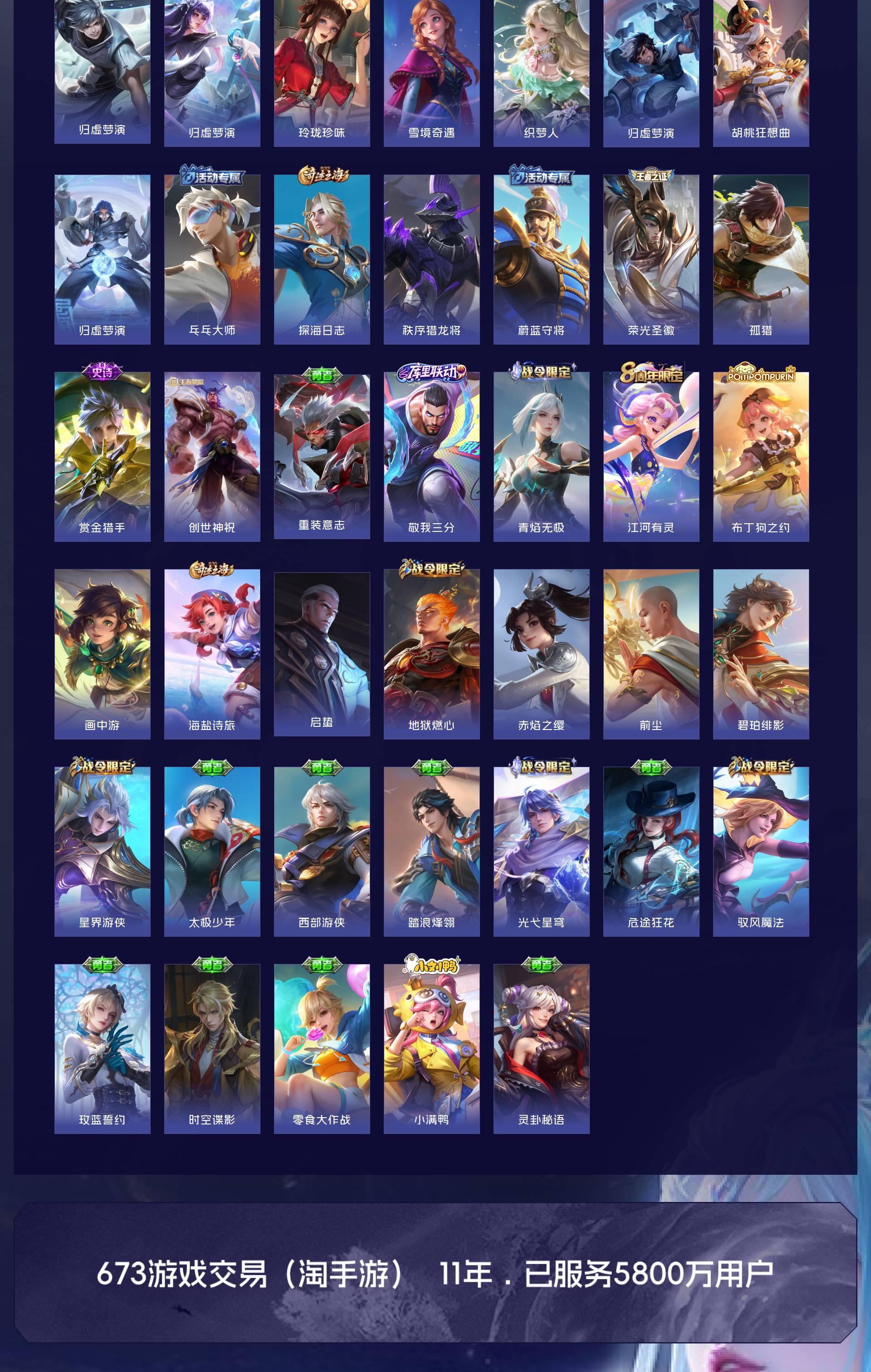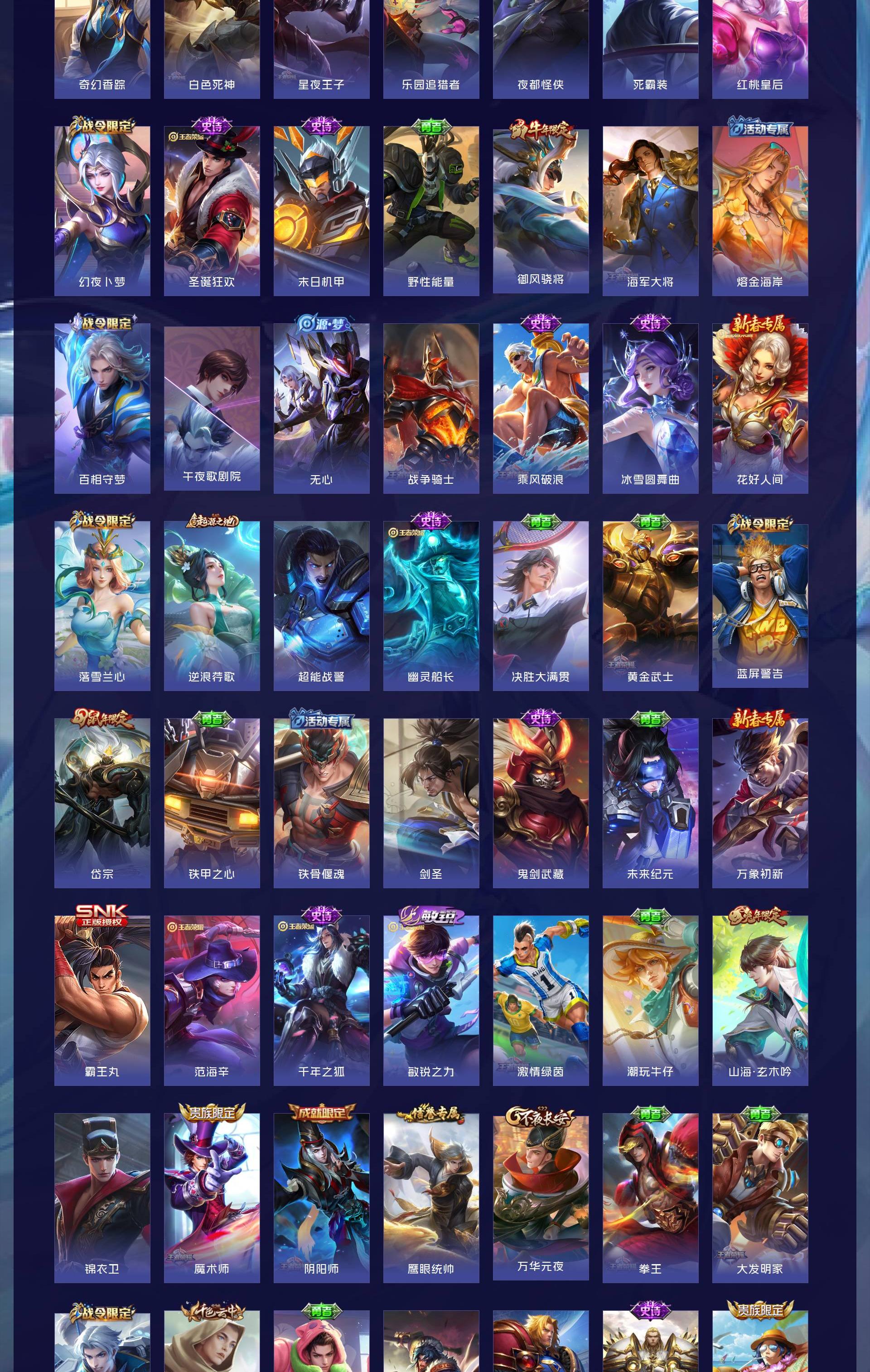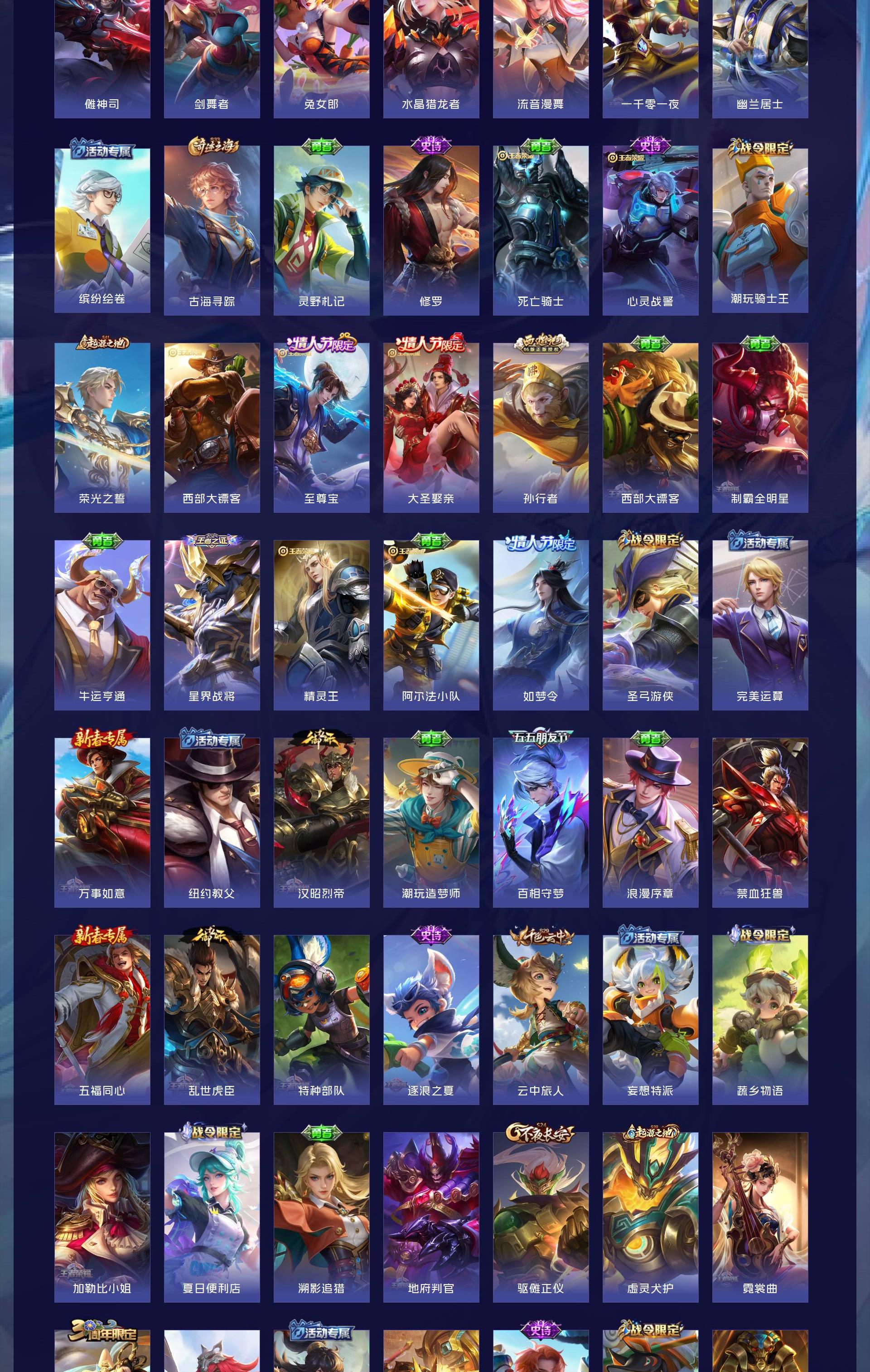 V9 皮肤377 英雄128 至圣王者 荣耀典藏1 无双皮肤3 珍品传说2 星传说3 传说36 其他皮肤341