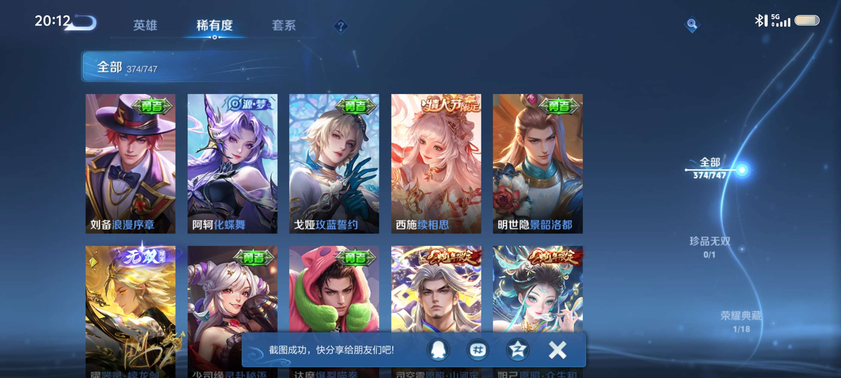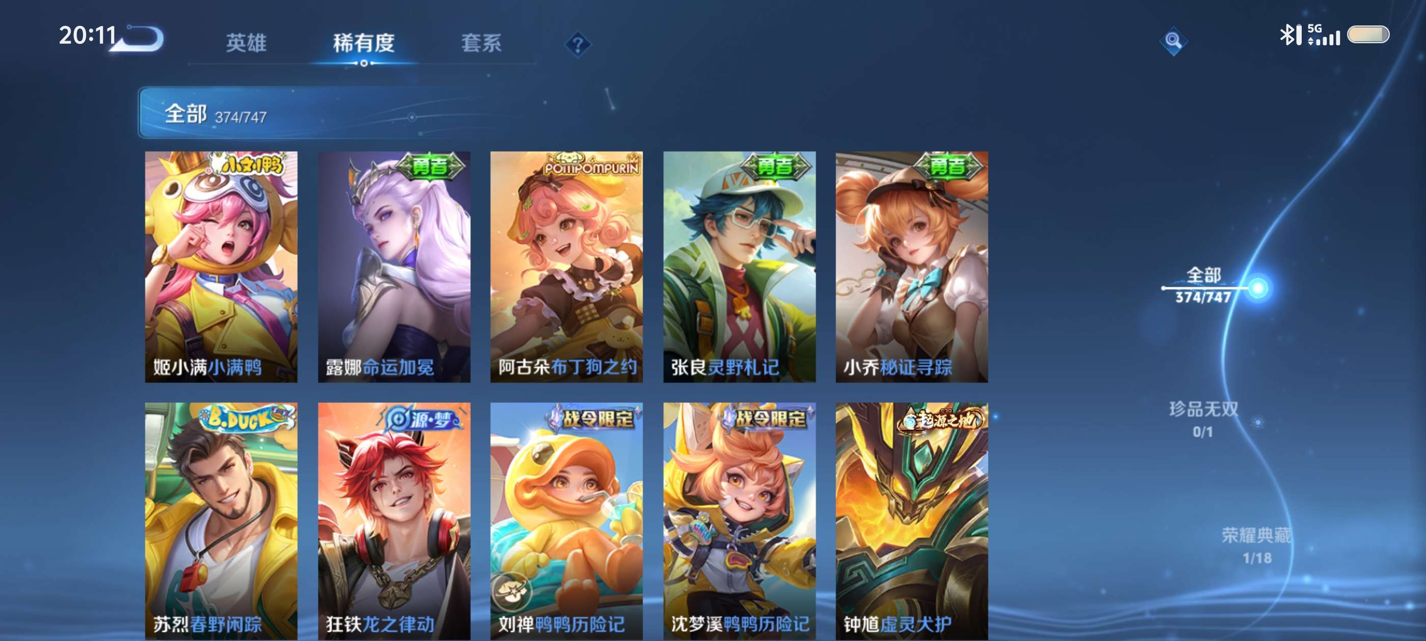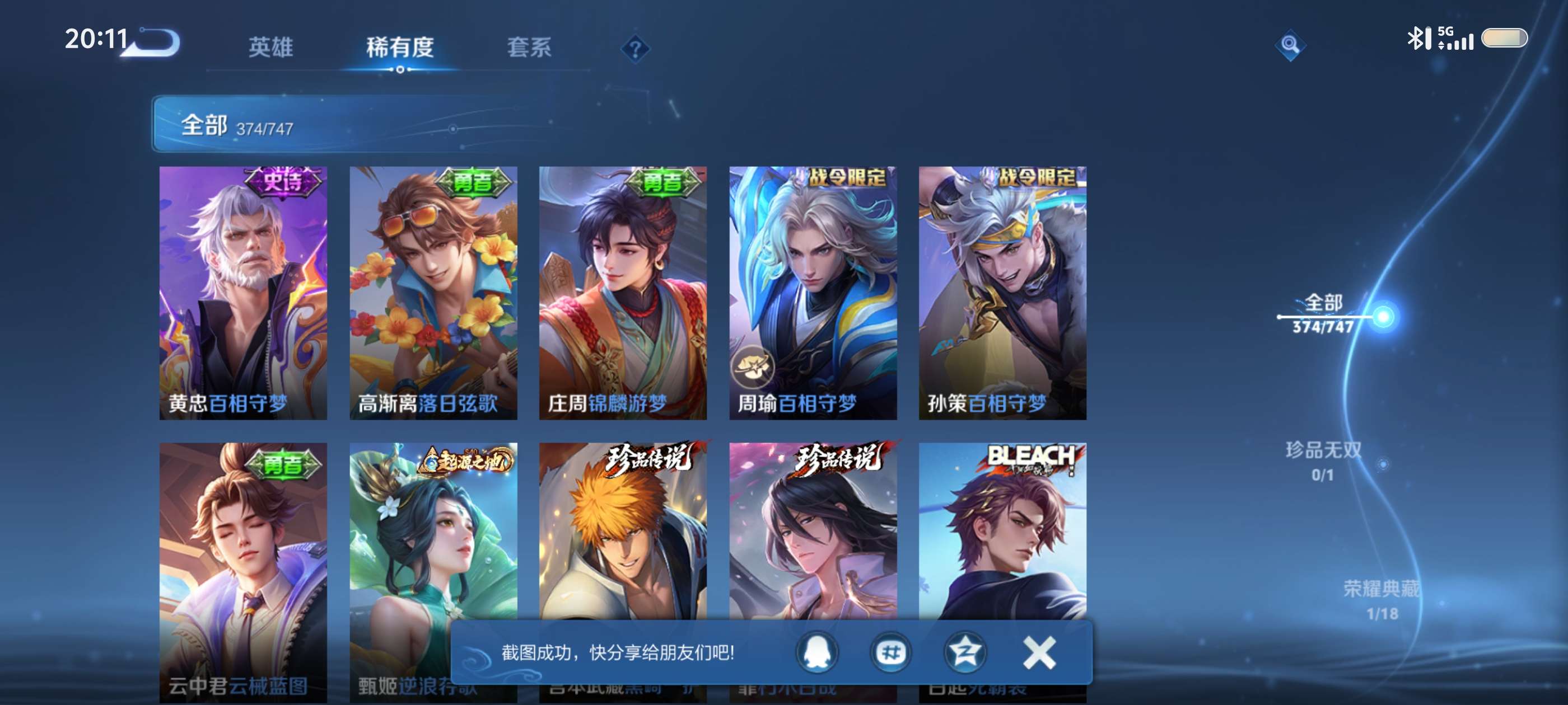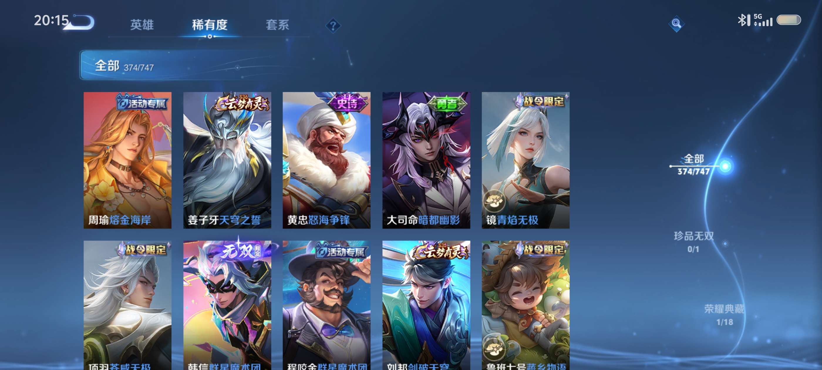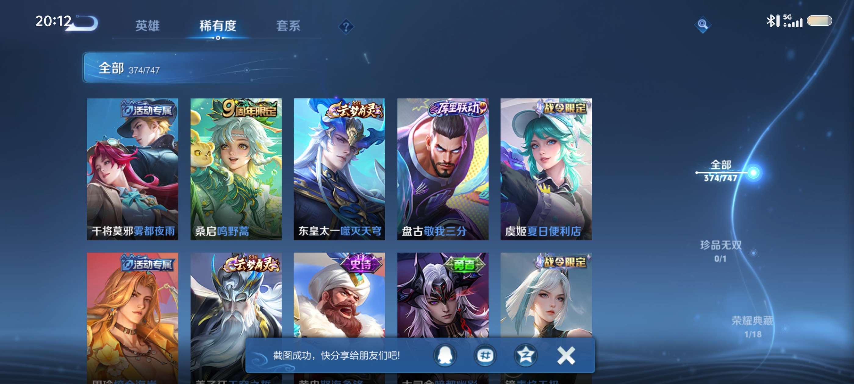V9 皮肤377 英雄128 至圣王者 荣耀典藏1 无双皮肤3 珍品传说2 星传说3 传说36 其他皮肤341