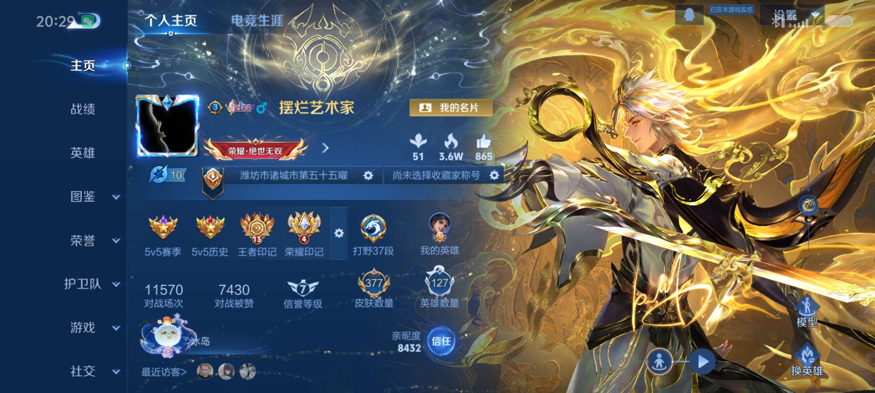 安卓Q-V9-最强王者段位-126英雄-377皮肤-1典藏皮肤-3无双-2珍品传说-36传说-