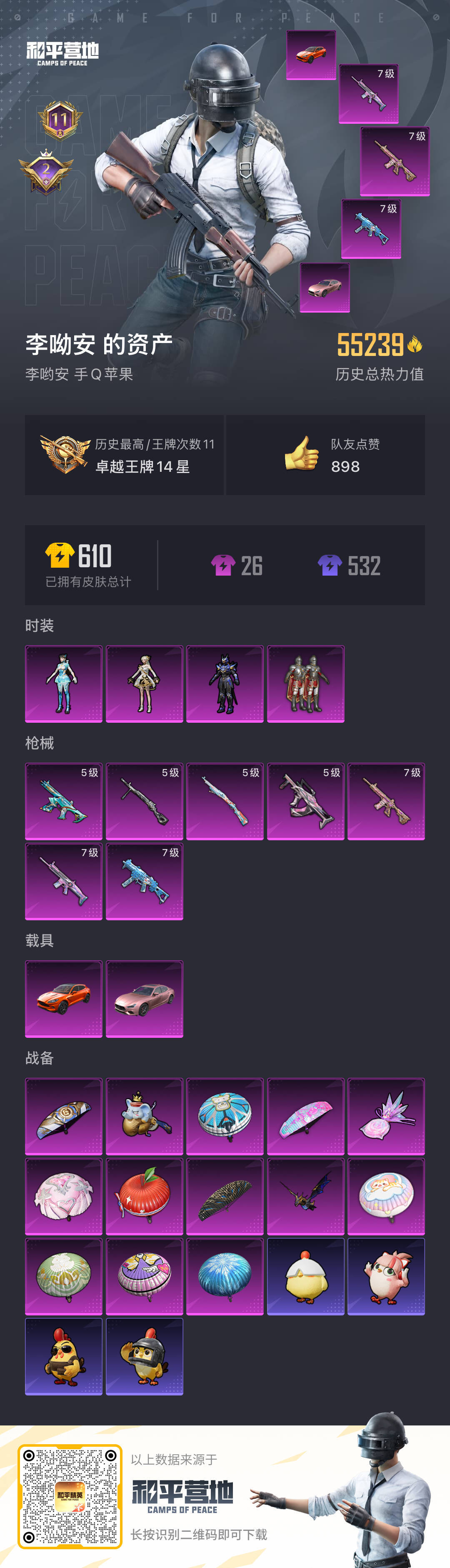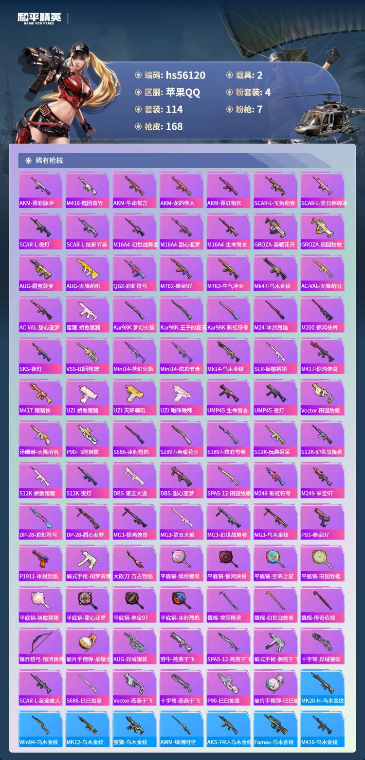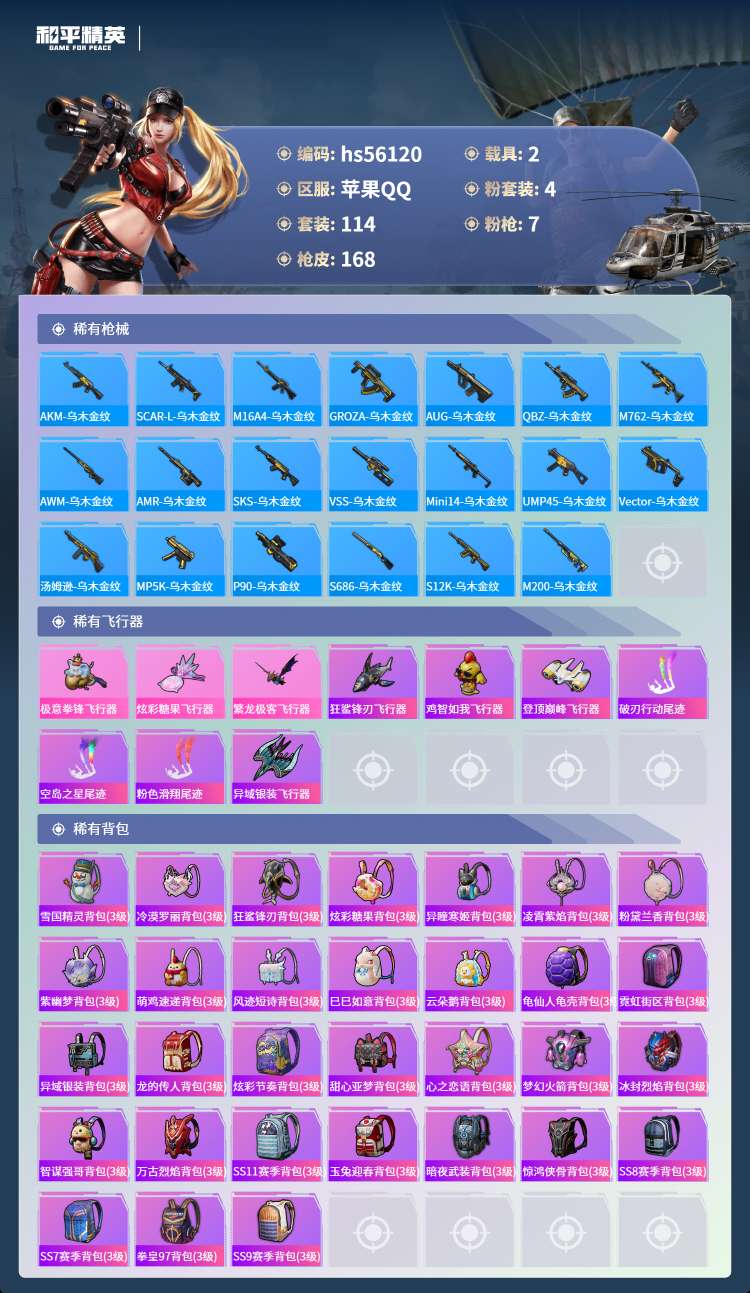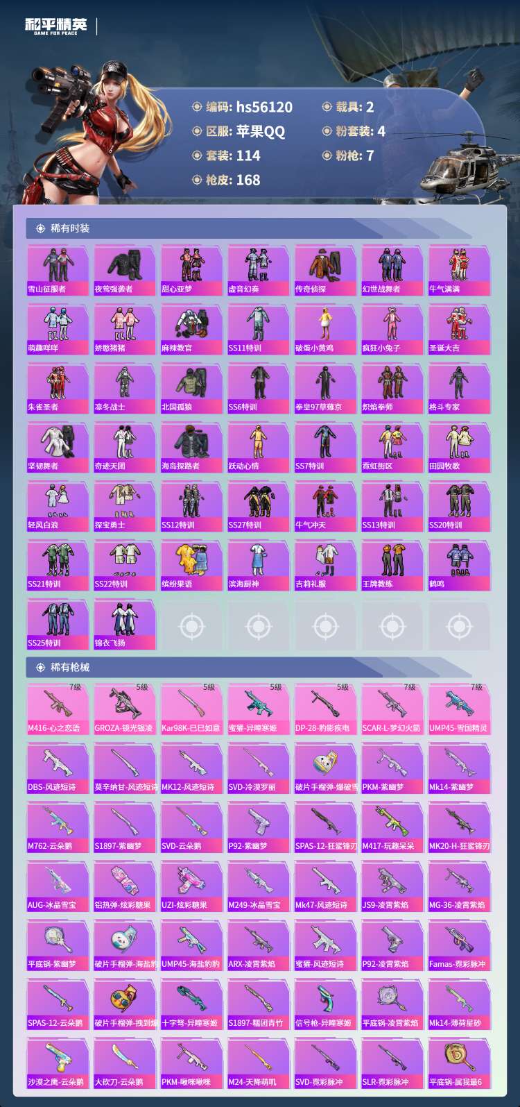hs56120 苹果手Q-11王牌印记-4粉装-7特效枪-2载具-55239热力值-114套装-16