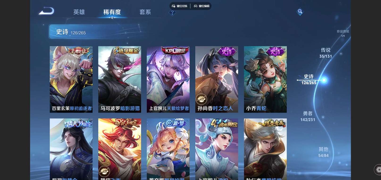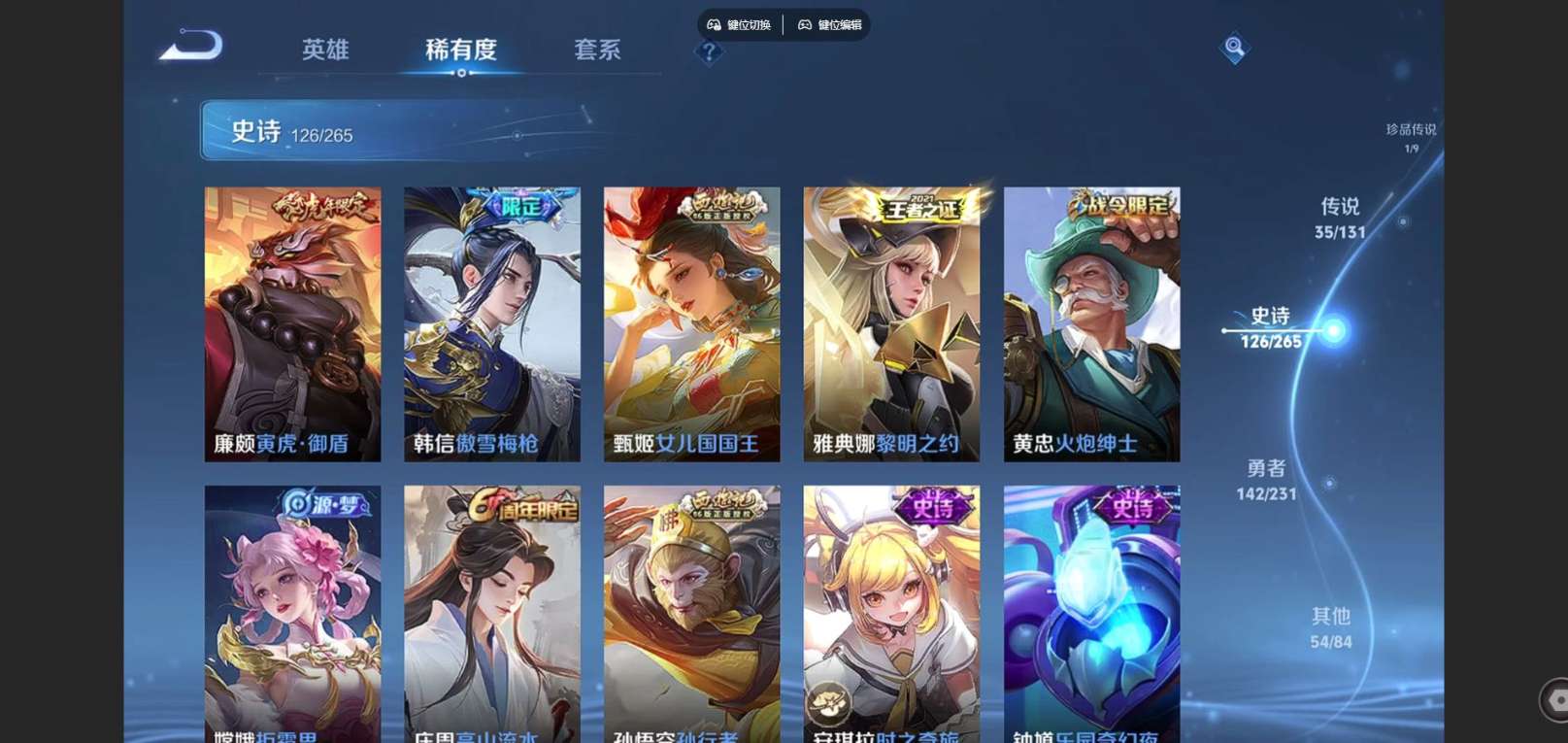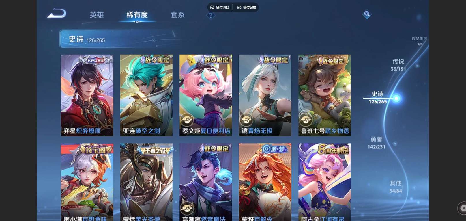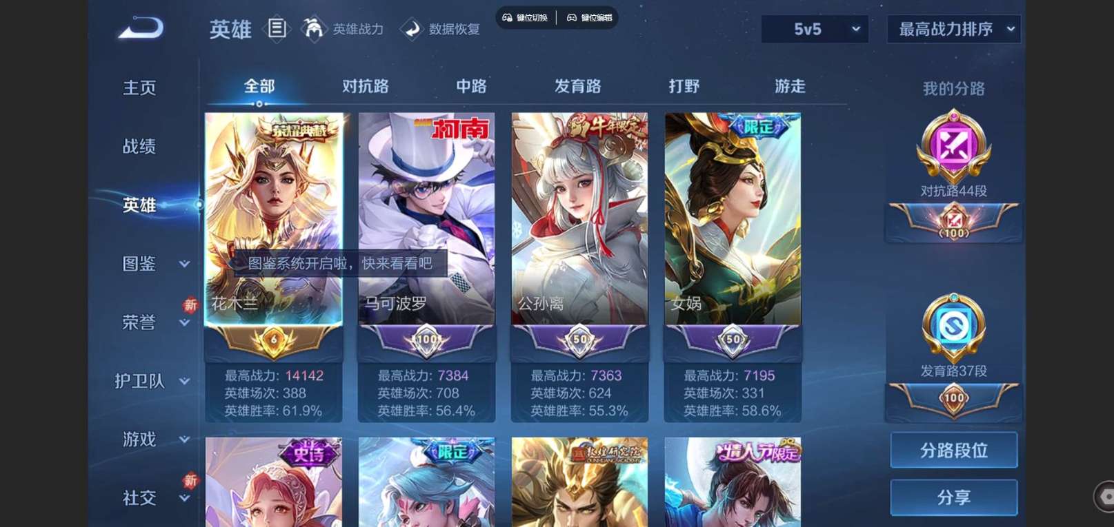 127英雄-360皮肤--V9-2典藏1珍品传说35传说 对抗路44段 发育路37段 1万4金标花木