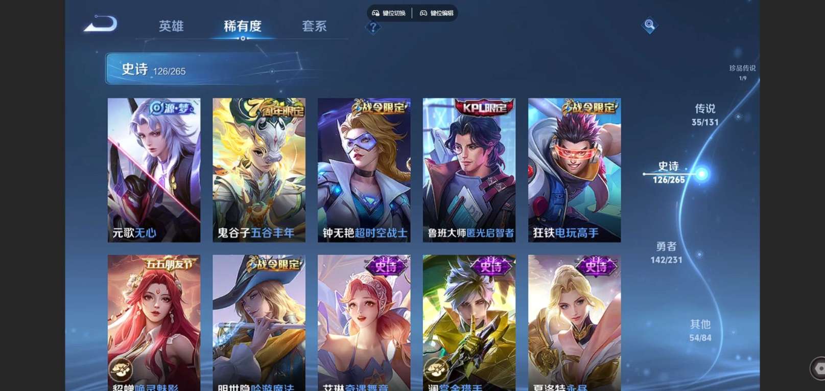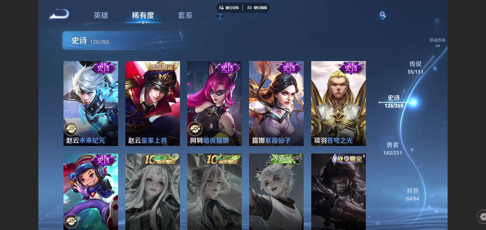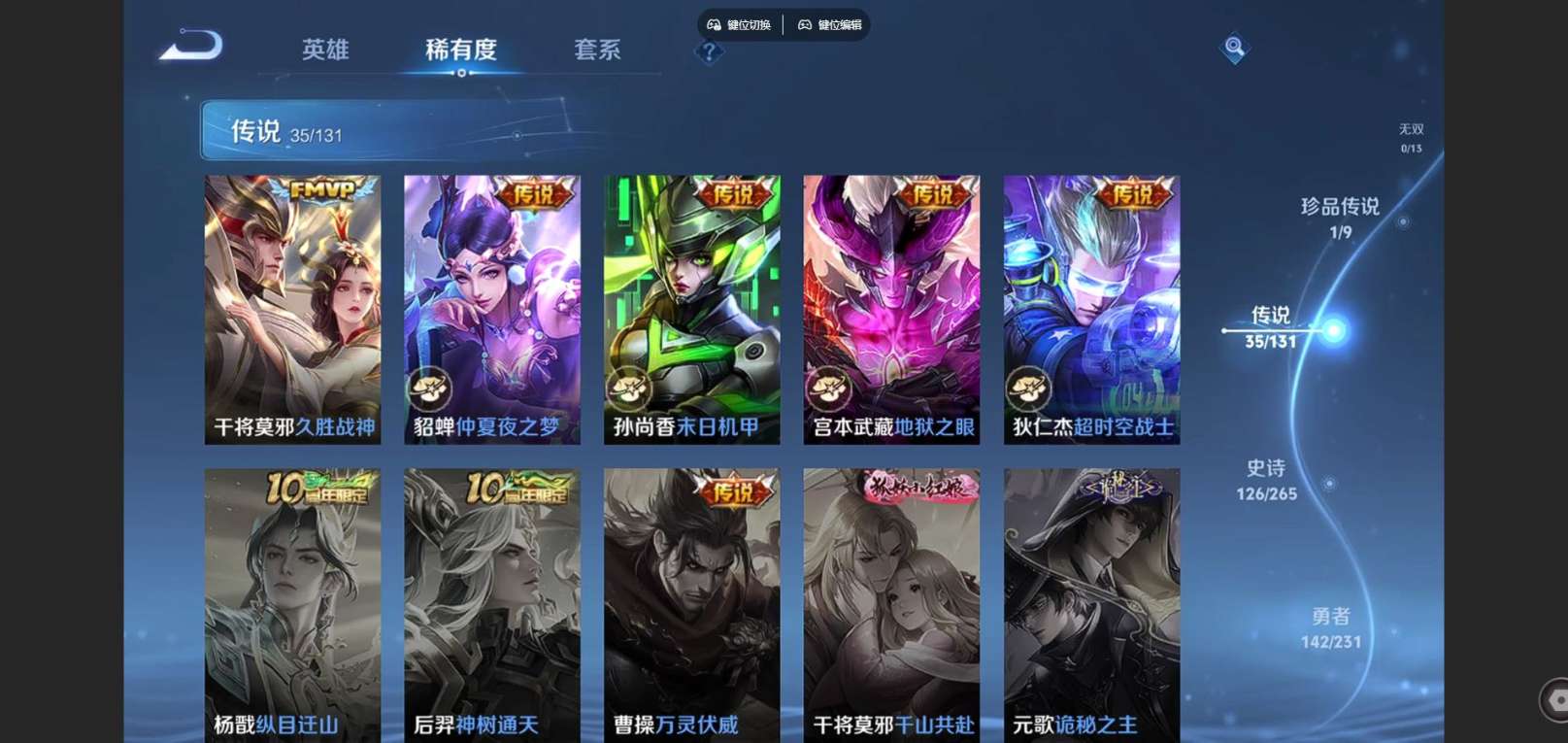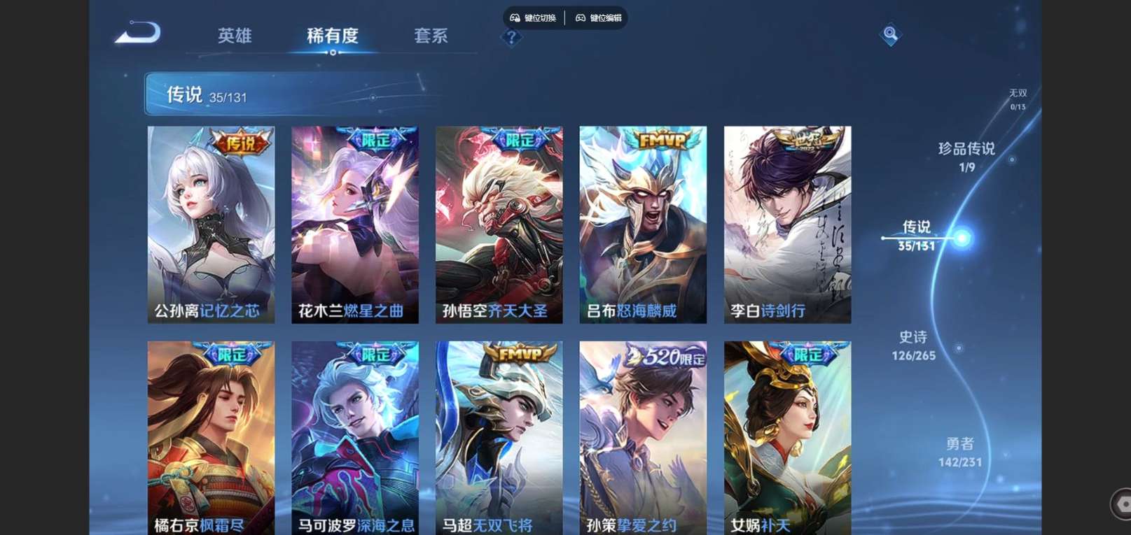 127英雄-360皮肤--V9-2典藏1珍品传说35传说 对抗路44段 发育路37段 1万4金标花木